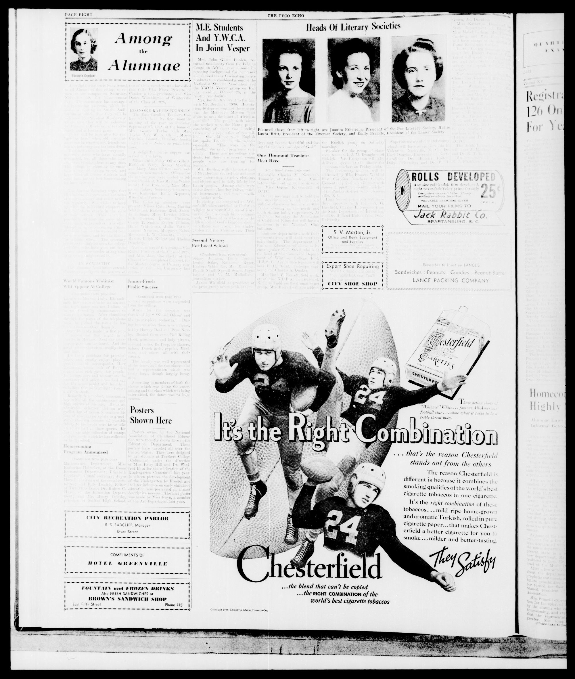East Carolina's student-run campus newspaper was first published in 1923 as the East Carolina Teachers College News (1923-1925). It has been re-named as The Teco Echo (1925, 1926-1952), East Carolinian (1952-1969), Fountainhead (1969-1979), and The East Carolinian (1969, 1979-present). It includes local, state, national, and international stories with a focus on campus events.