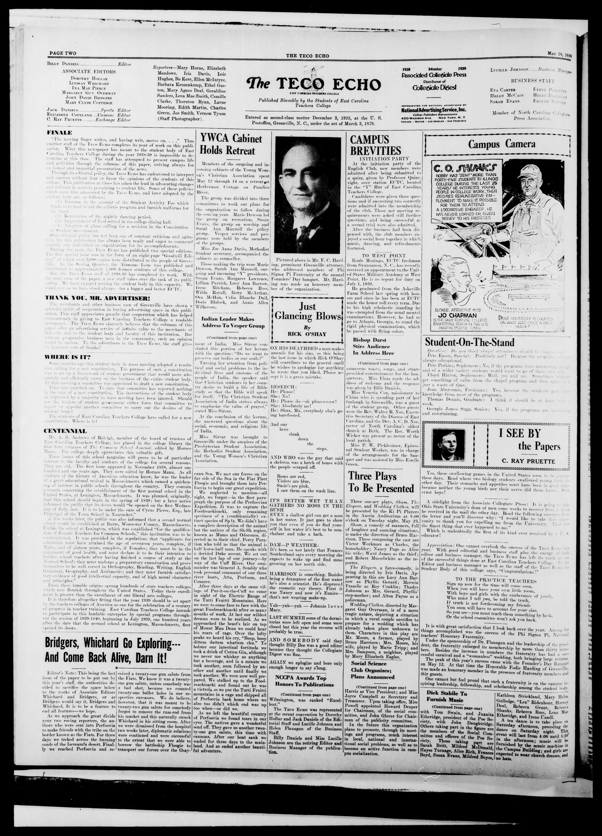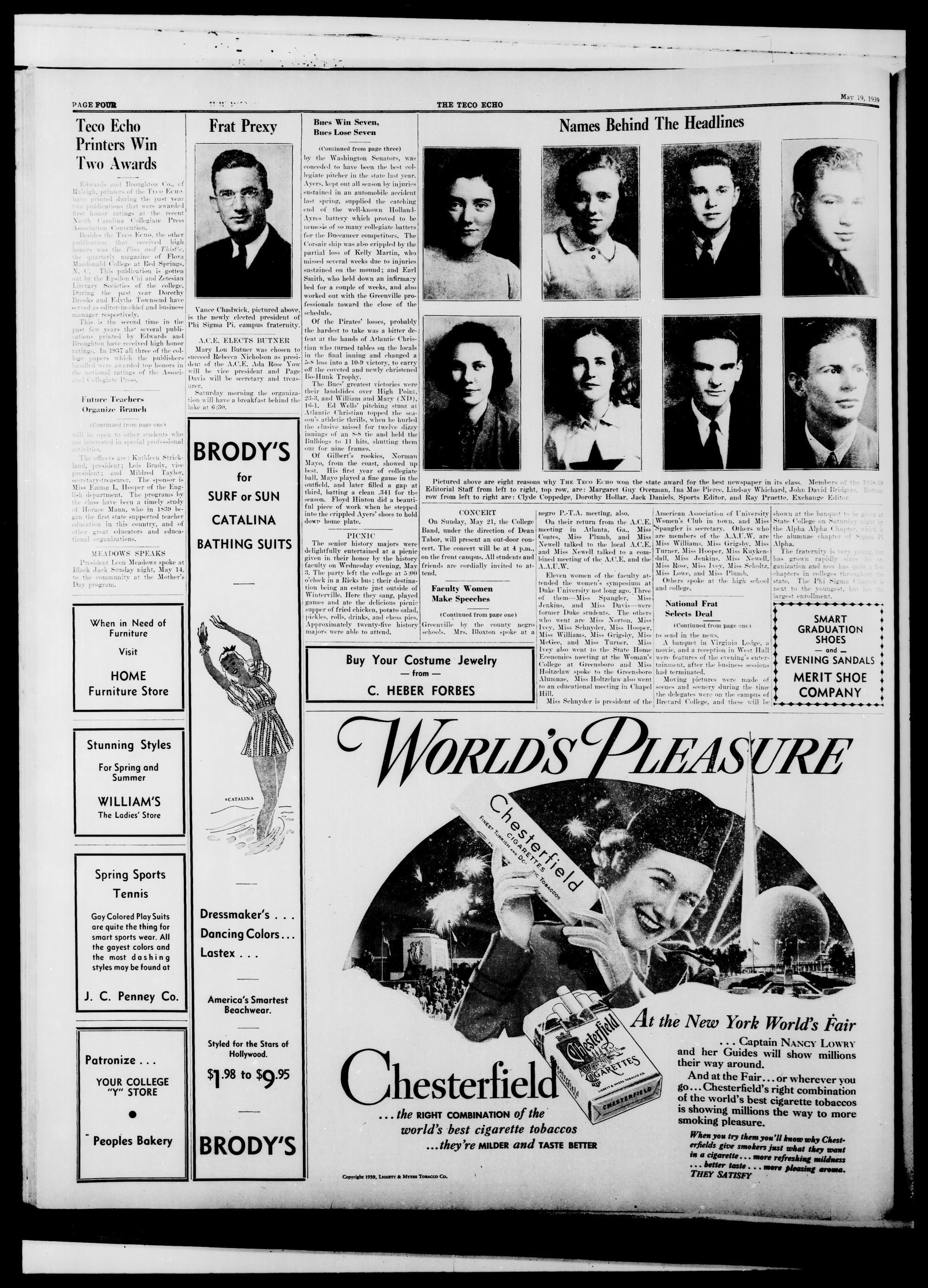 Editorial Staff from left to right, top row, are: Margaret Guy Overman, Ina Mae Pierce. Lindsay Whichard, John David Bi