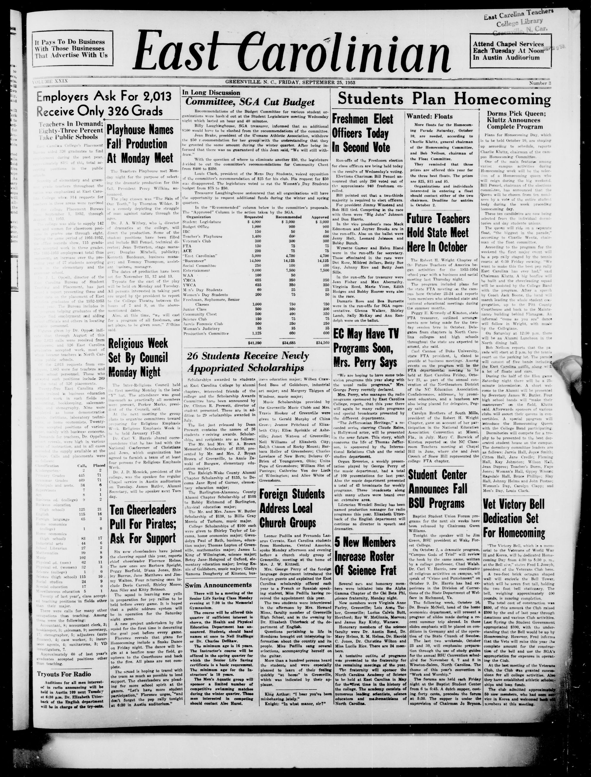 East Carolinian, September 25, 1953