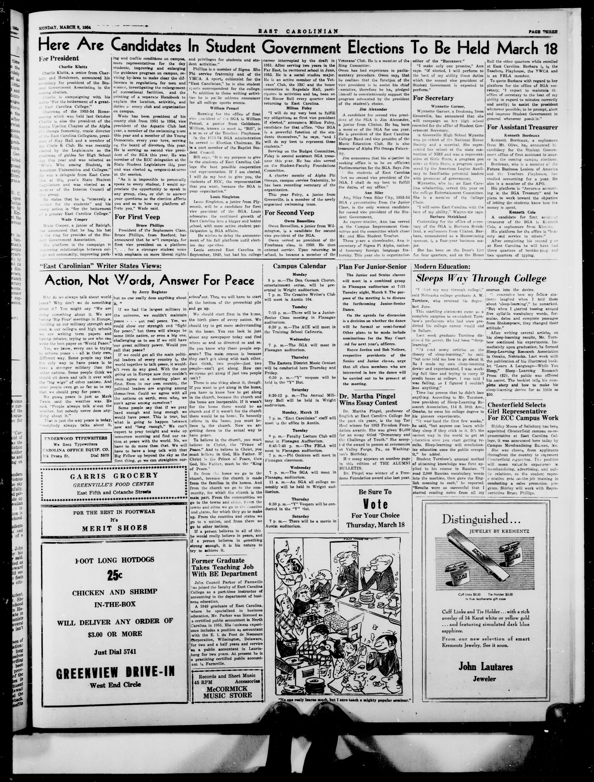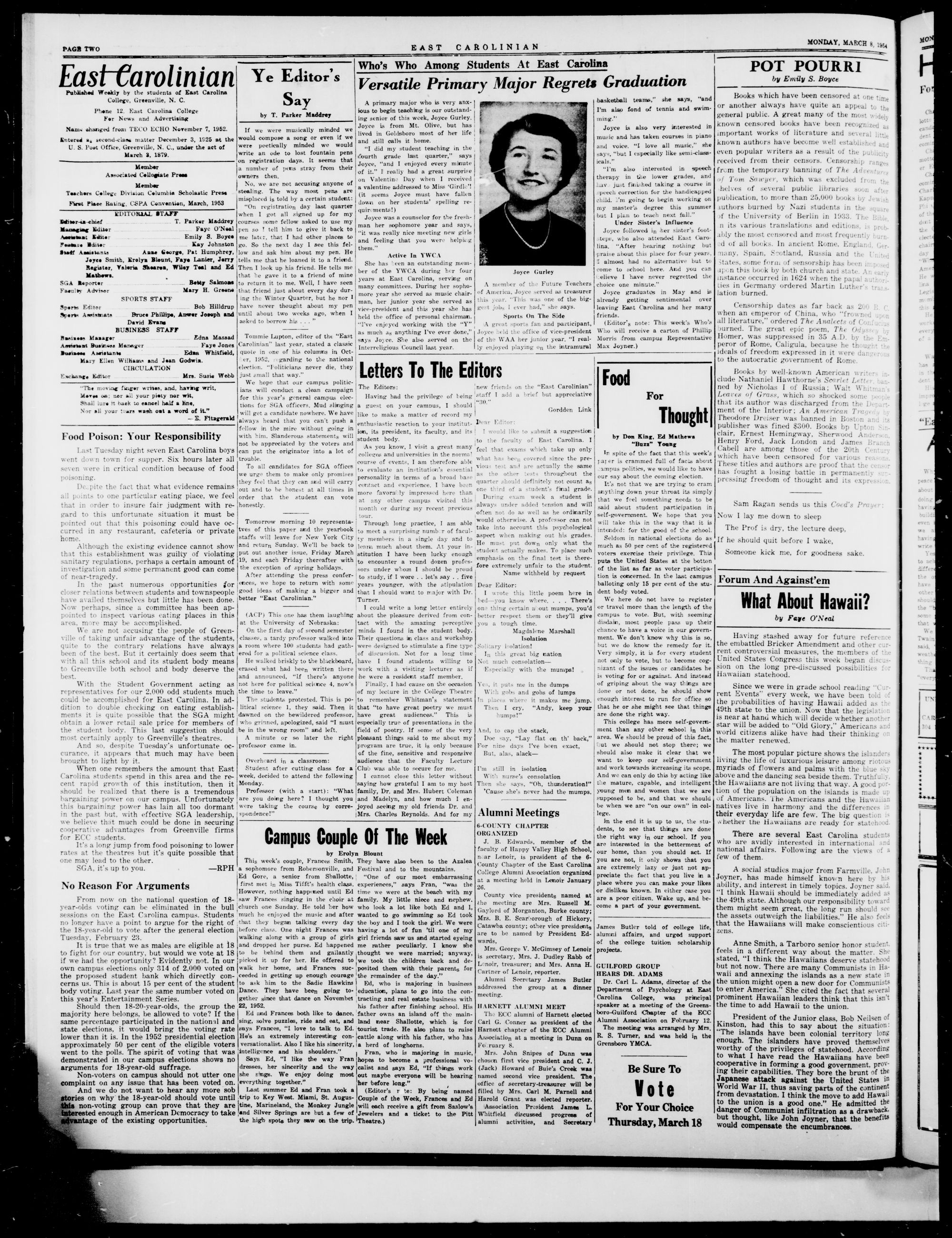 GREENVILLE, N. C, MONDAY, MARCH 8, 1954