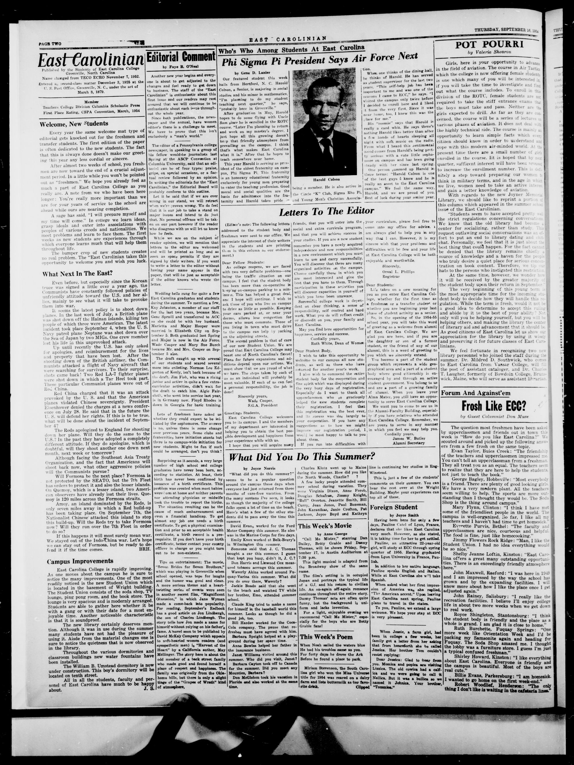 GREENVILLE, N. C, THURSDAY, SEPTEMBER 16, 1954