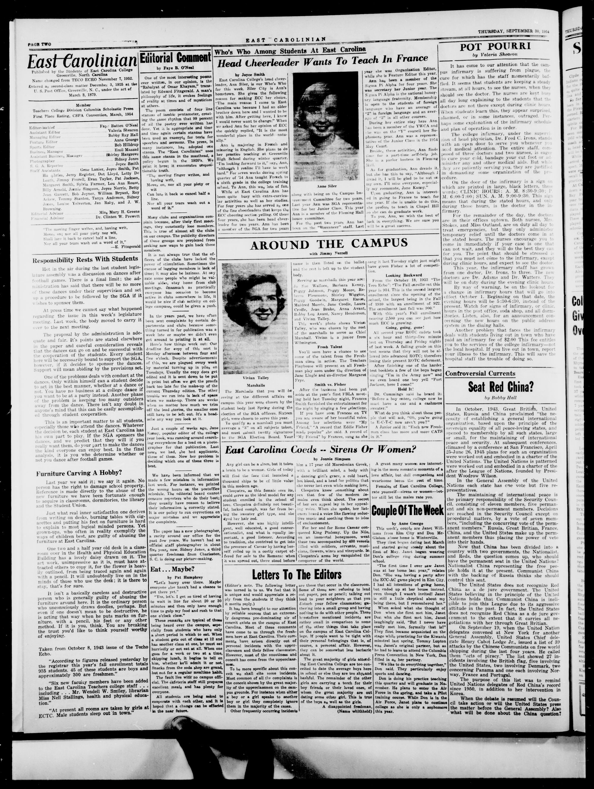 GREENVILLE, N. C, THURSDAY, SEPTEMBER 30, 1954