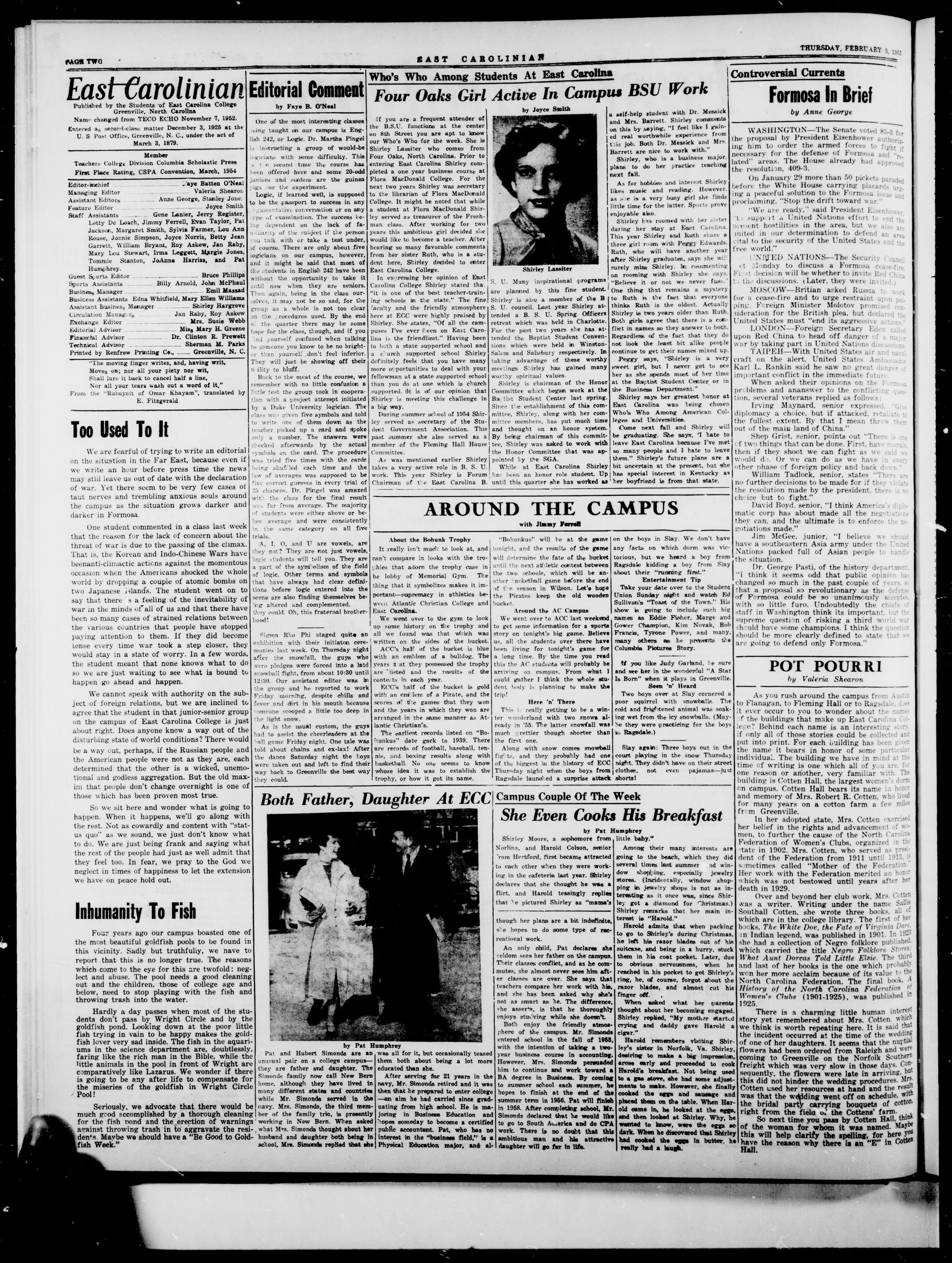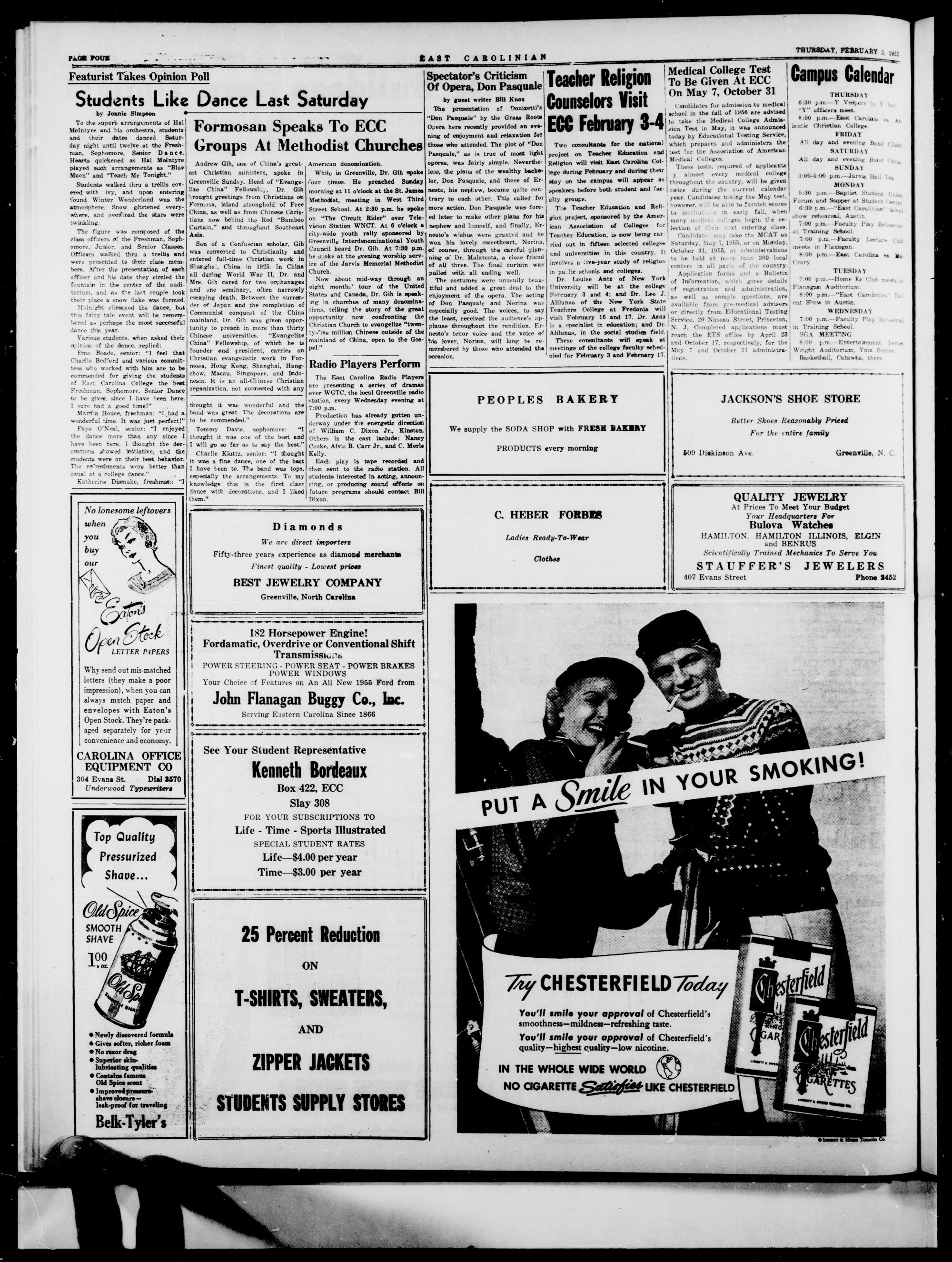 GREENVILLE, N. C, THURSDAY, FEBRUARY 3, 1055