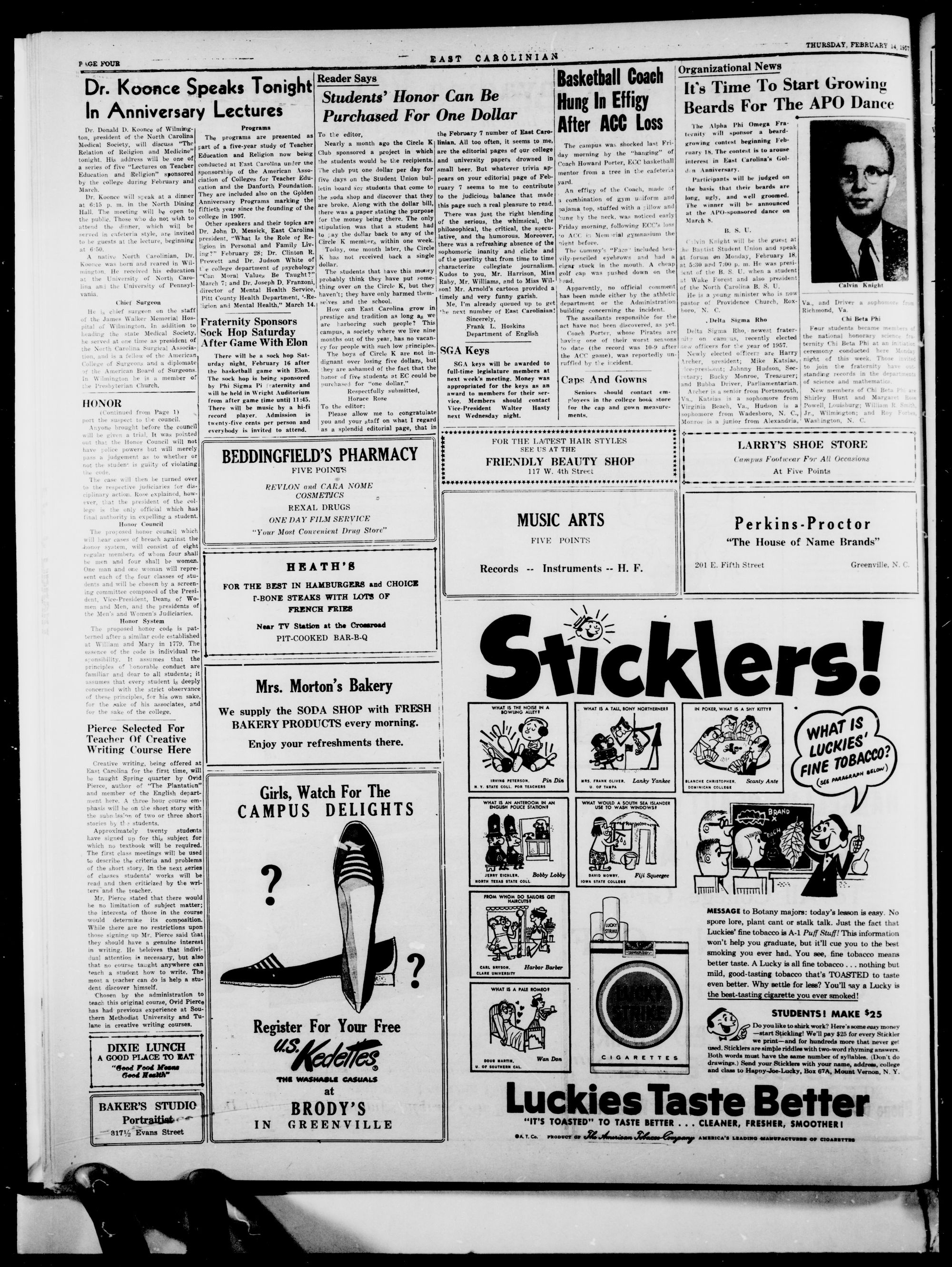 East Carolinian, February 14, 1957