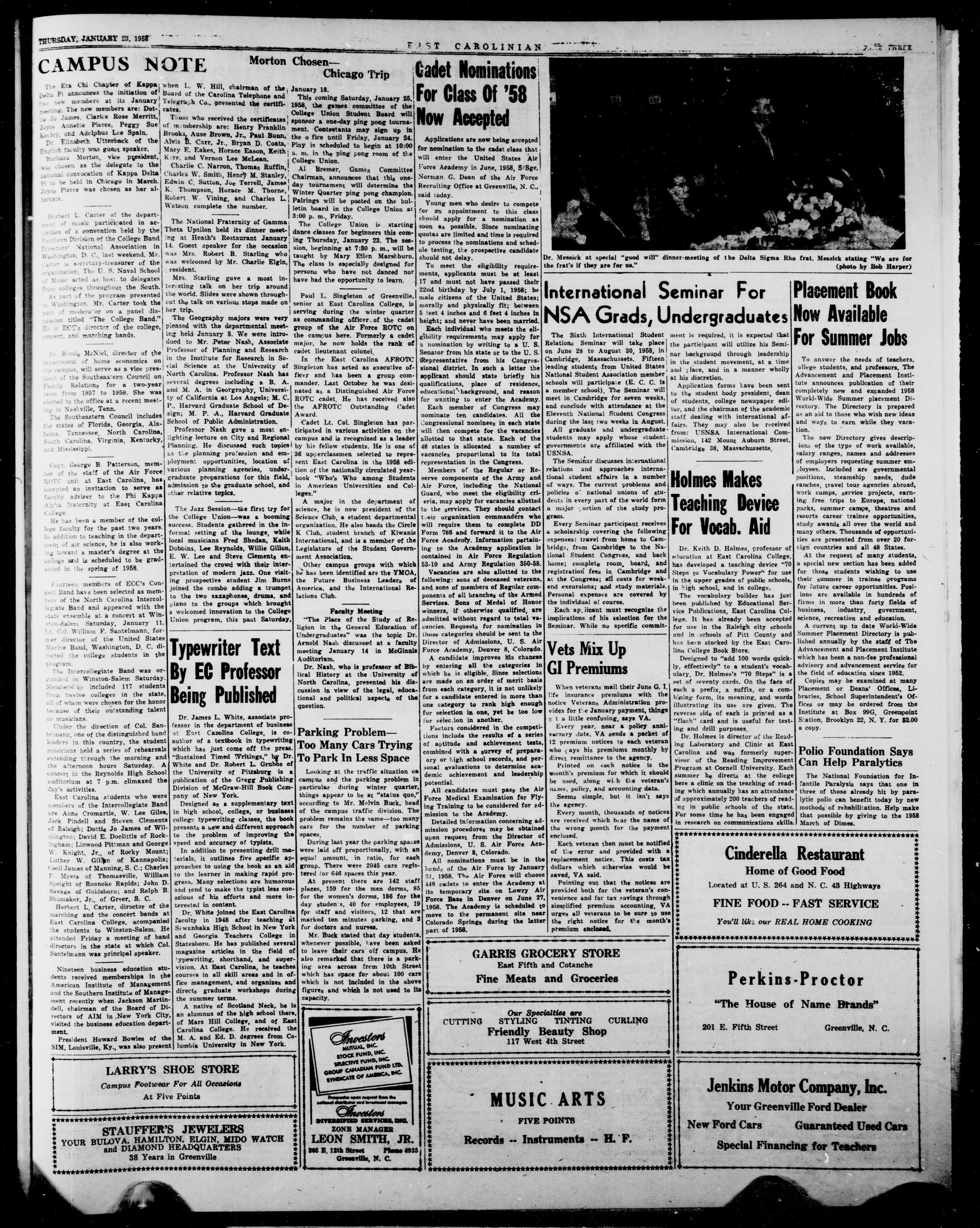 GREENVILLE, N. C, THURSDAY, JANUARY 23. 1958