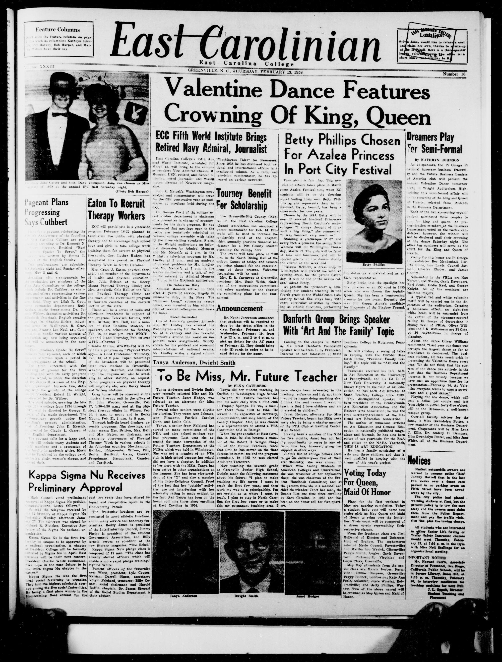East Carolinian, February 13, 1958