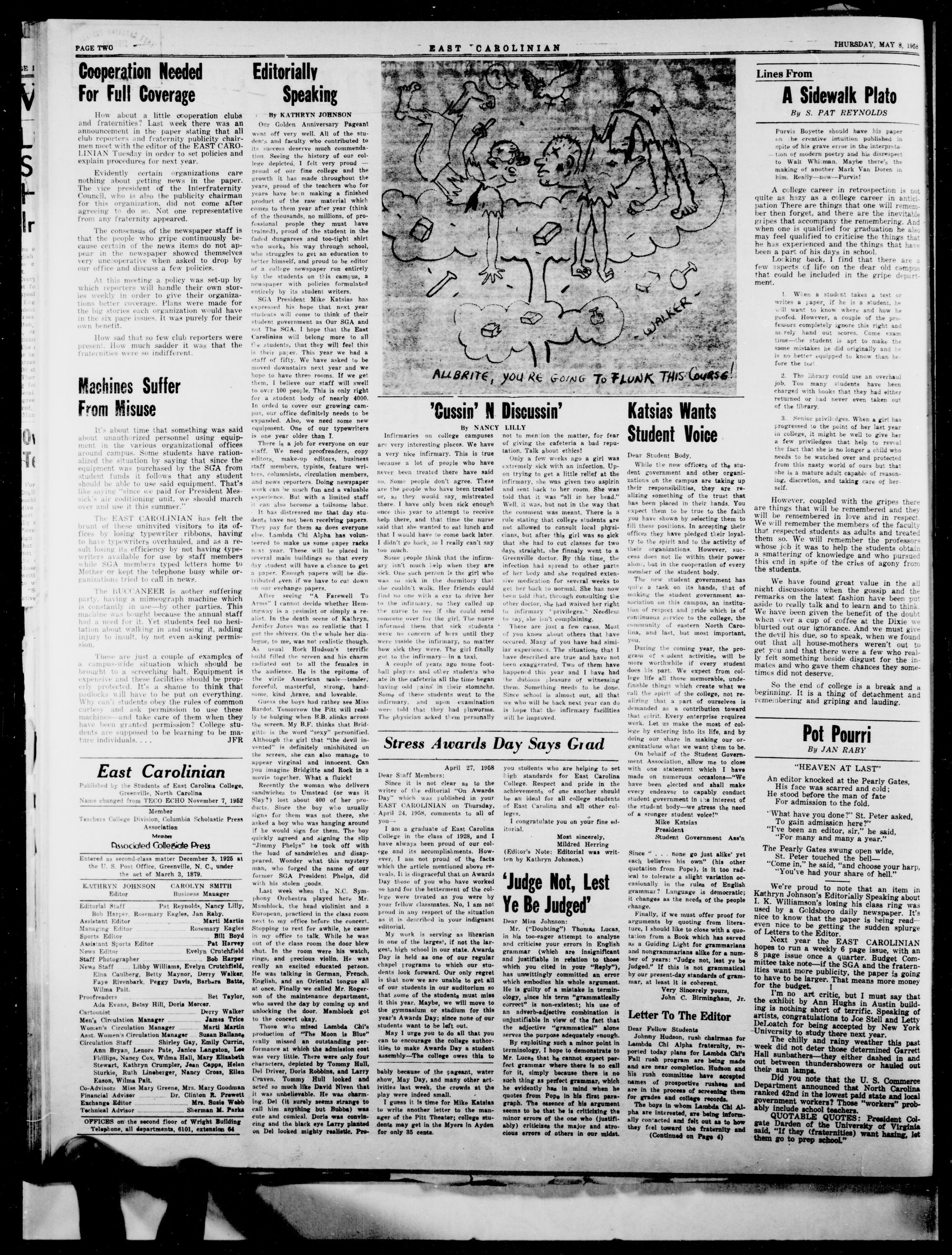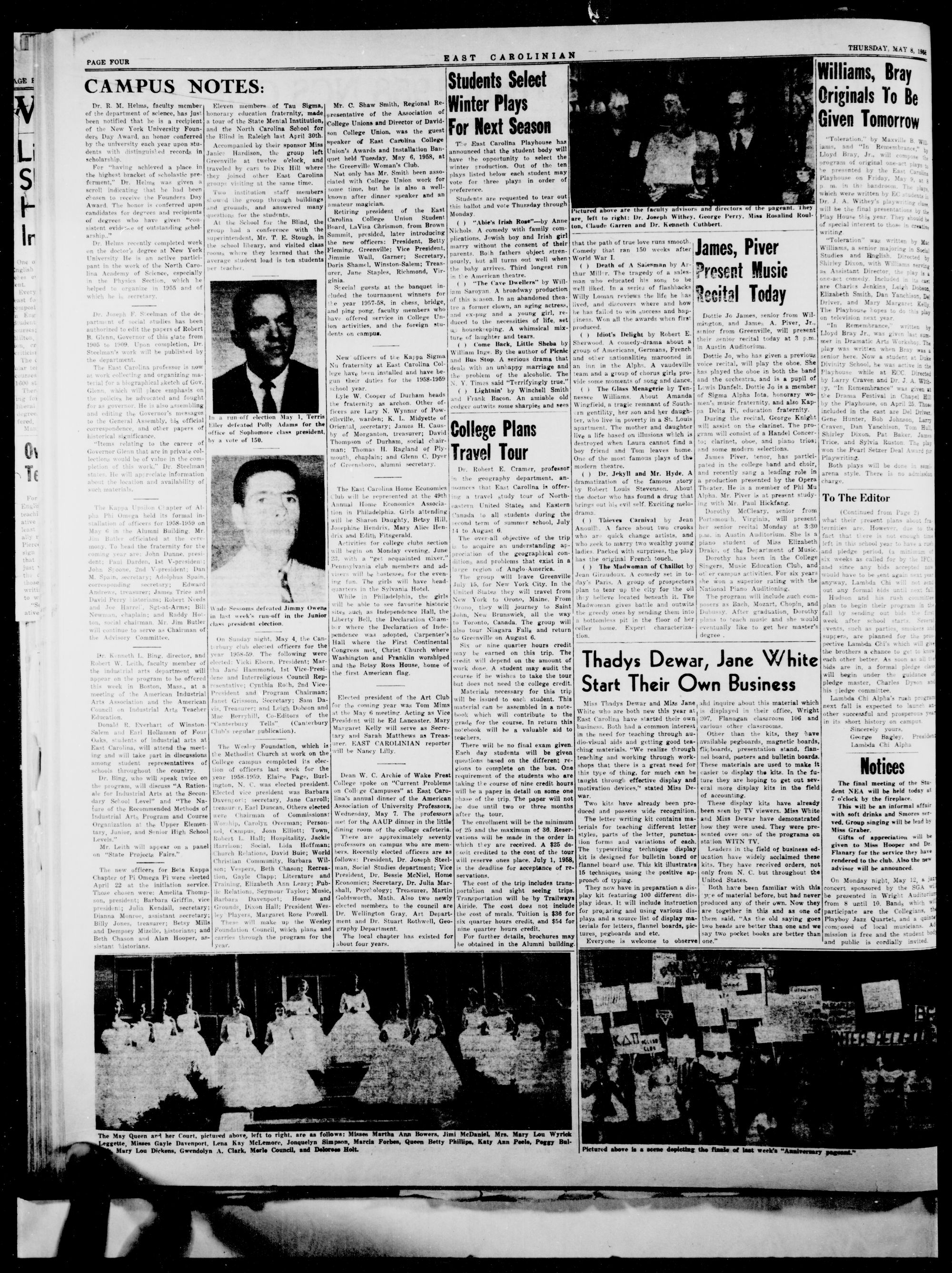 The May Queen aH her Court, pictured above, left to right, are as follows: Misses Martha Ann Bowers, Jimi McDaniel, Mrs. Mary Lou Wyrick