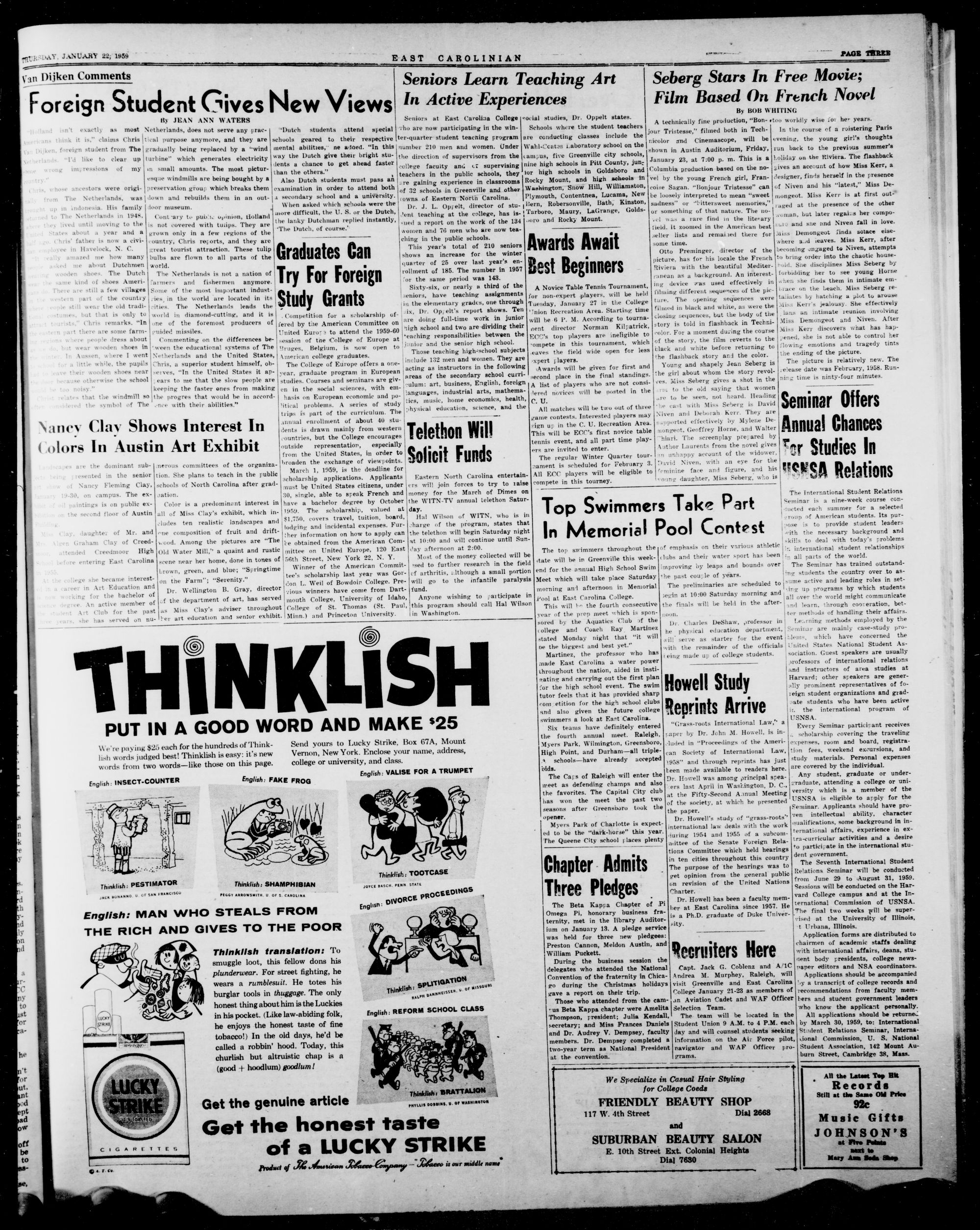 GREENVILLE, N. C, THURSDAY, JANUARY 22, 1959