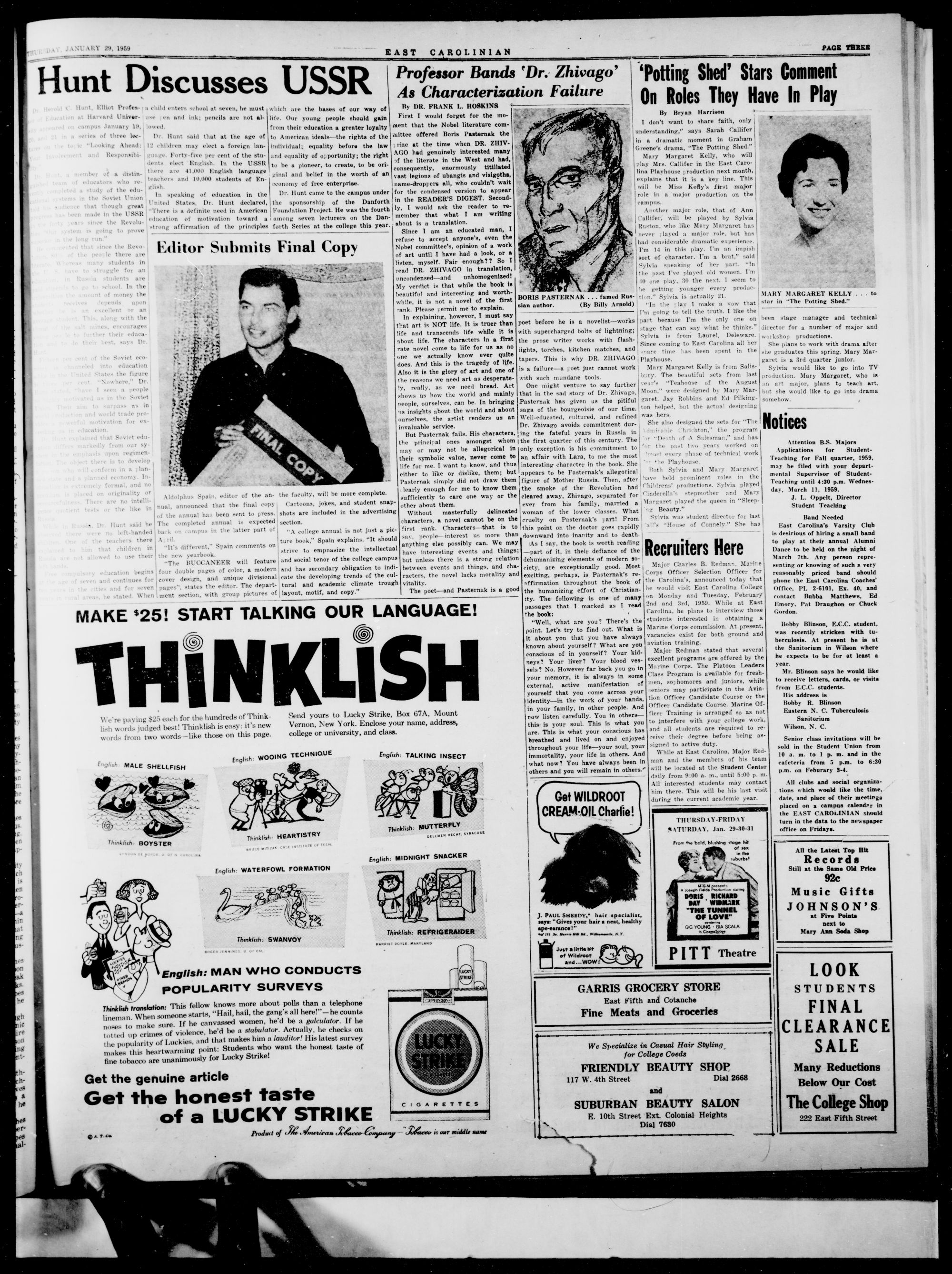 East Carolinian, January 29, 1959
