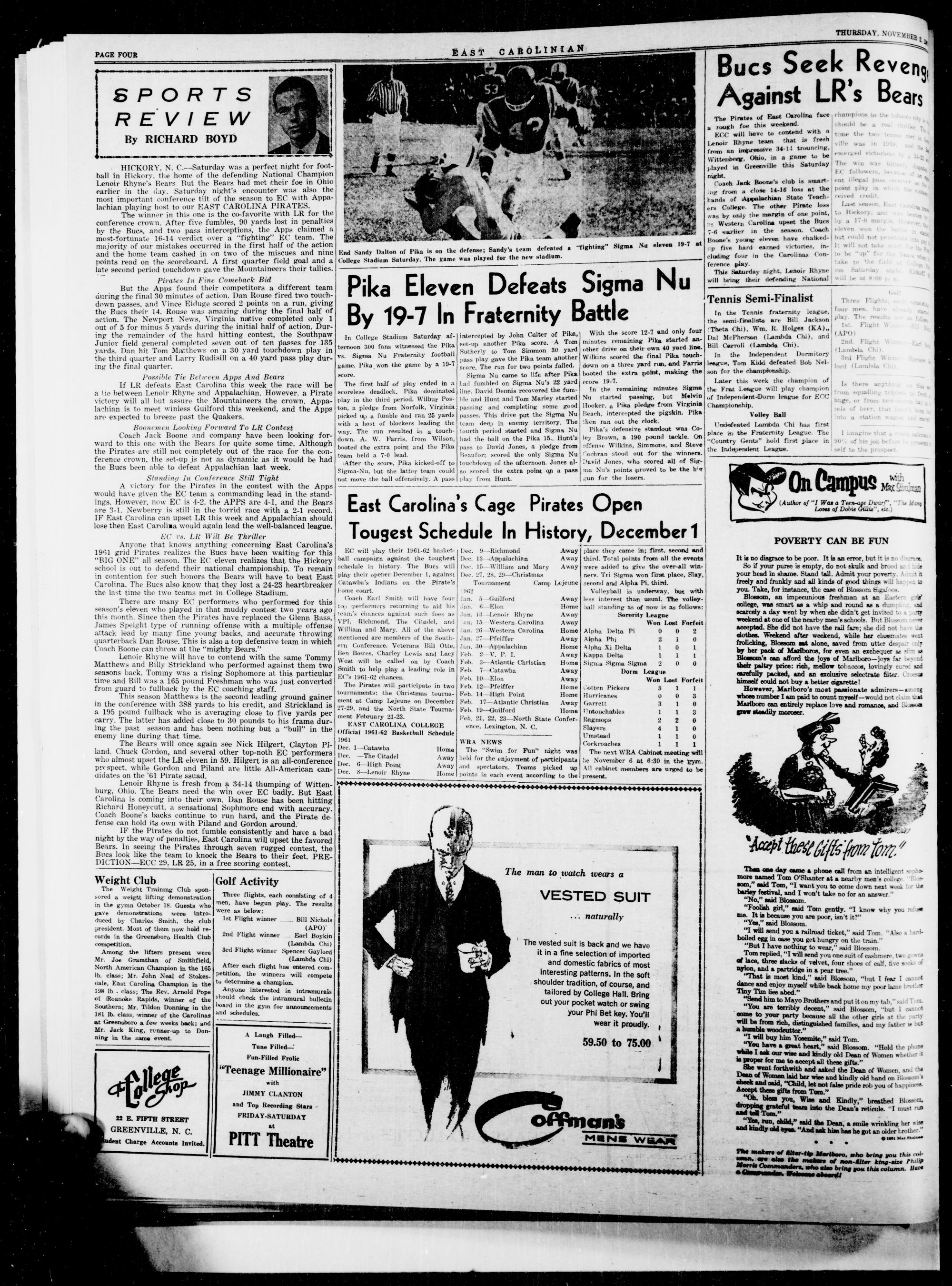 GREENVILLE, N. C, THURSDAY, NOVEMBER 2, 1961