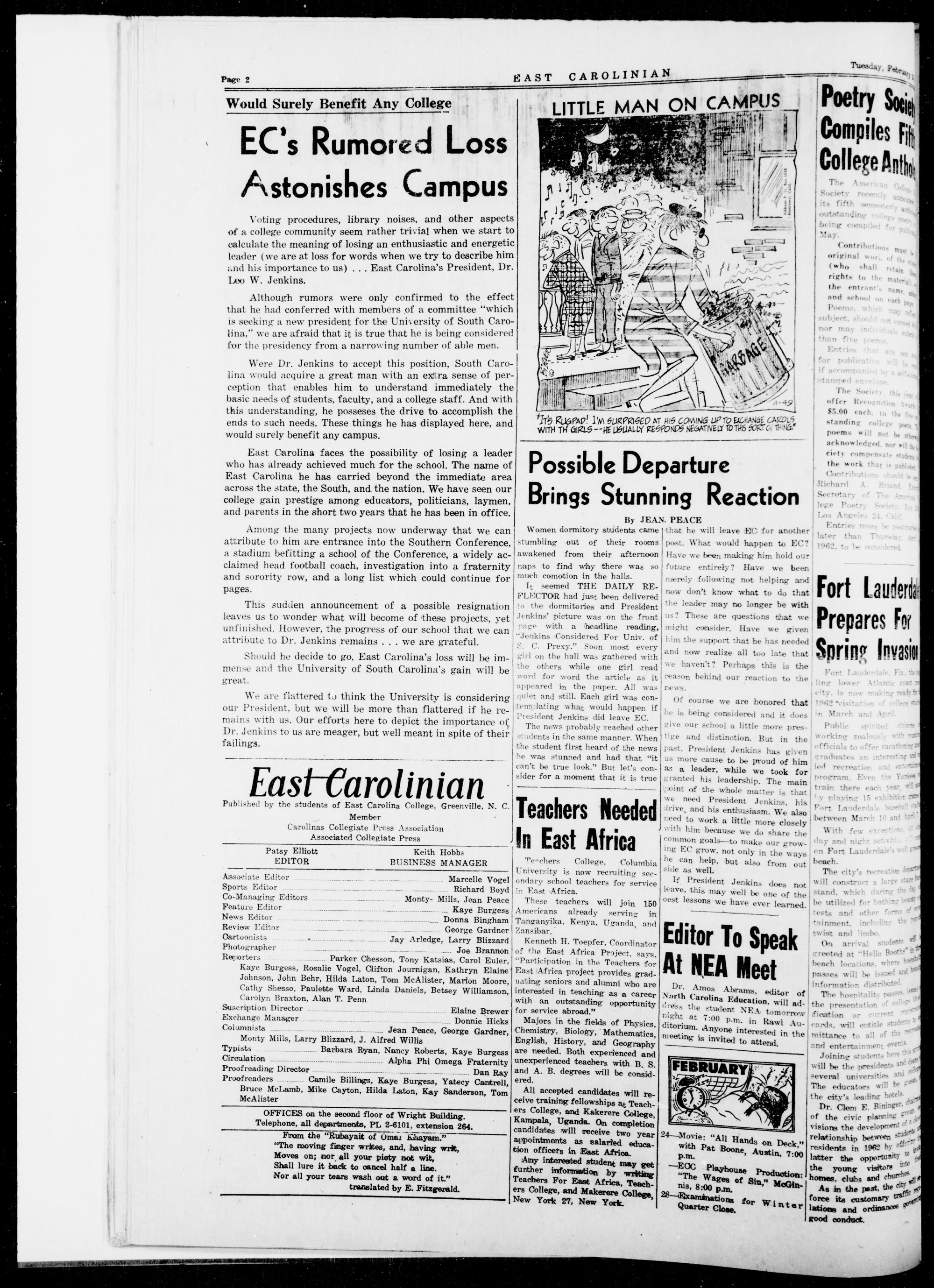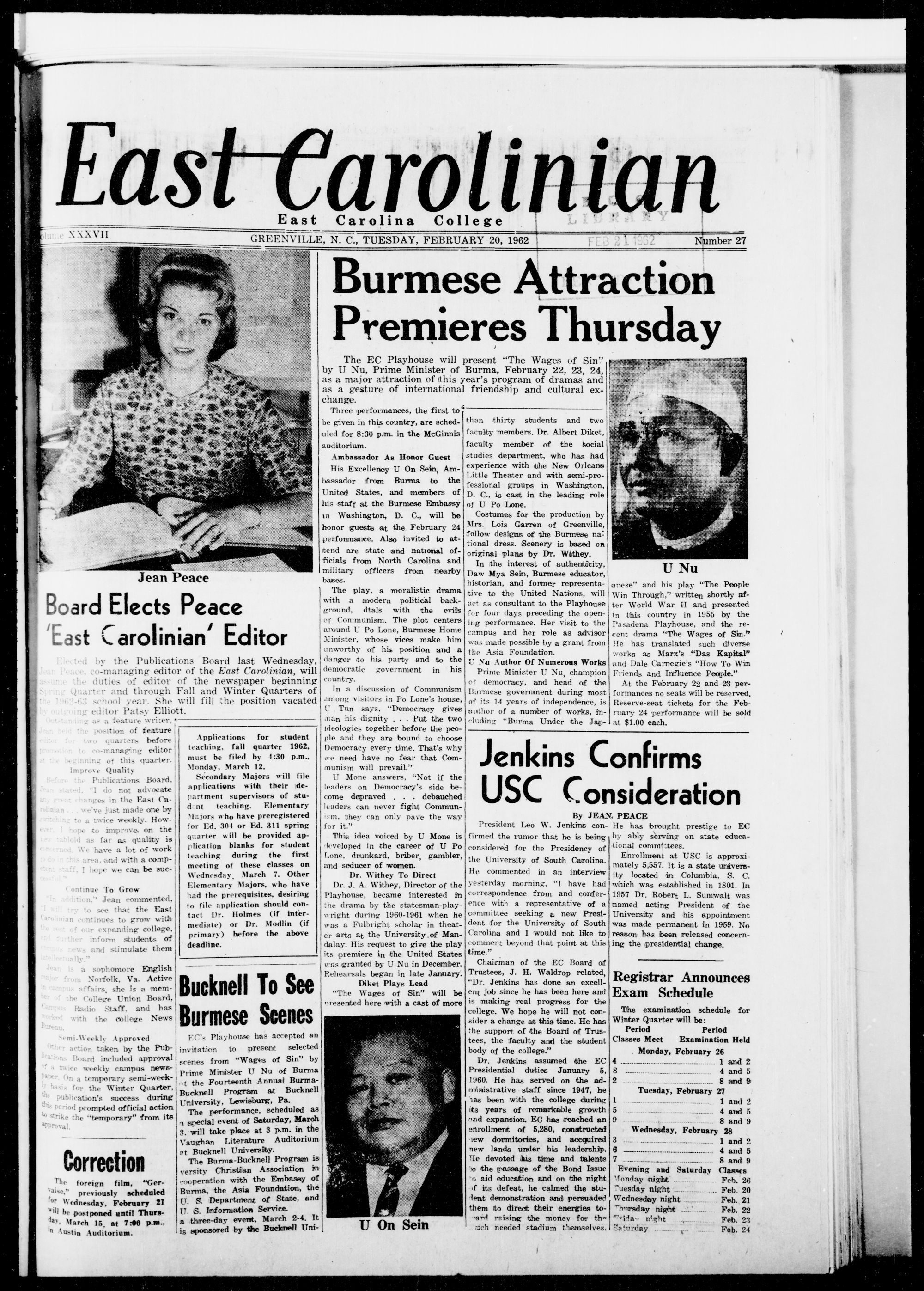 GREENVILLE, N. C, TUESDAY, FEBRUARY 20, 1962