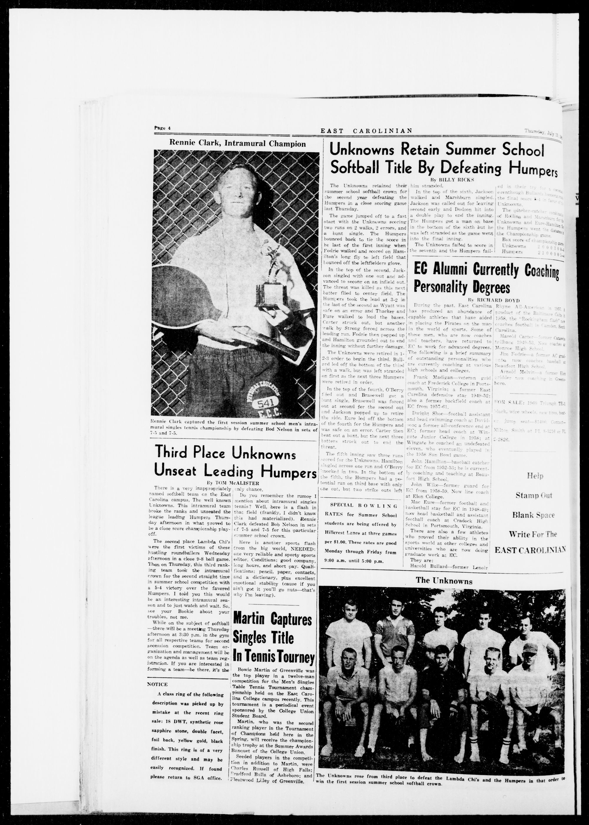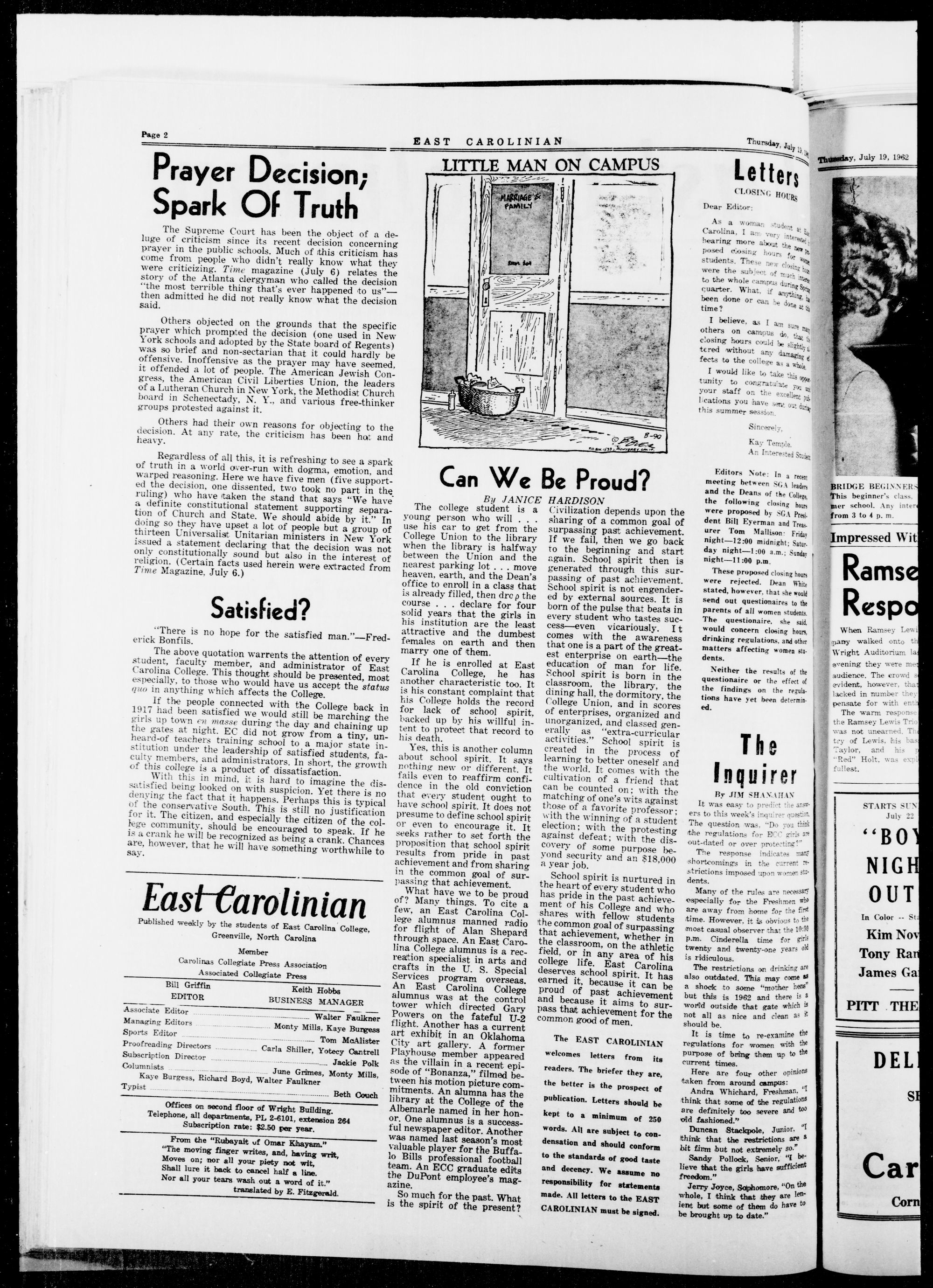 GREENVILLE, N C, THURSDAY, JULY 19, 1962
