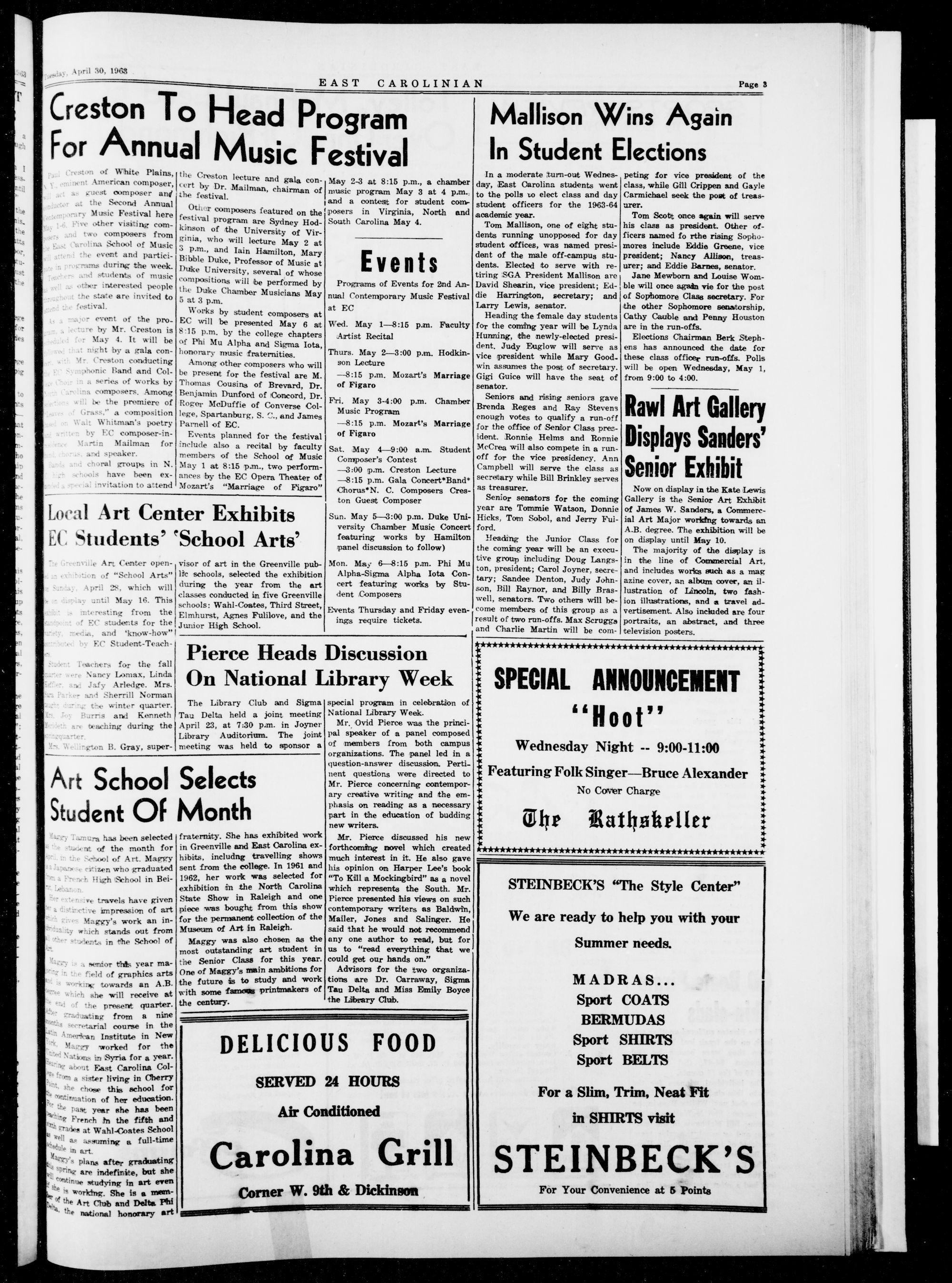 GREENVILLE, N. C, TUESDAY, APRIL 30, 1963