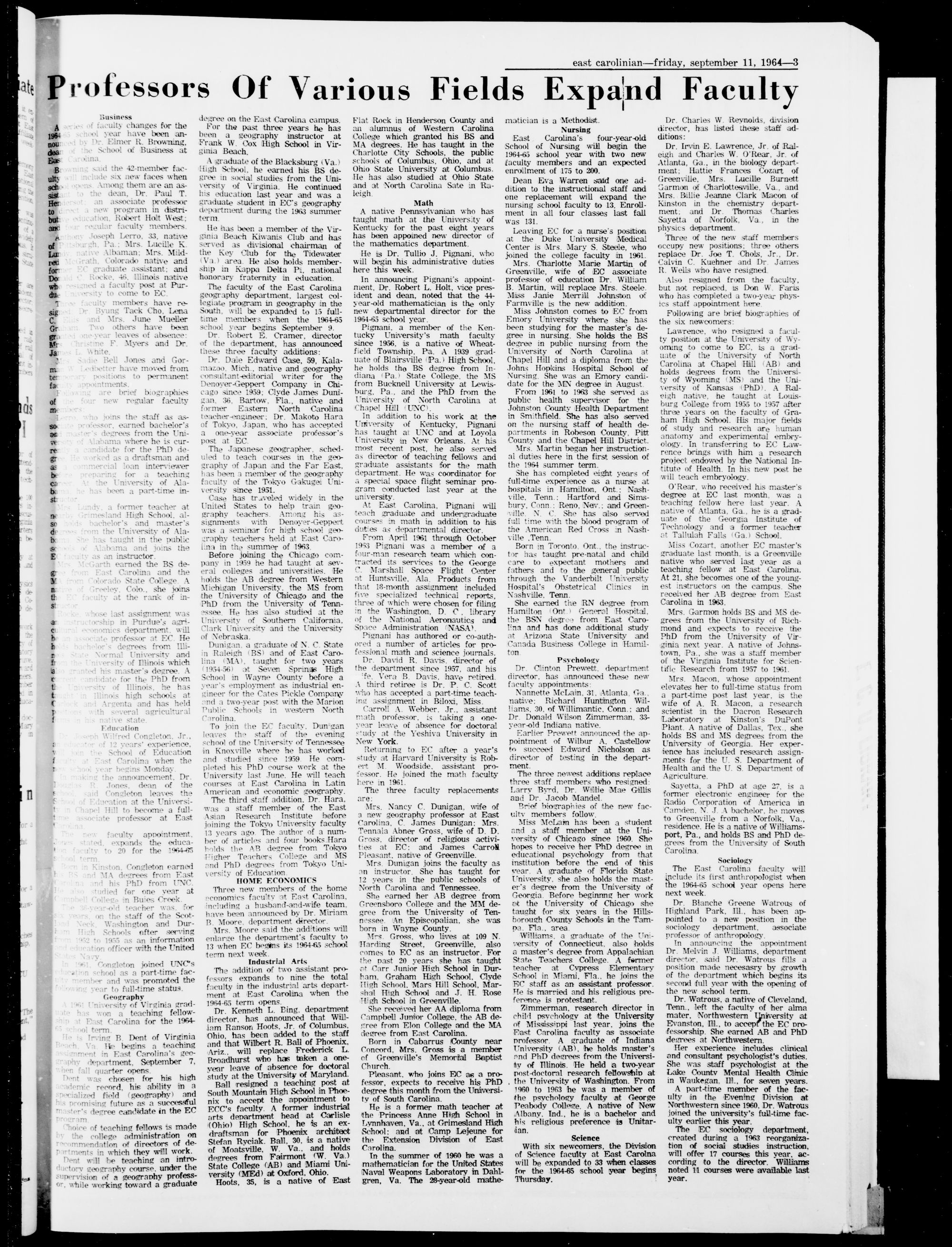 East Carolinian, September 11, 1964