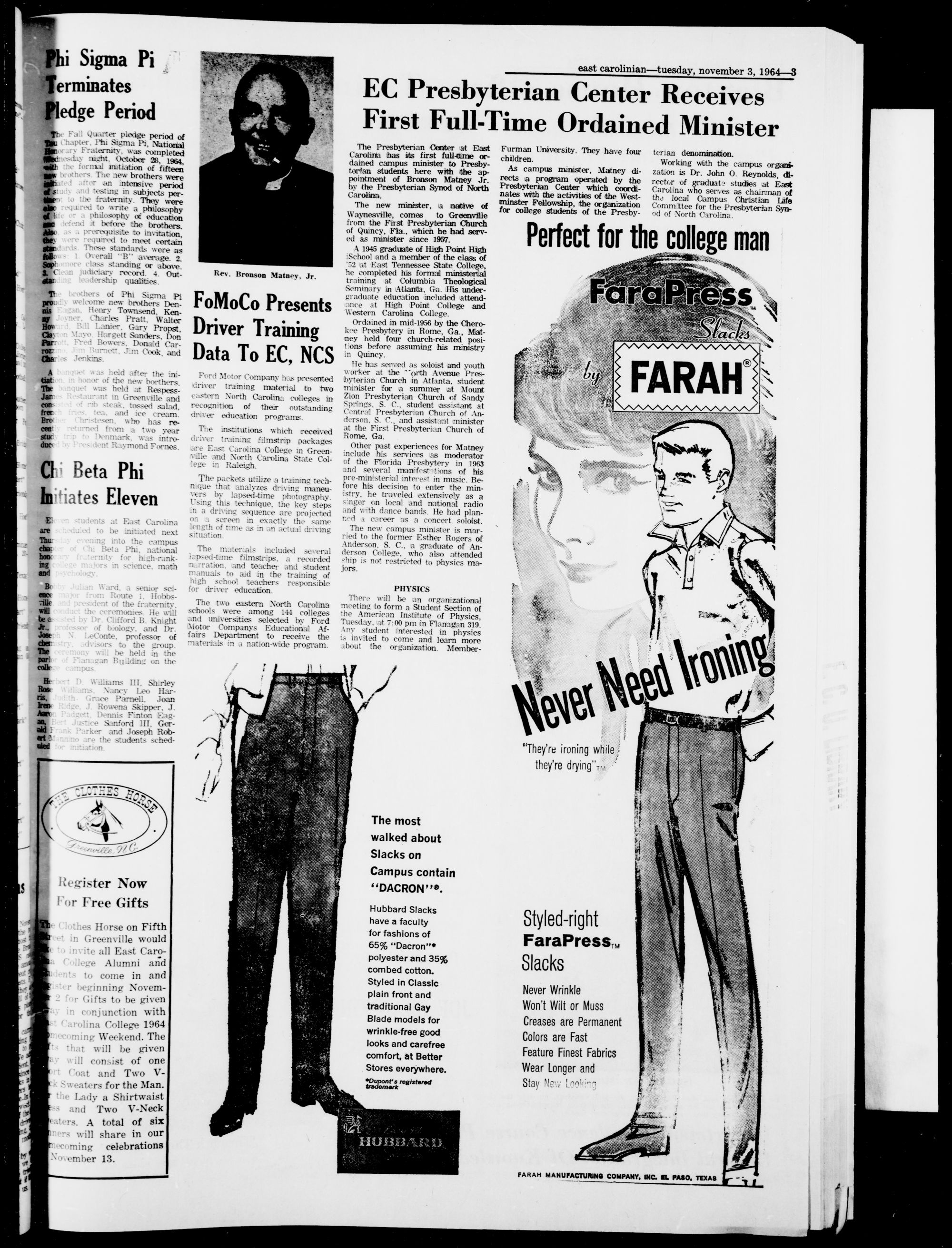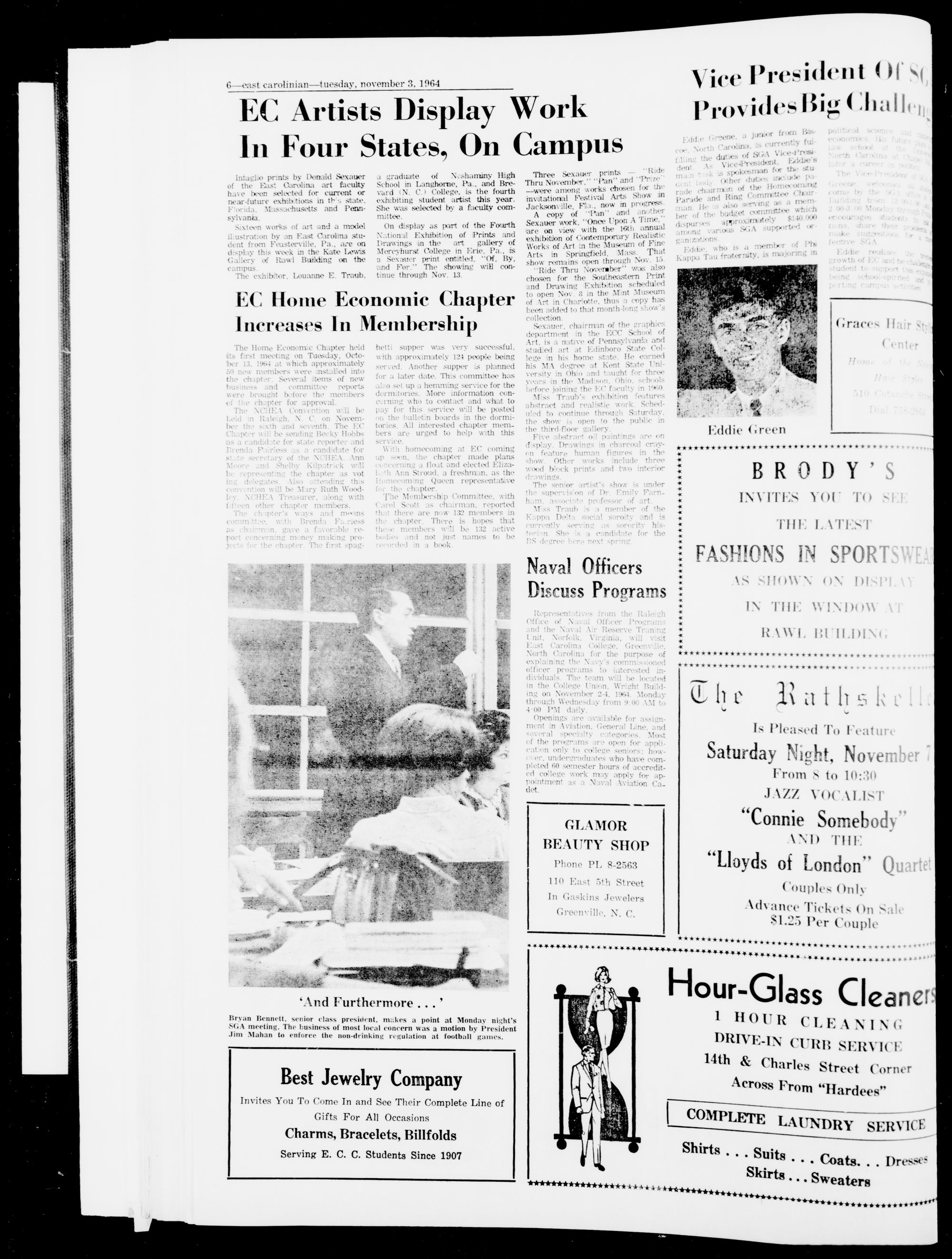 east Carolina college, greenville, n. c, tuesday, november 3, 14