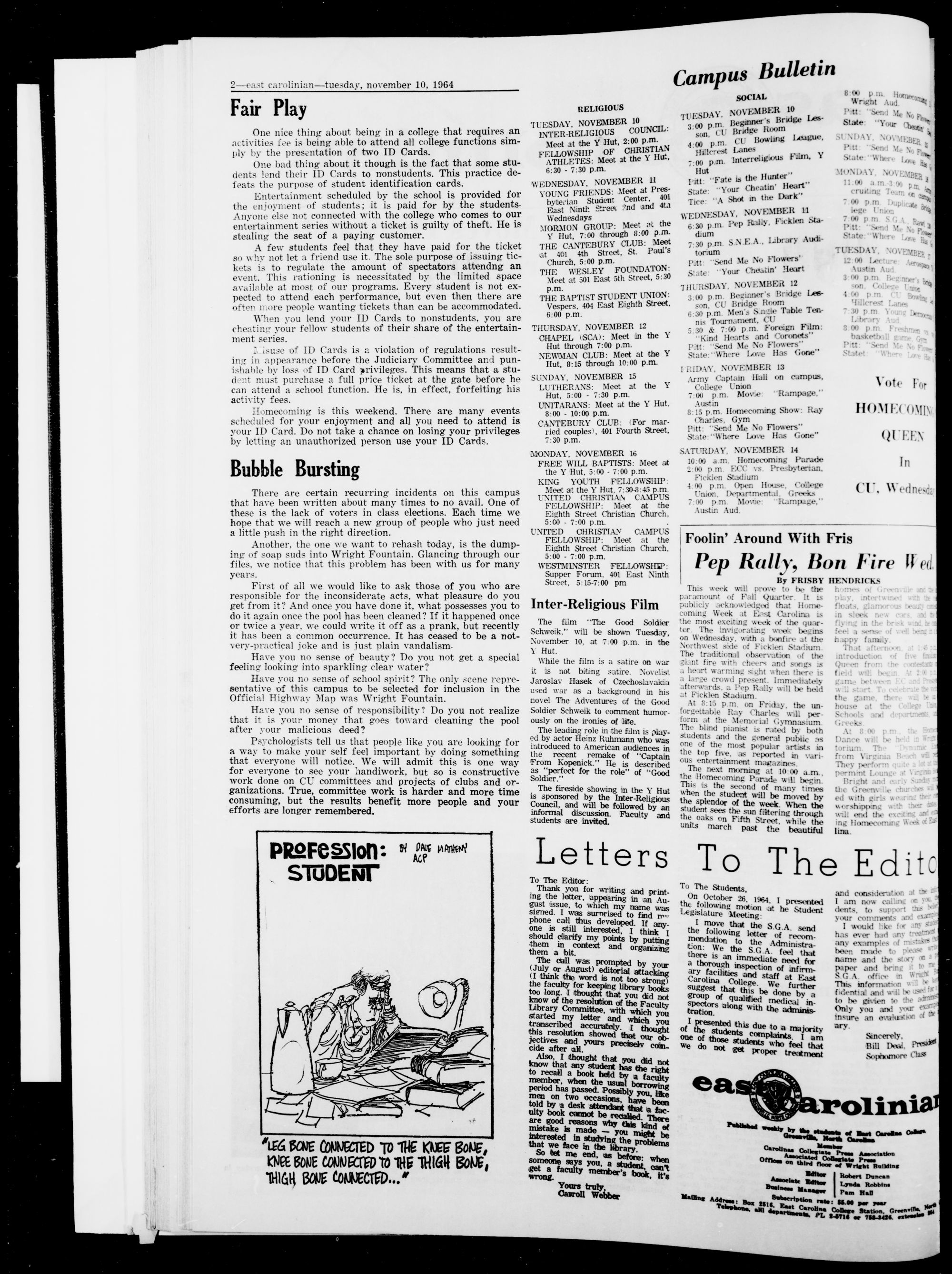 st Carolina college, grreenville, n. c, tuesday, november 10, 1964