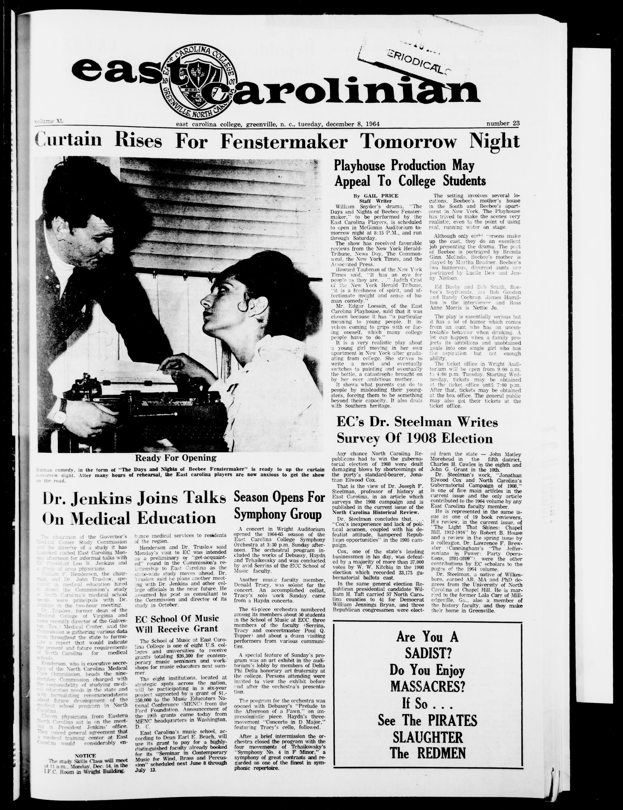 east Carolina college, greenville, n. c, tuesday, december 8, 1964