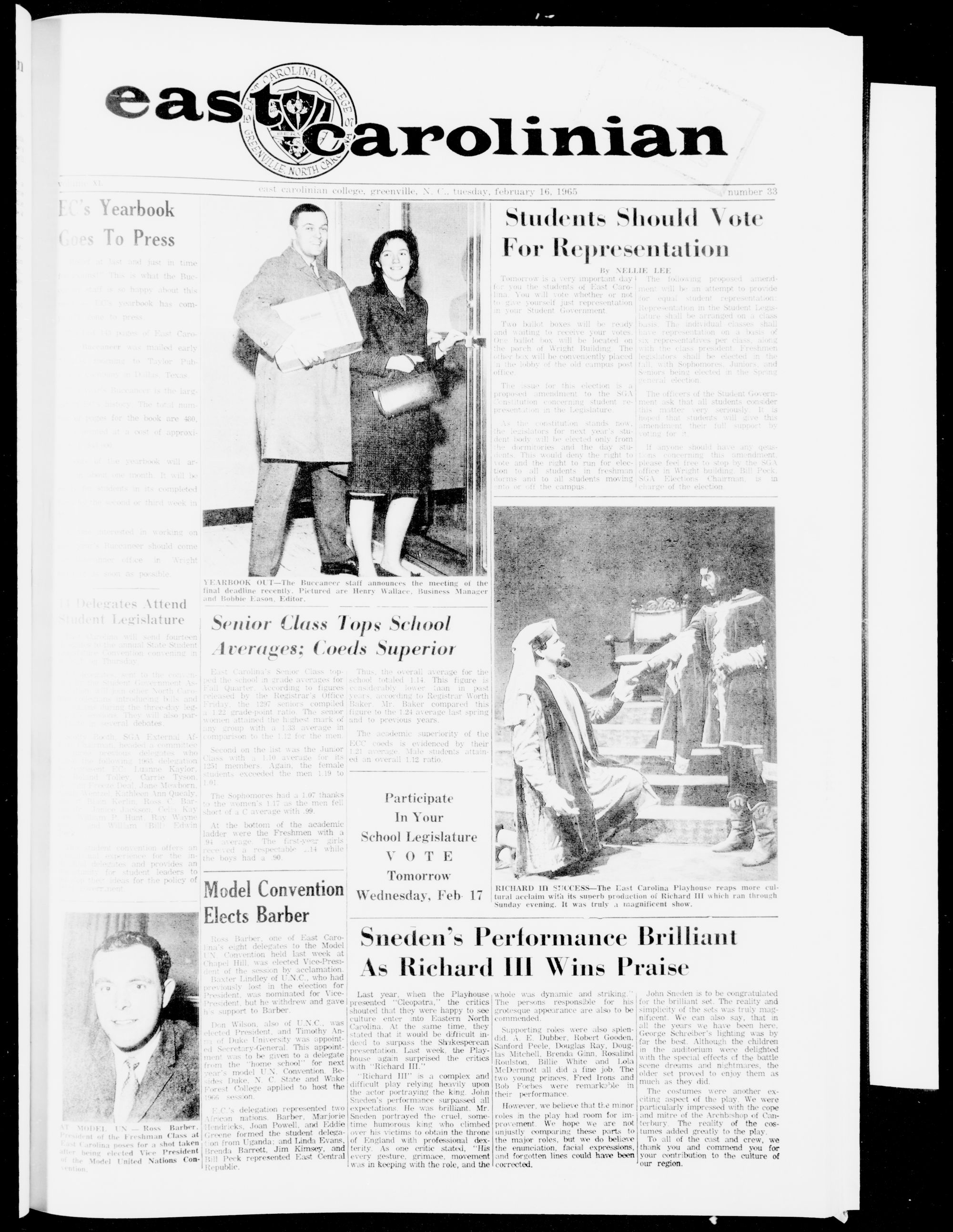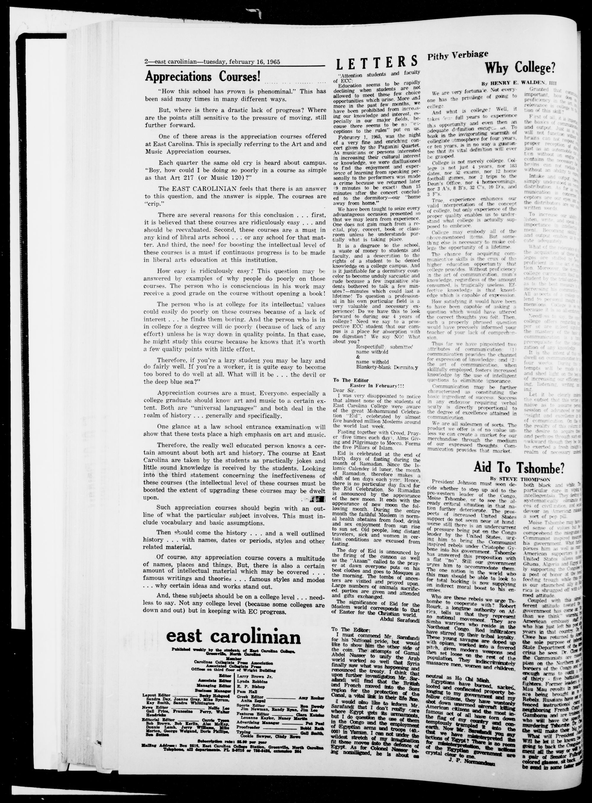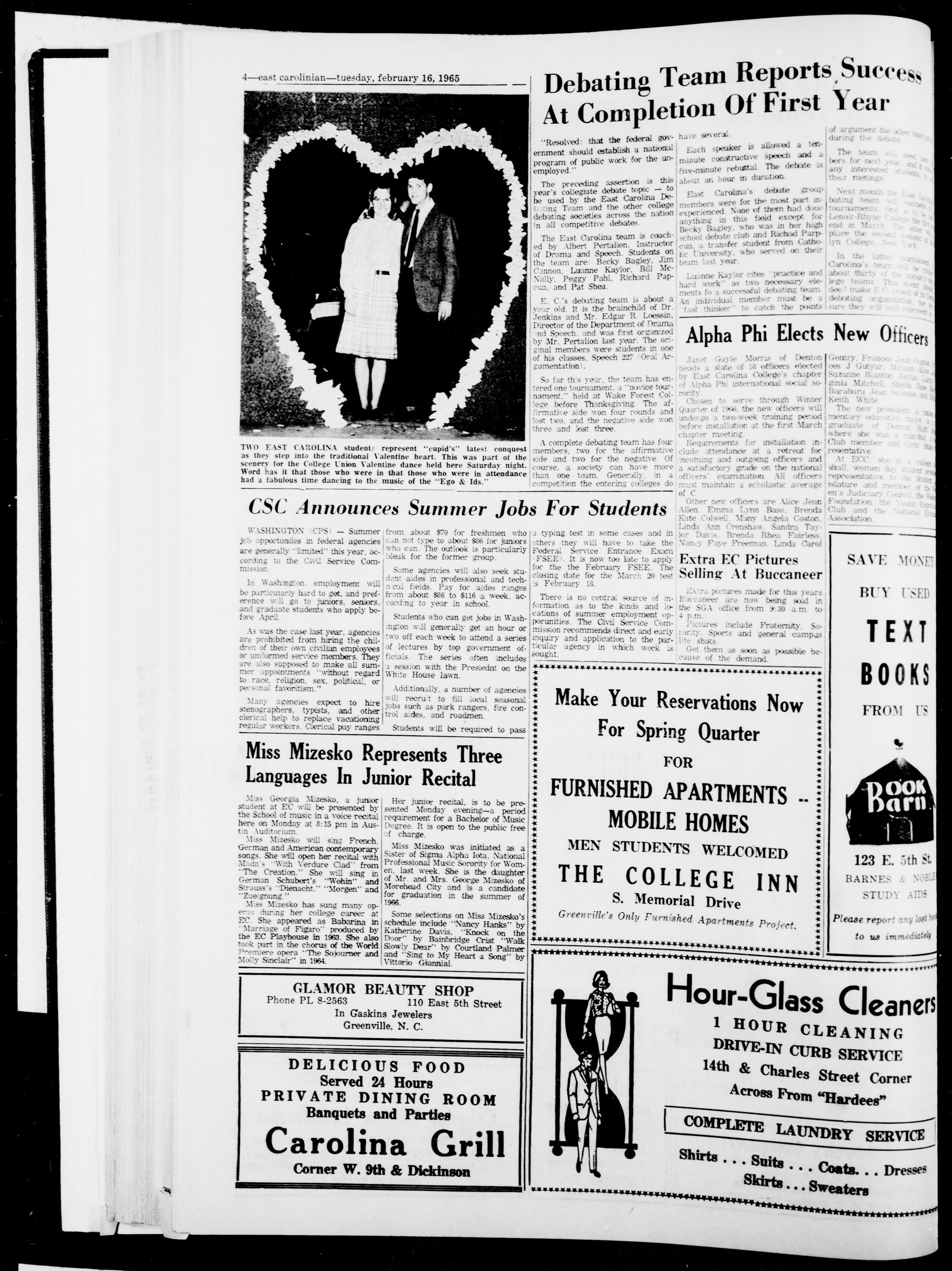 st Carolinian college, greenville, X. tuesday, february L6, 1965