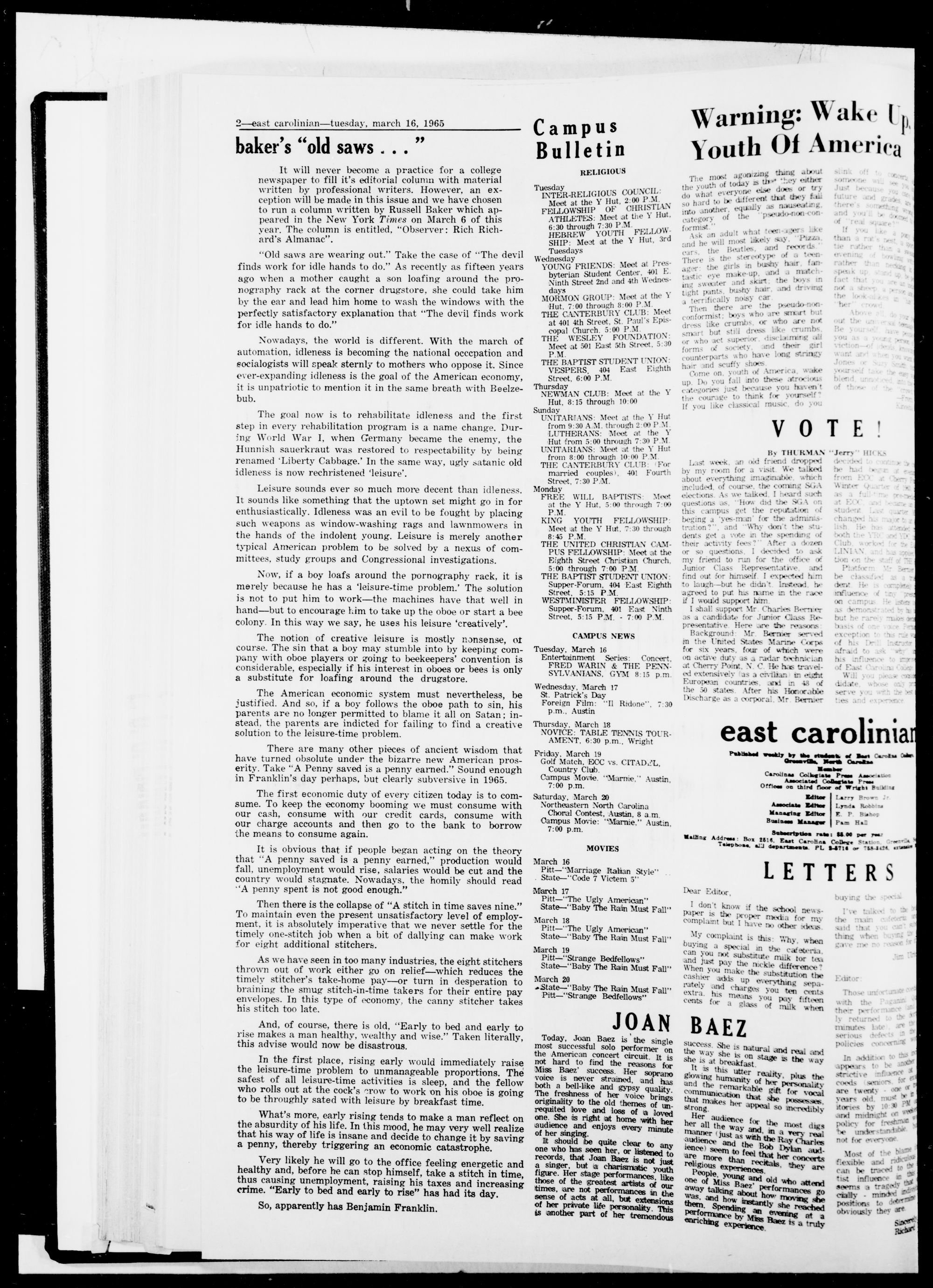 east Carolina college, greenville, n. c, tuesday, march 16, 1965