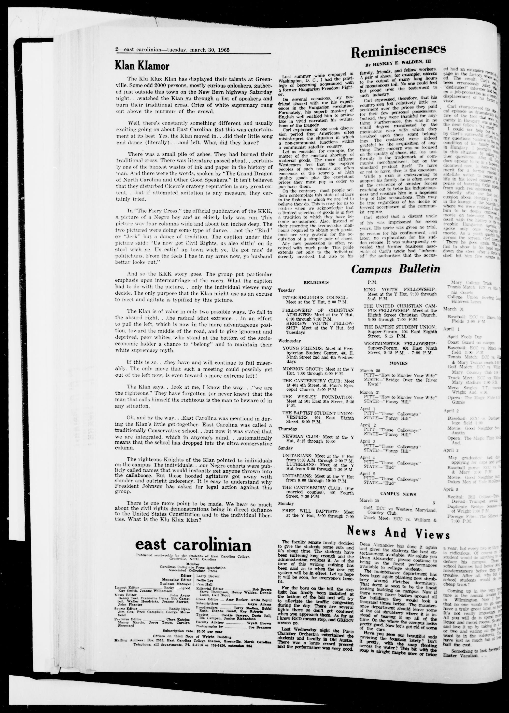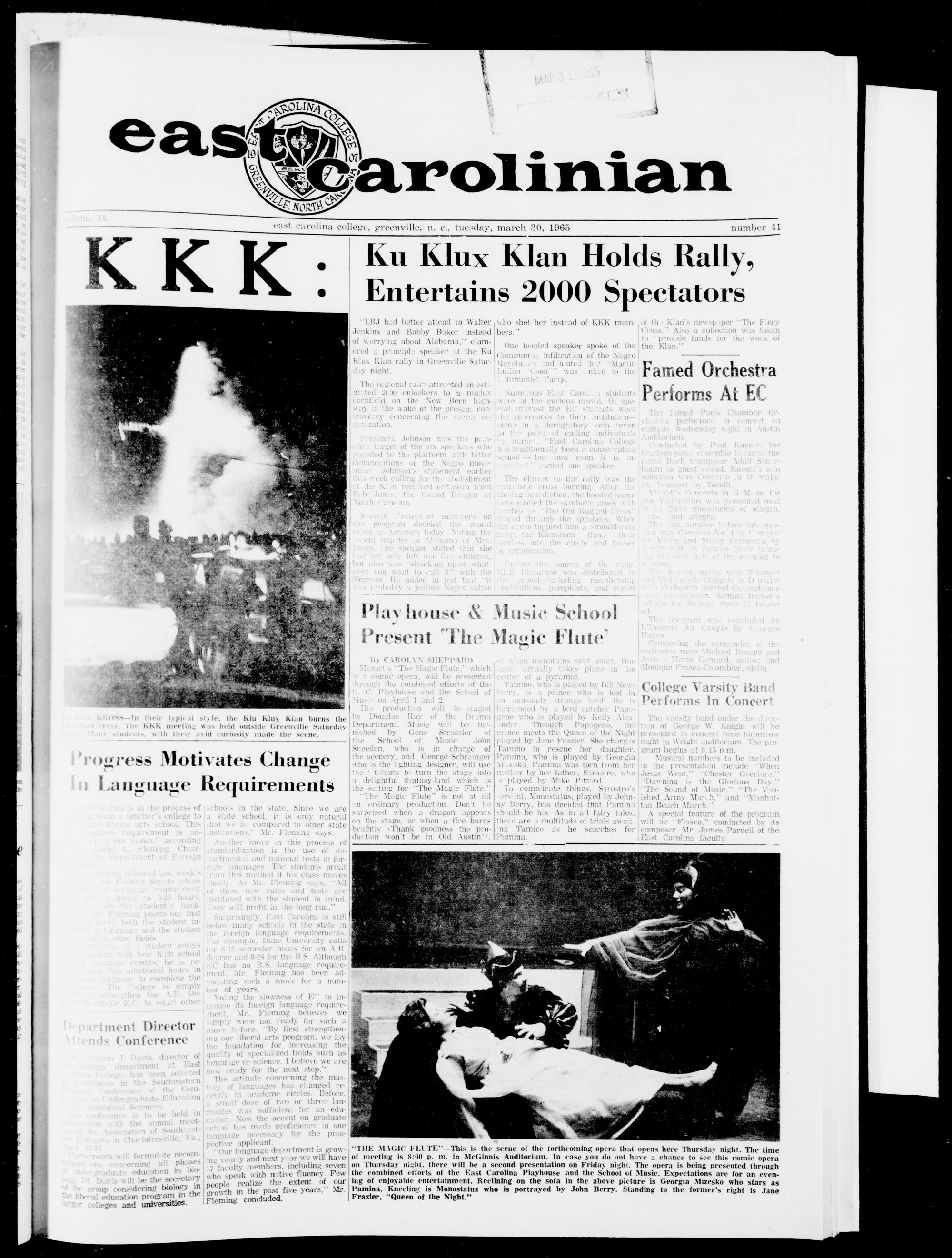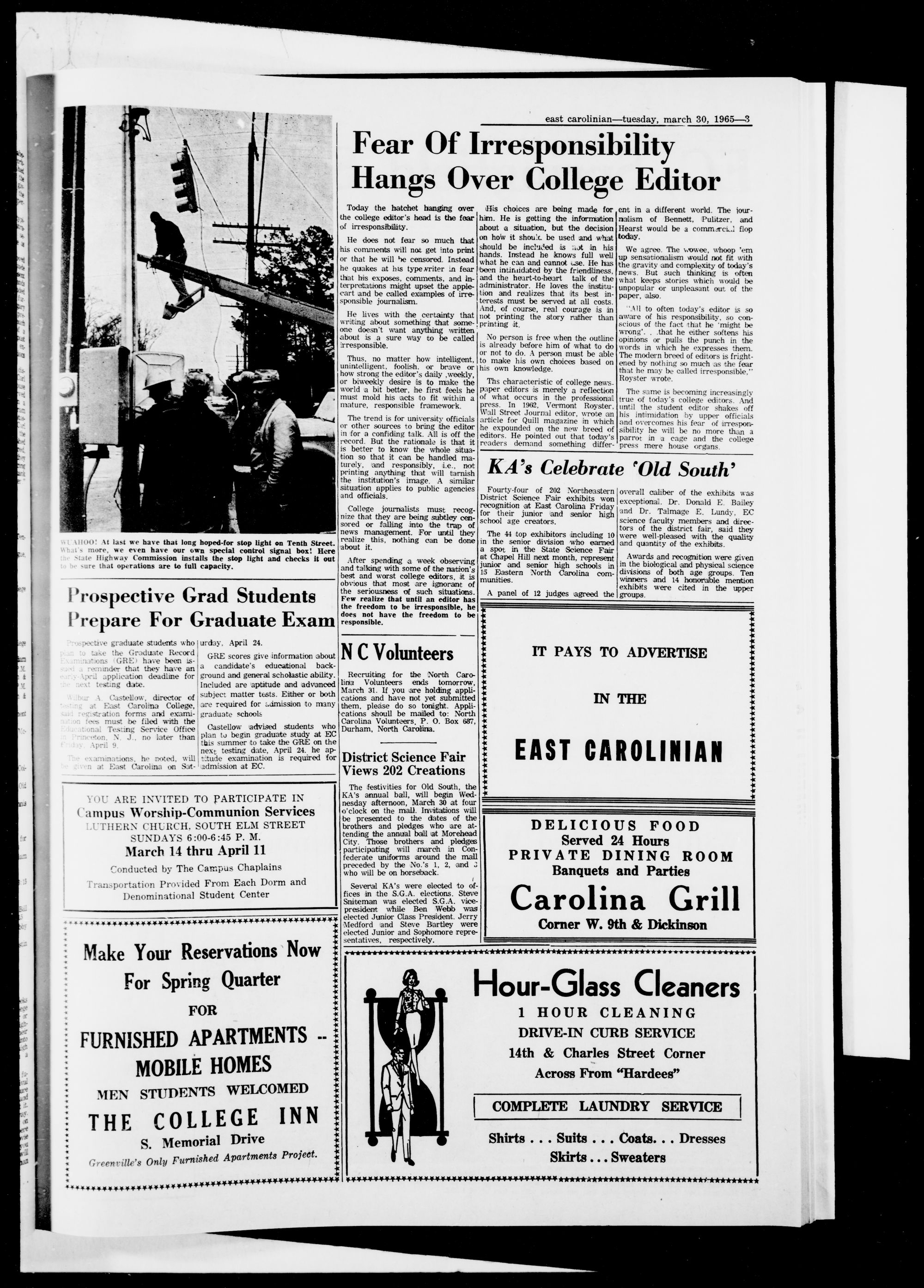 east Carolina college, greenville, n. c, tuesday, march 30, 1965