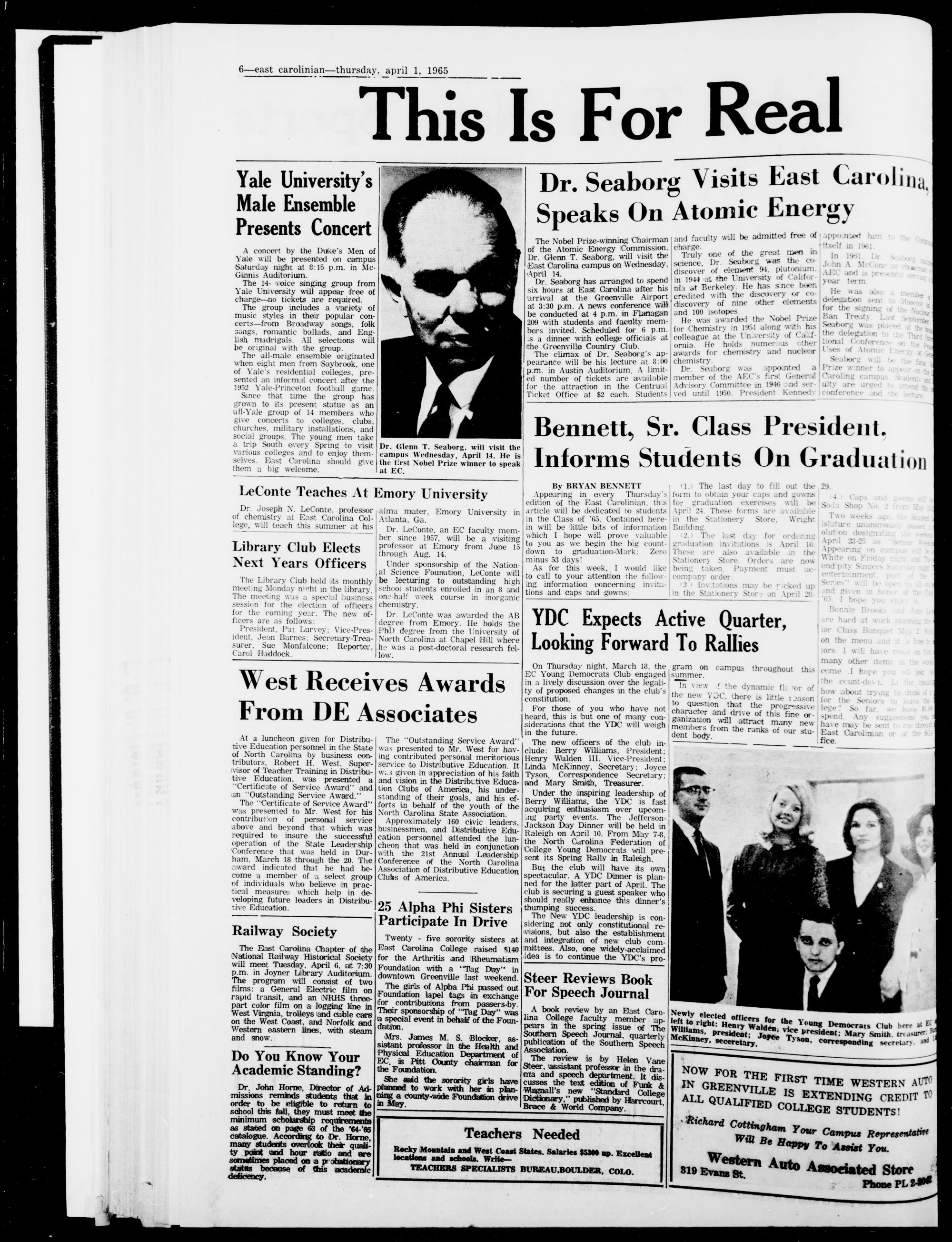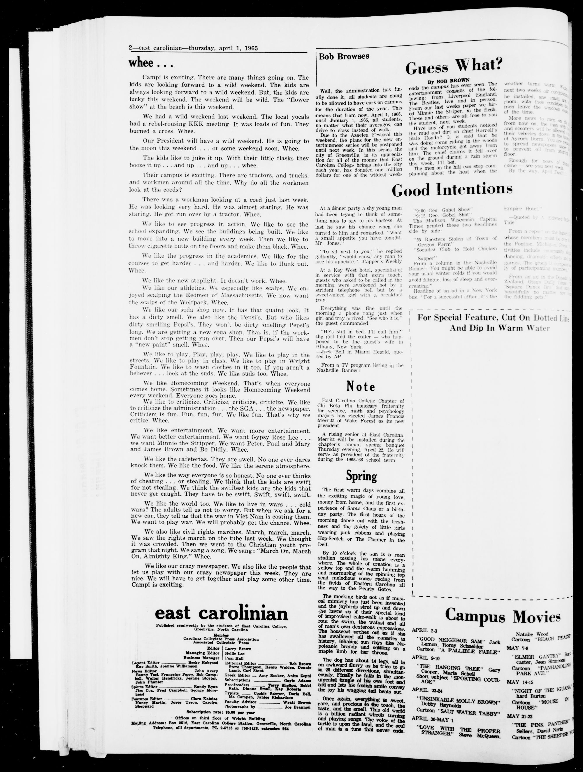 east Carolina college, greenville, n. c. thursday, april fool, 1965