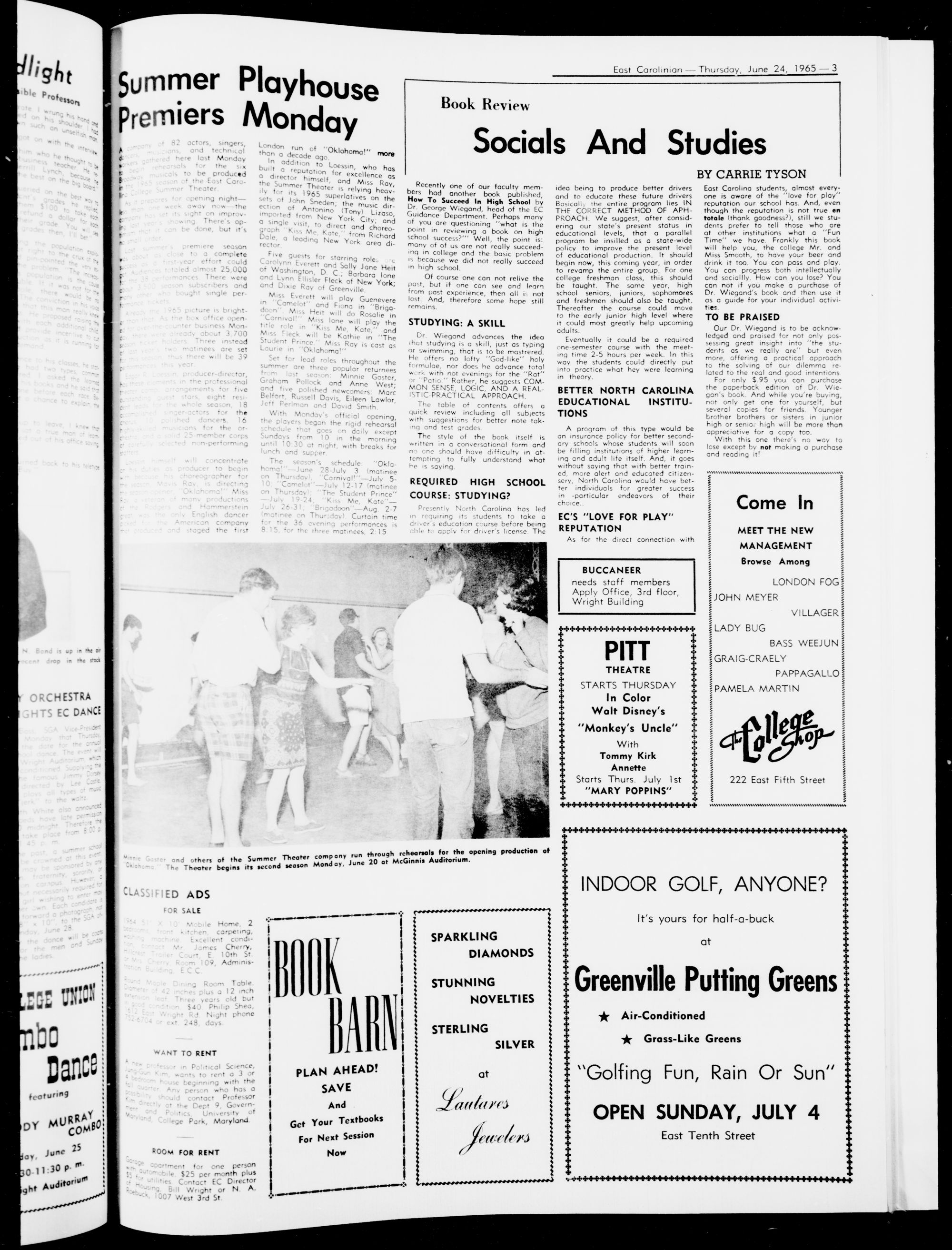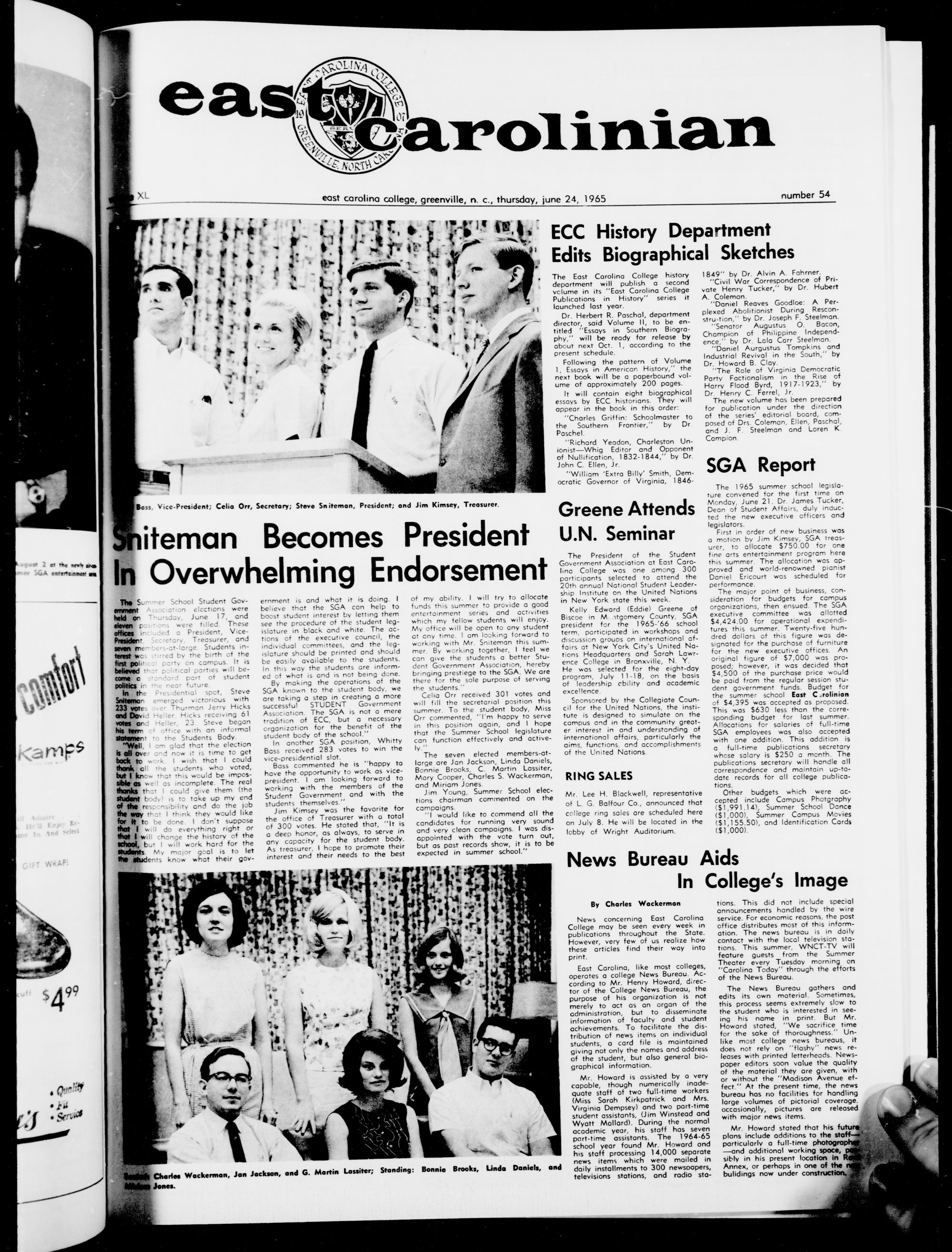 eost caroling college, greenville, n. c, thursdoy, June 24, 1965