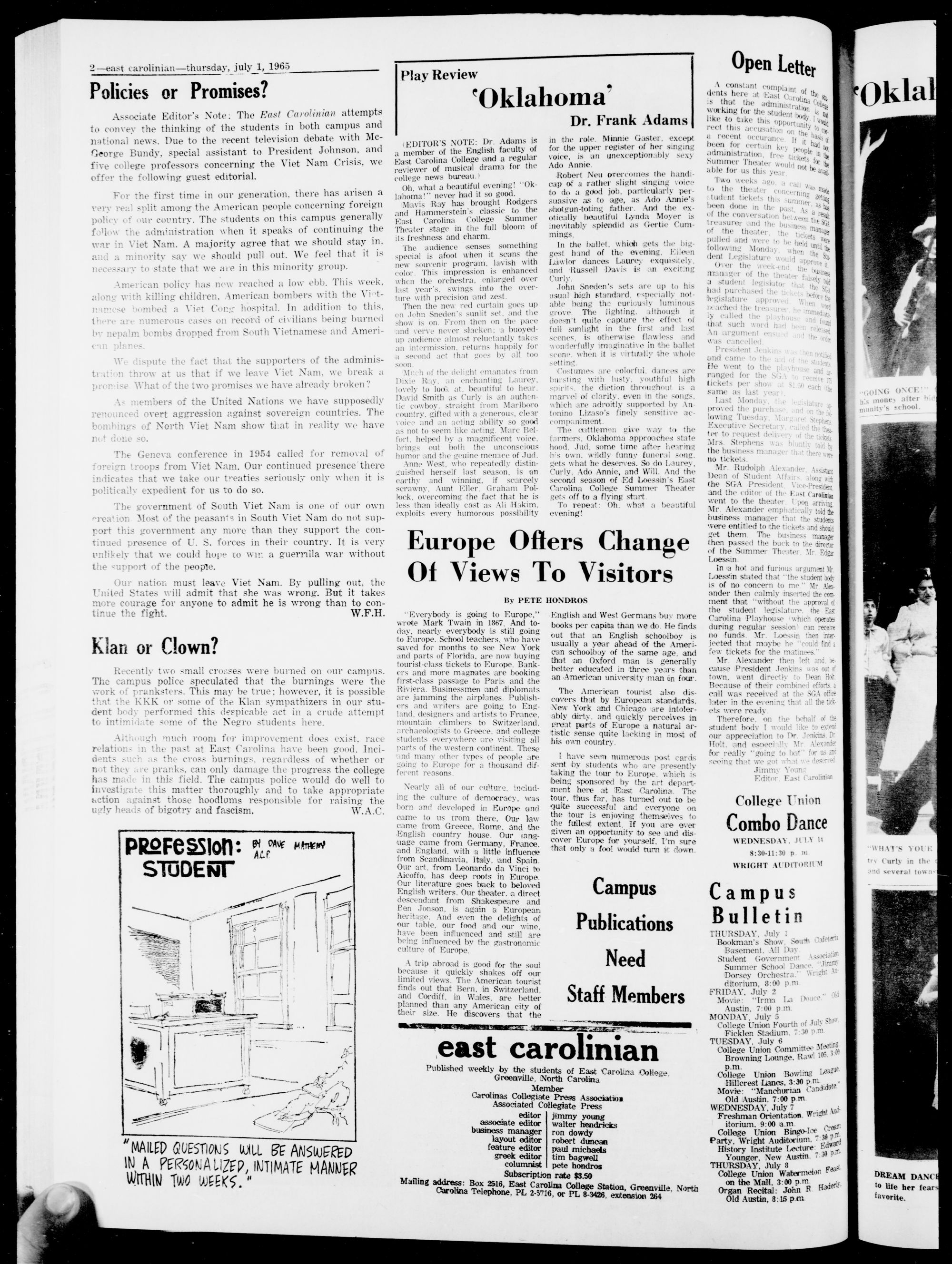 :ollege, greenville, n. c, thursday, July 1, 1965