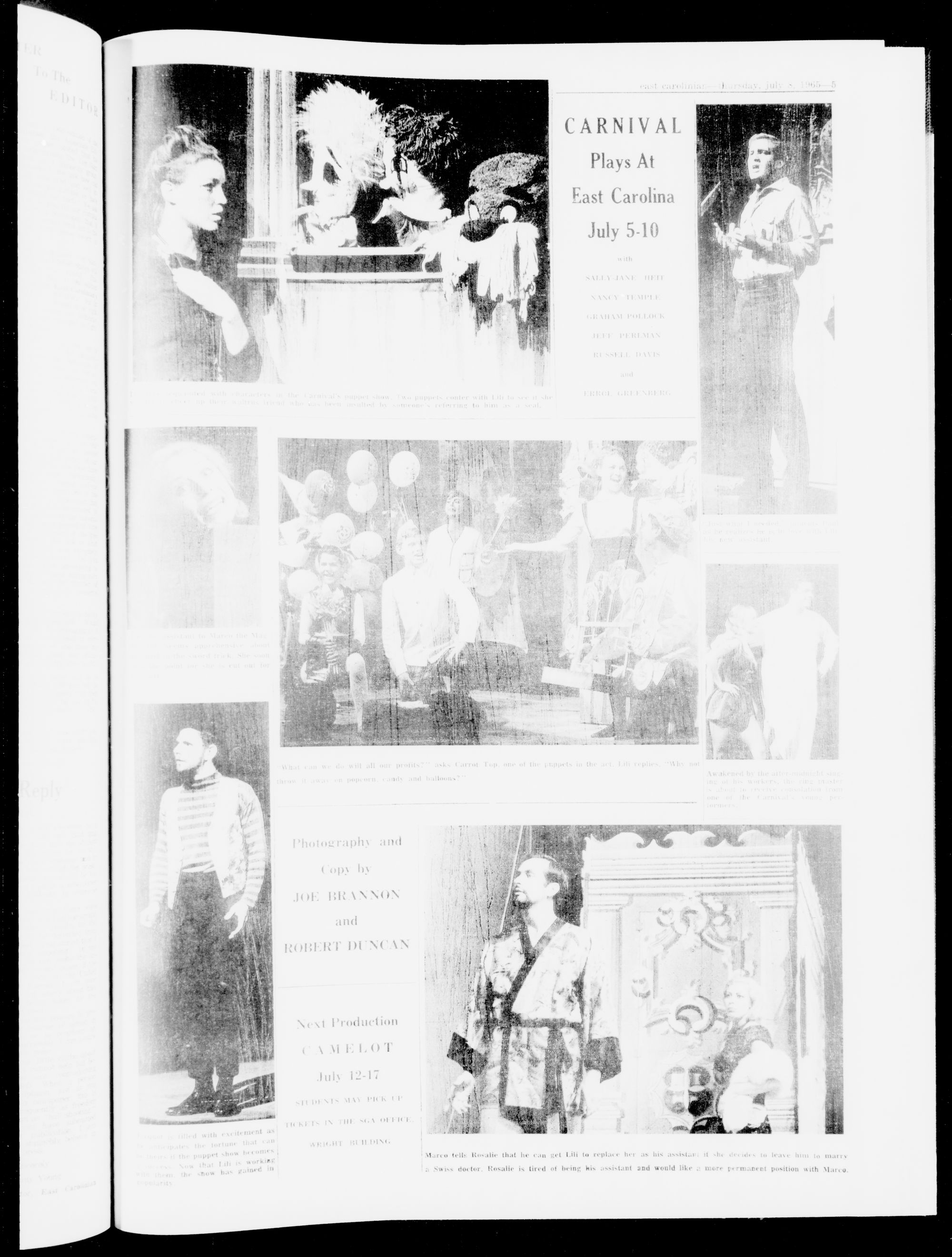 "Carnival, the second of six productions to be presented by the EC Summer Theater is nearing the end of its six day run. The next play will