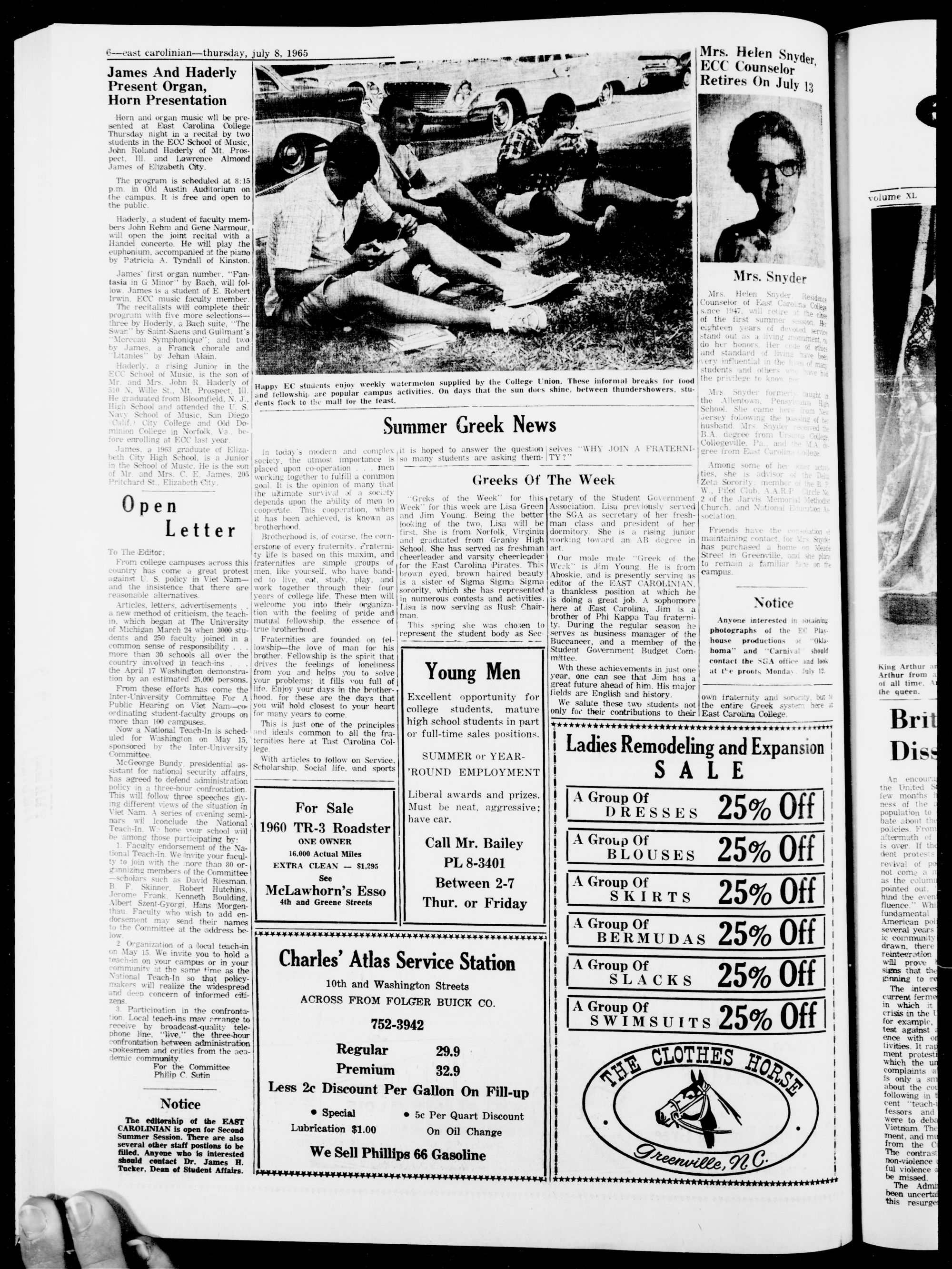 east Carolina college, greenville, n. c, thursday, July 8, 1965