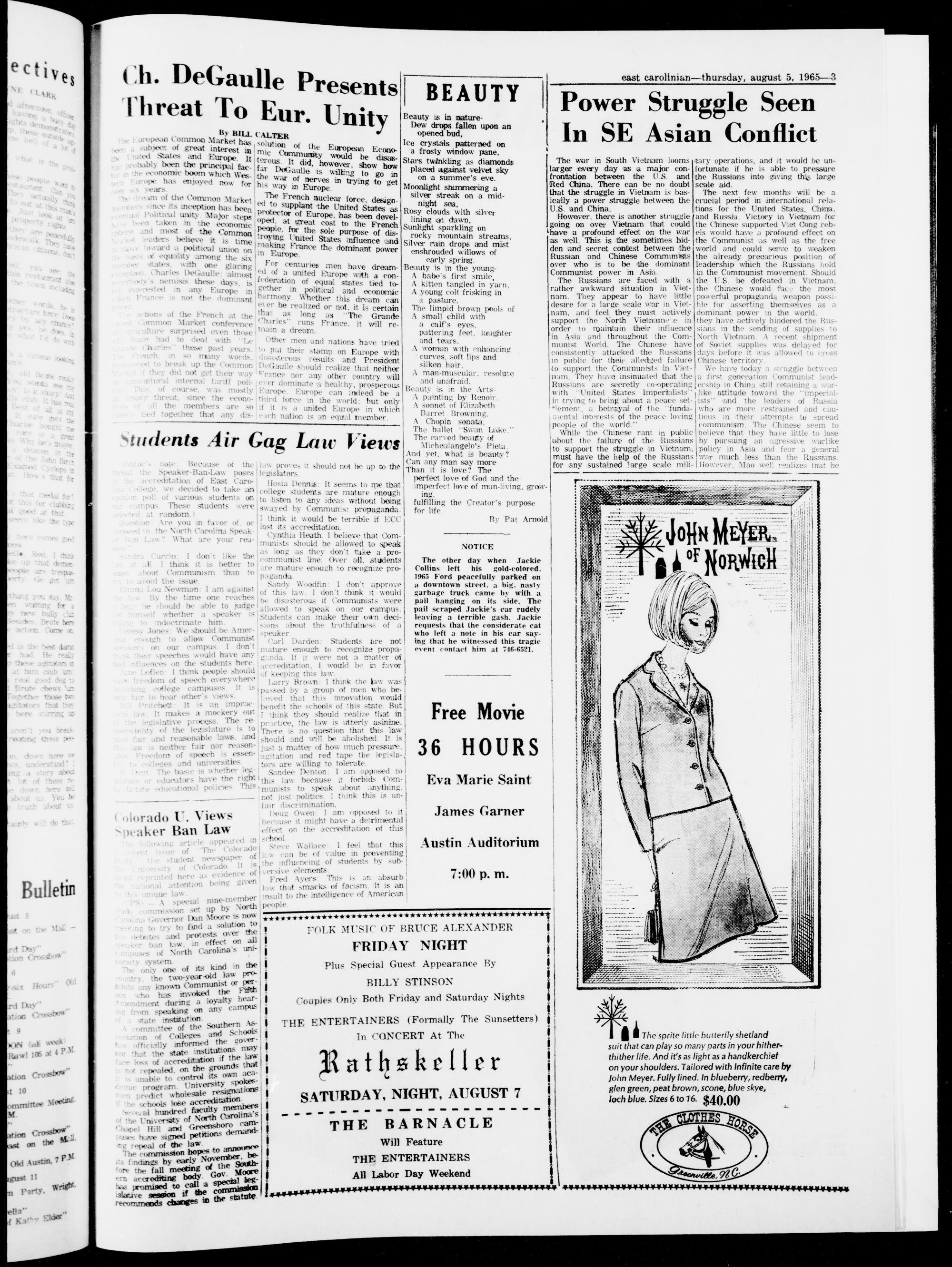 east Carolina college, greenville, n. c, thursday, august 5, 1965