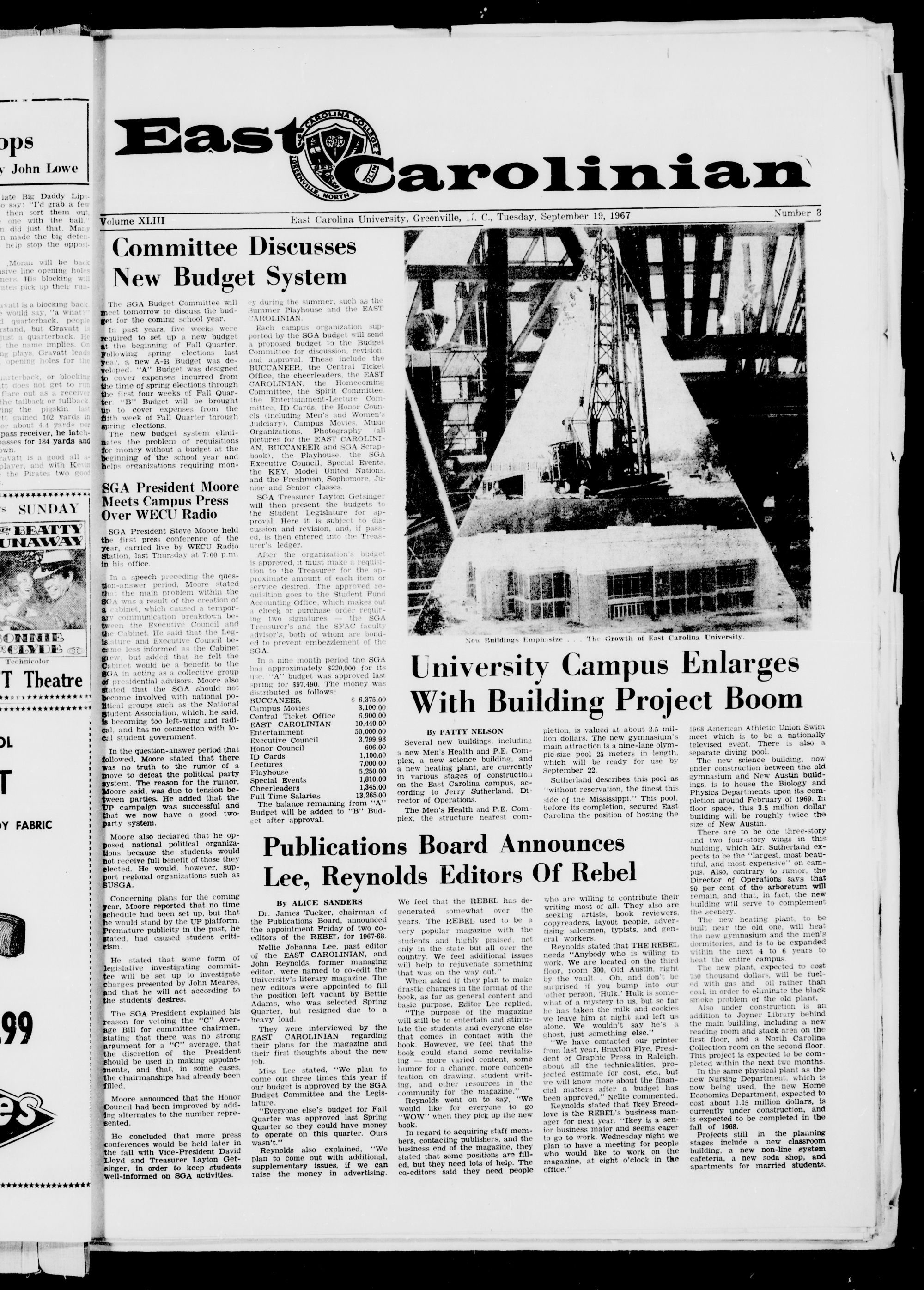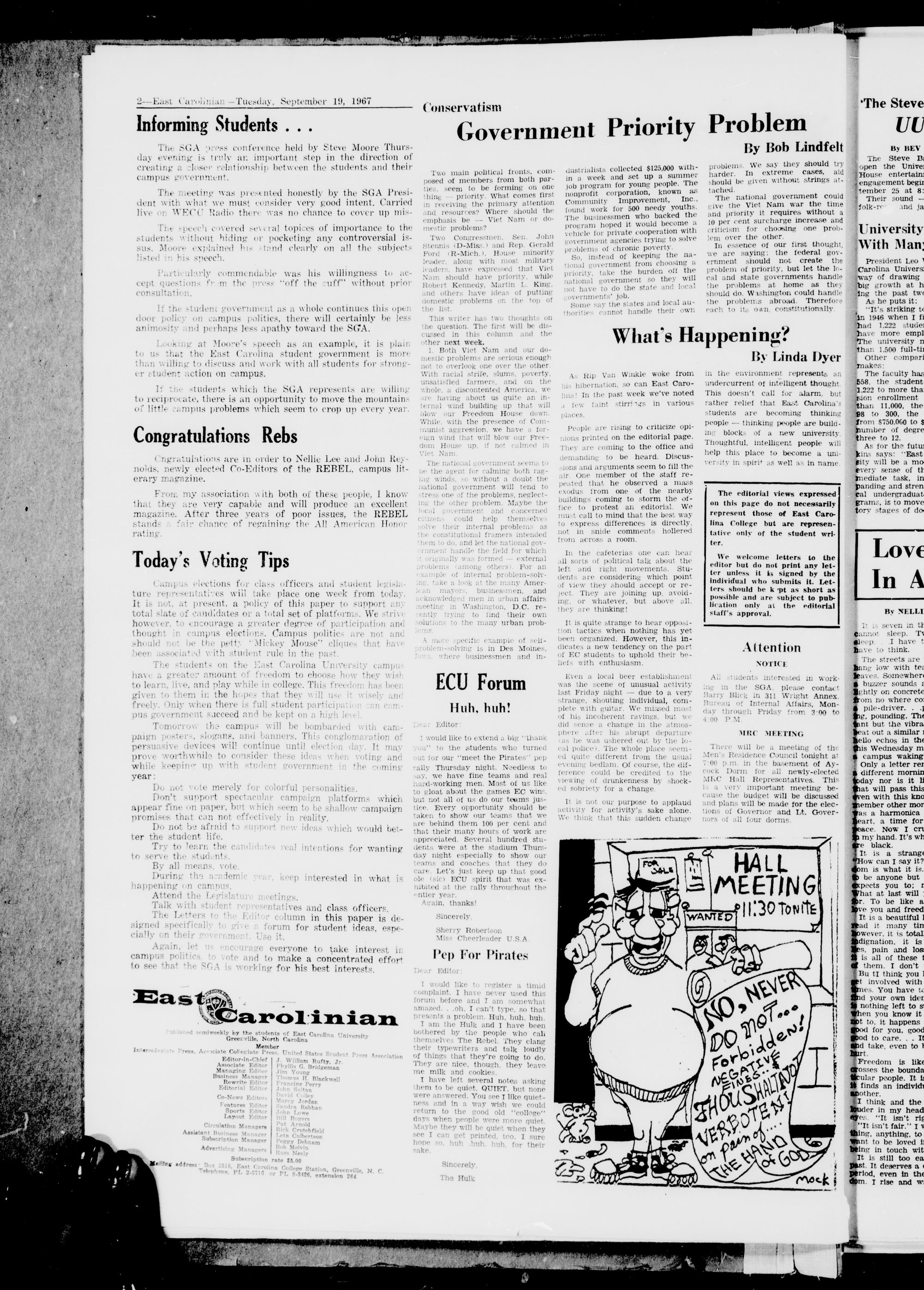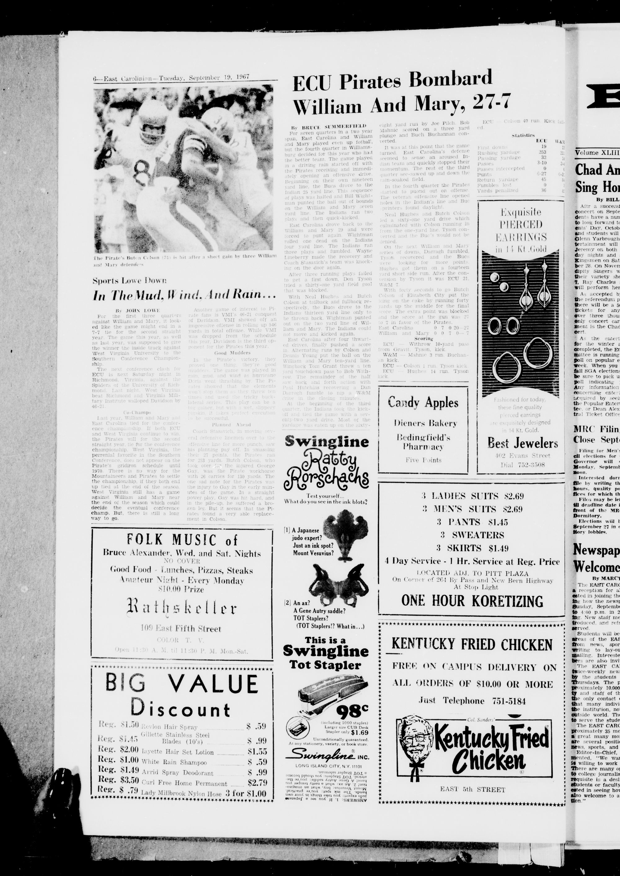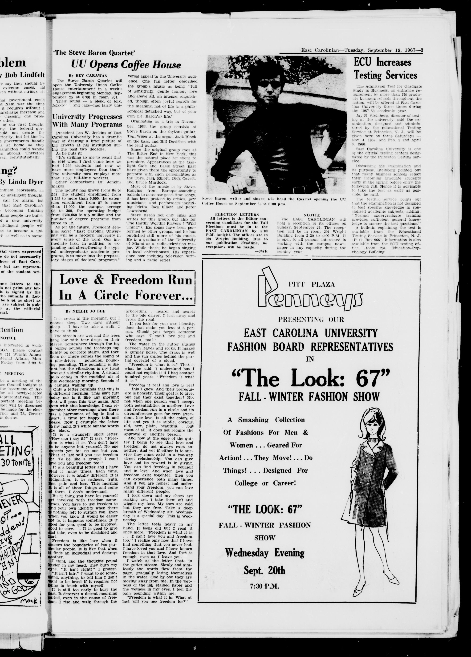 East Carolina University, Greenville, J. C, Tuesday, September 19, 1967