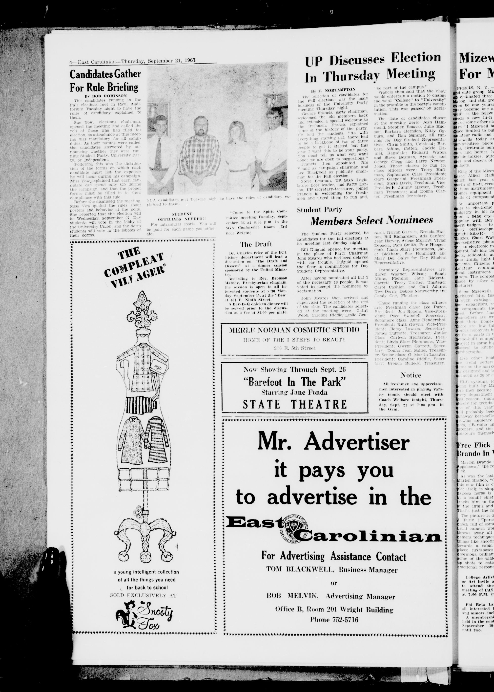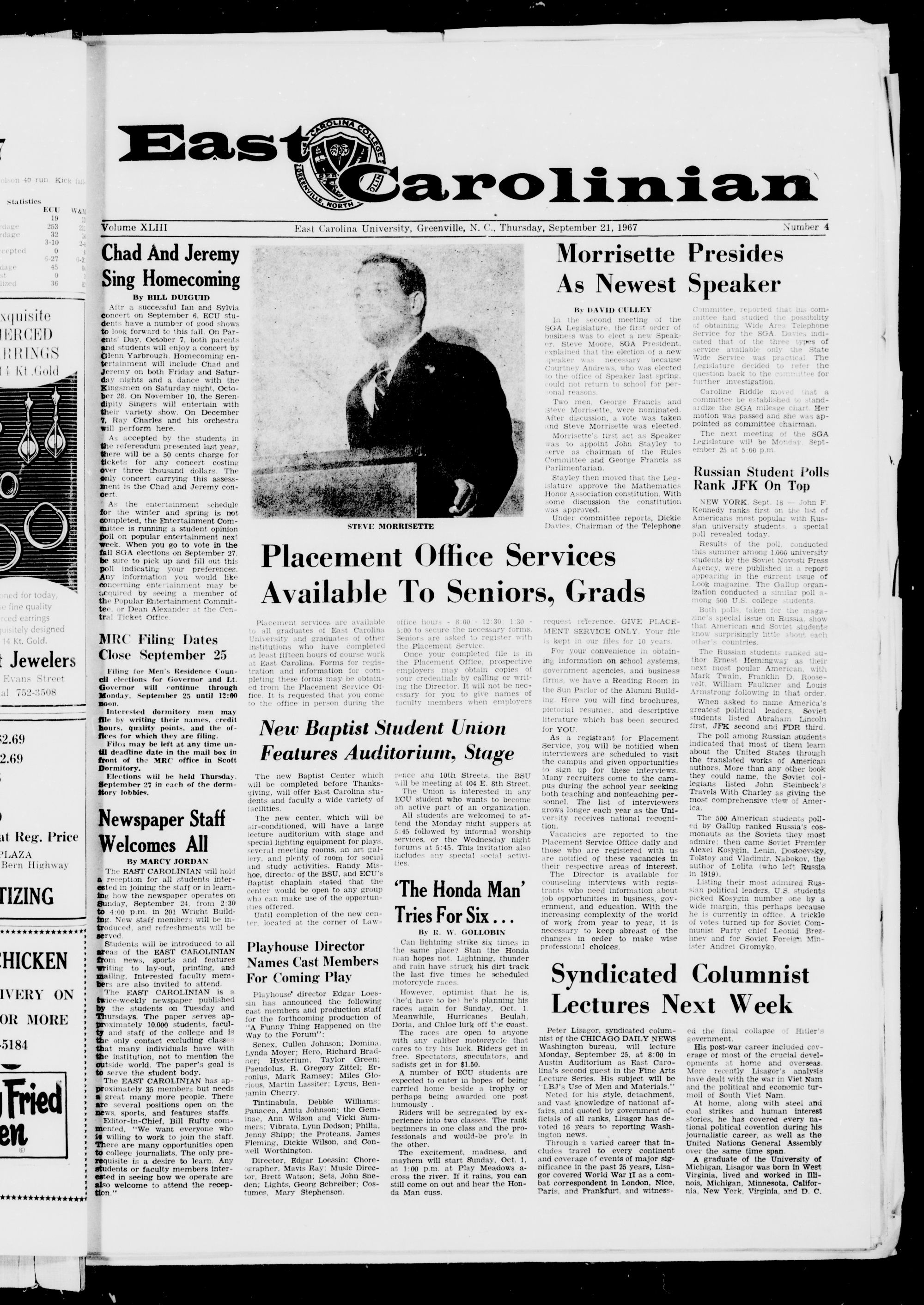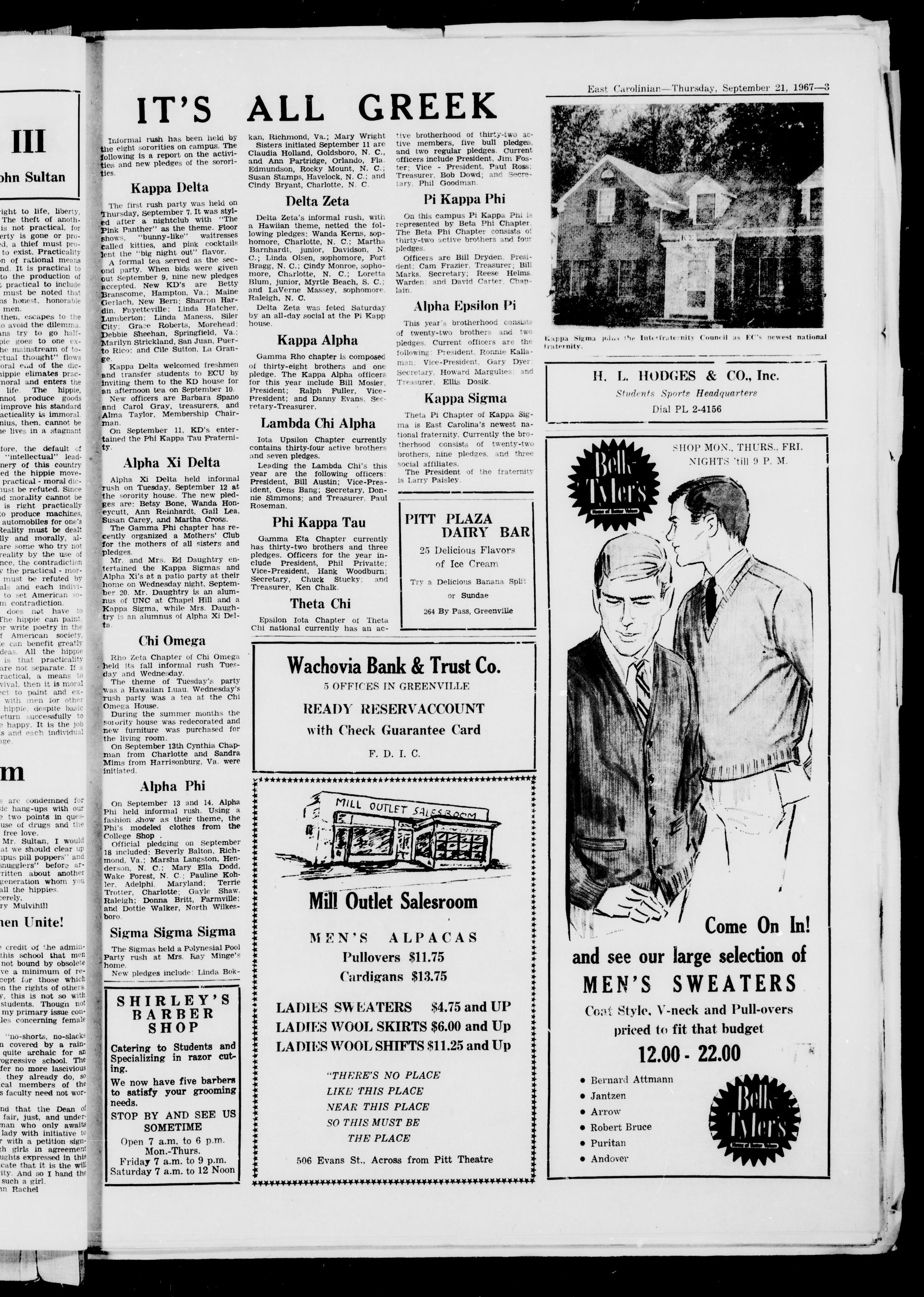 East Carolina University, Greenville, N. C, Thursday, September 21, 1967