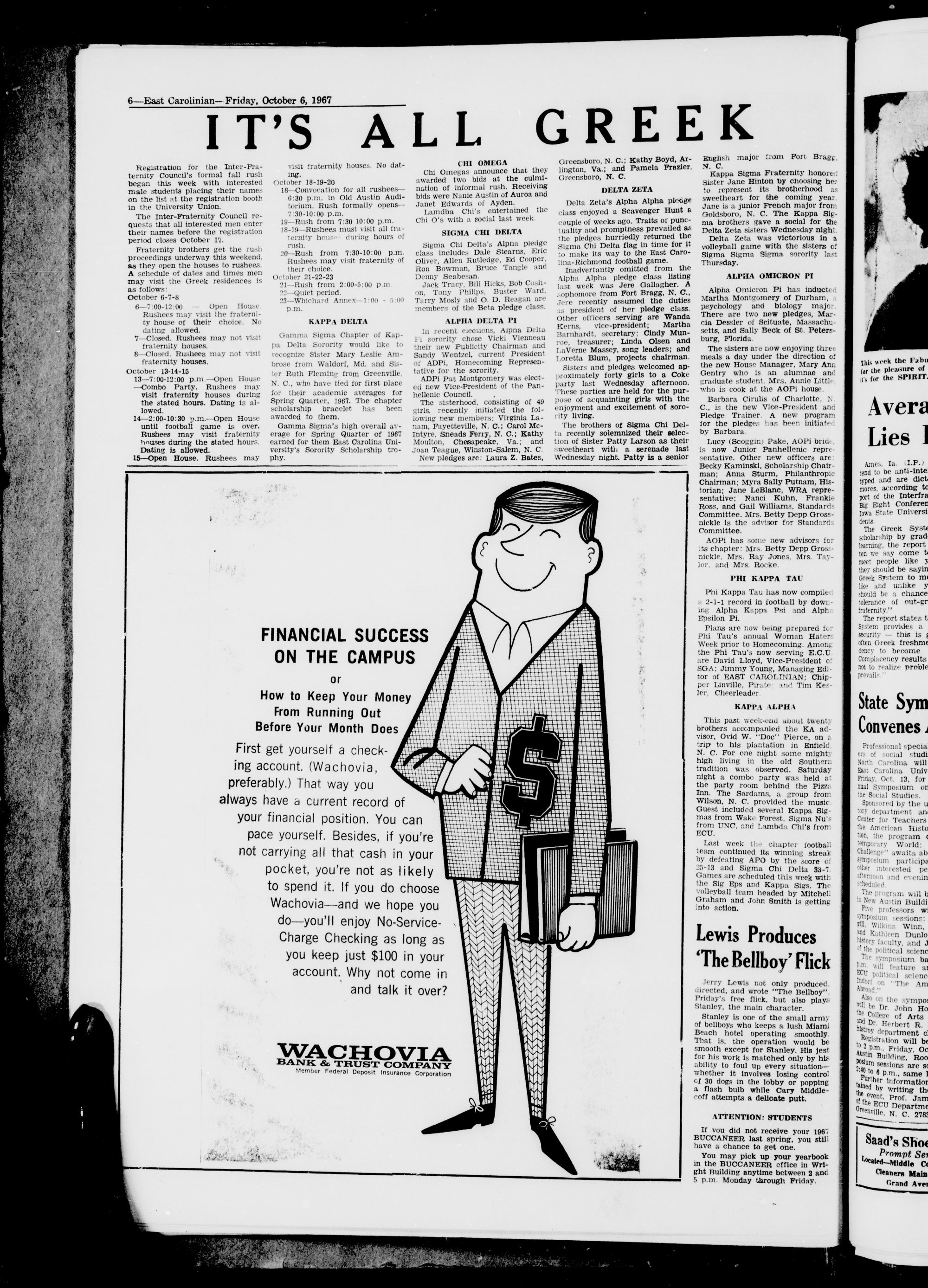 ( rolina University, Greenville, K. C, Friday, October 6, 1967