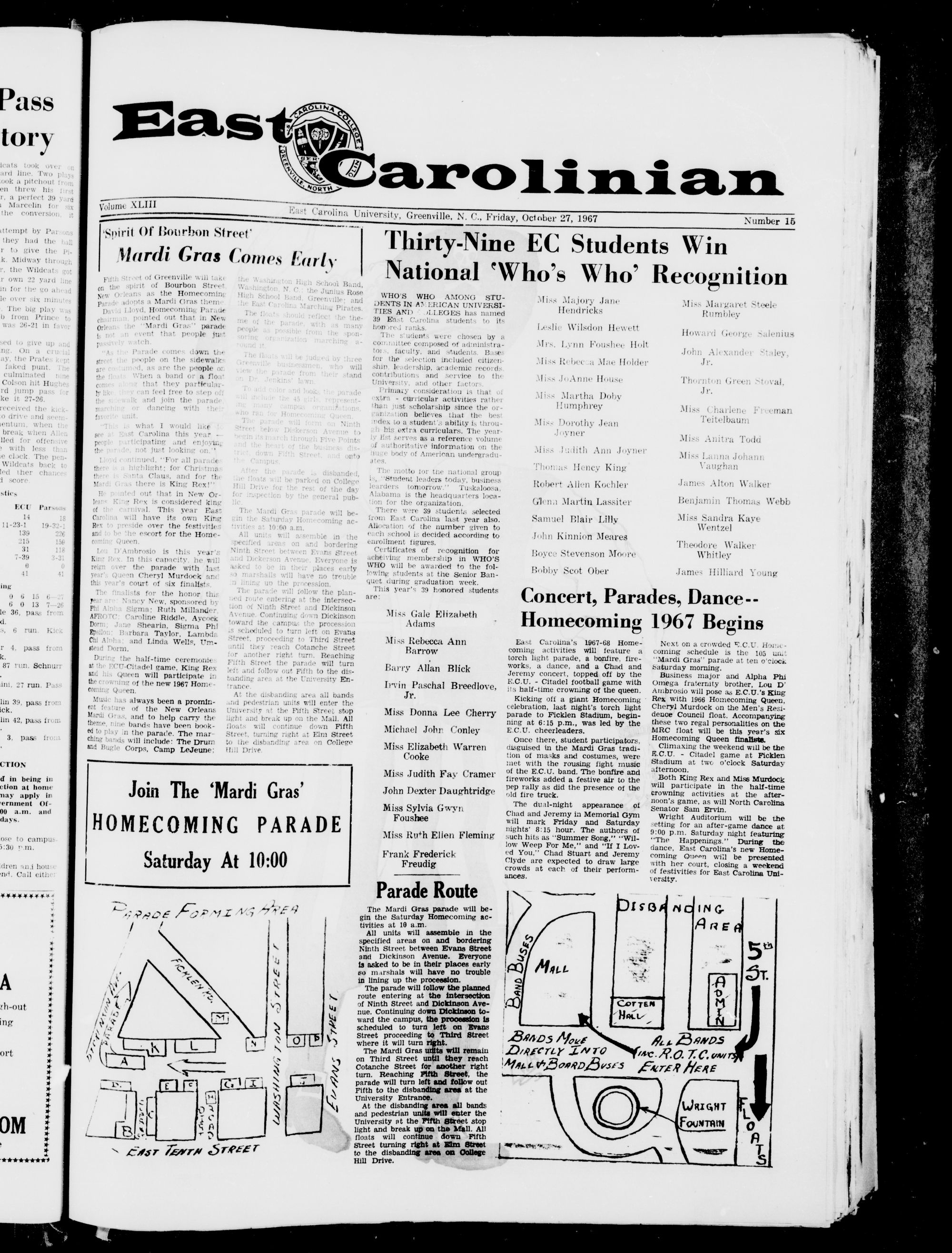 ? East Carolina University, Greenville, N. C Friday, October 27, 1967