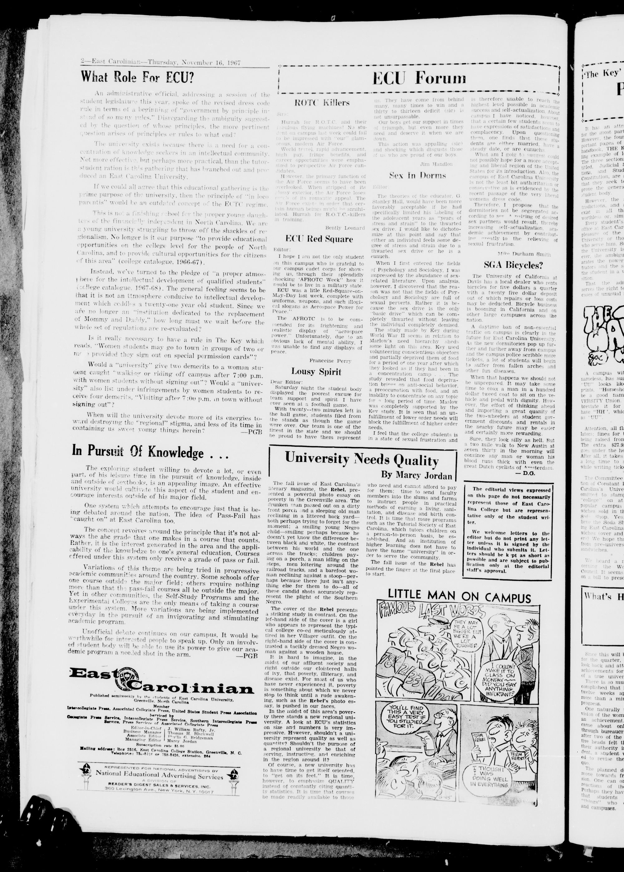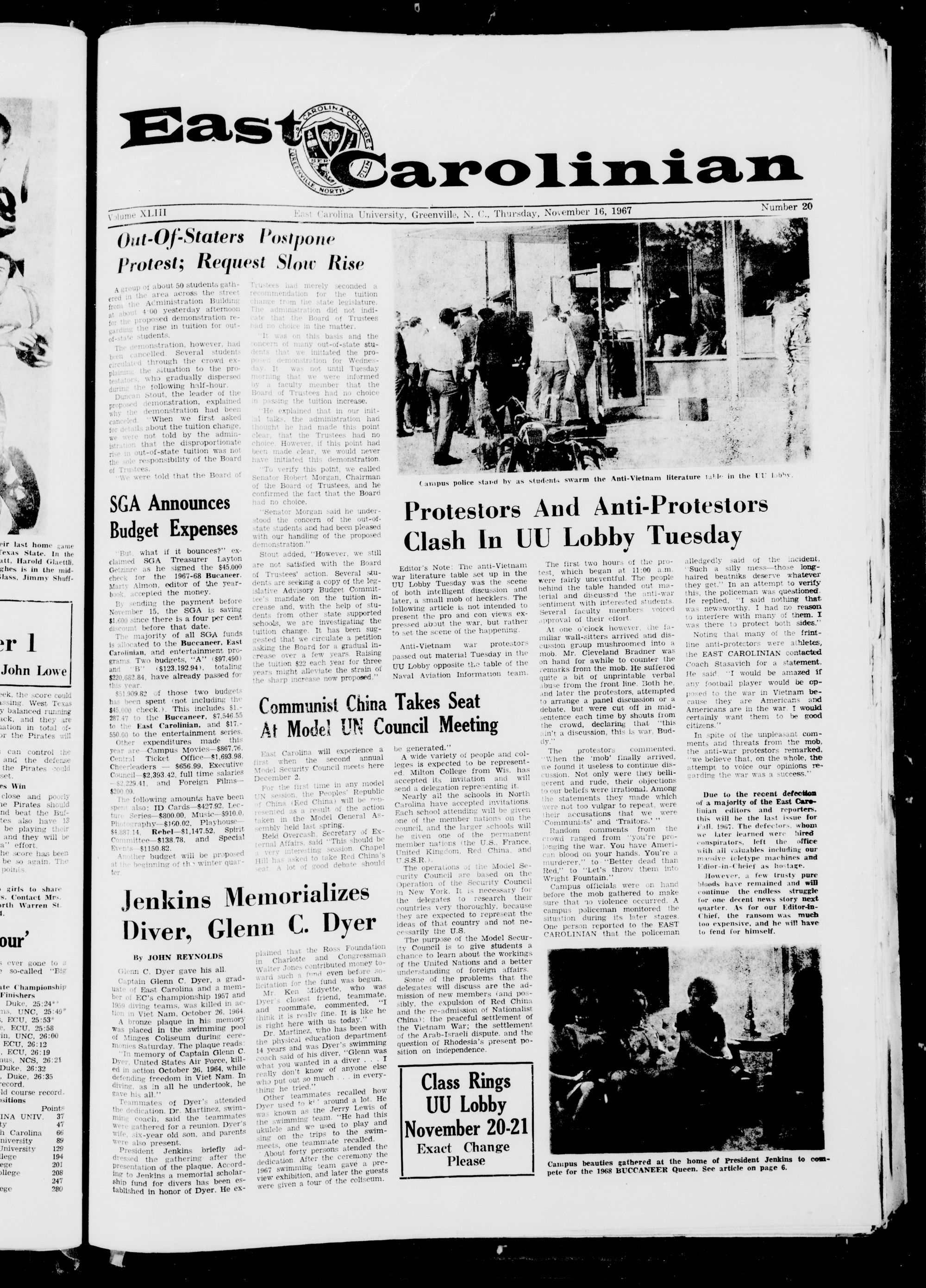 Easl Carolina University, Greenville, N. C, Thursday, November 16, 1967