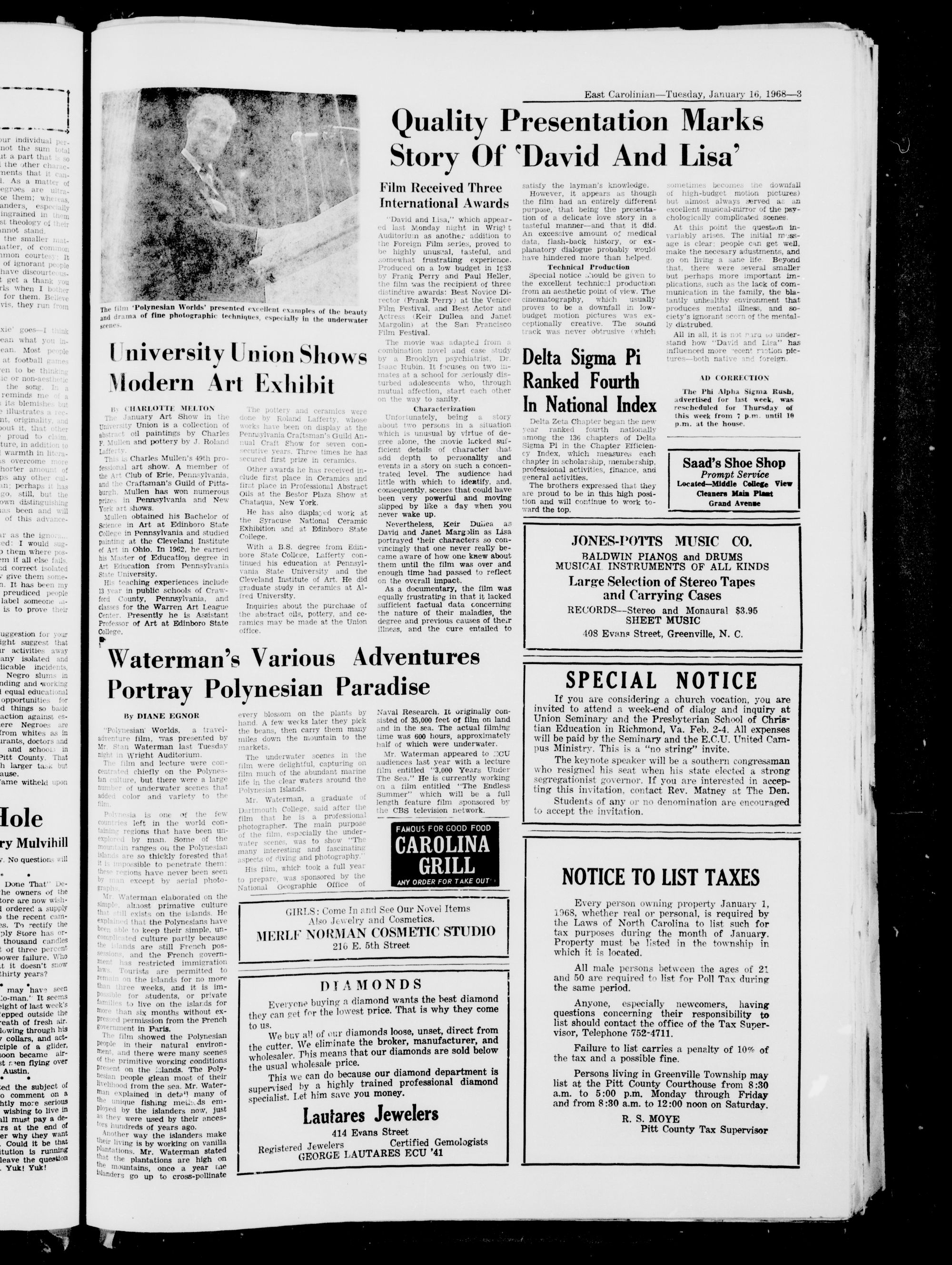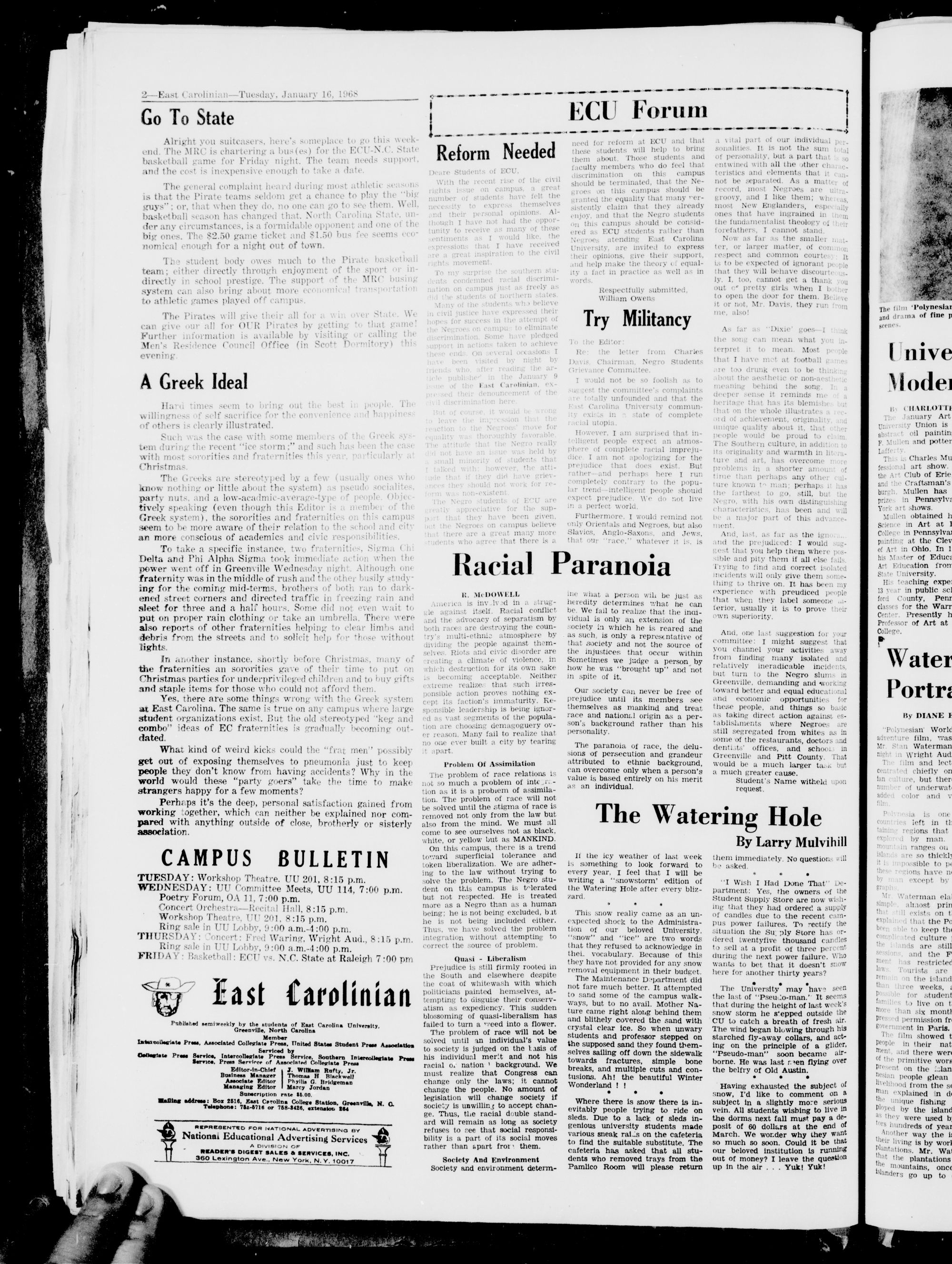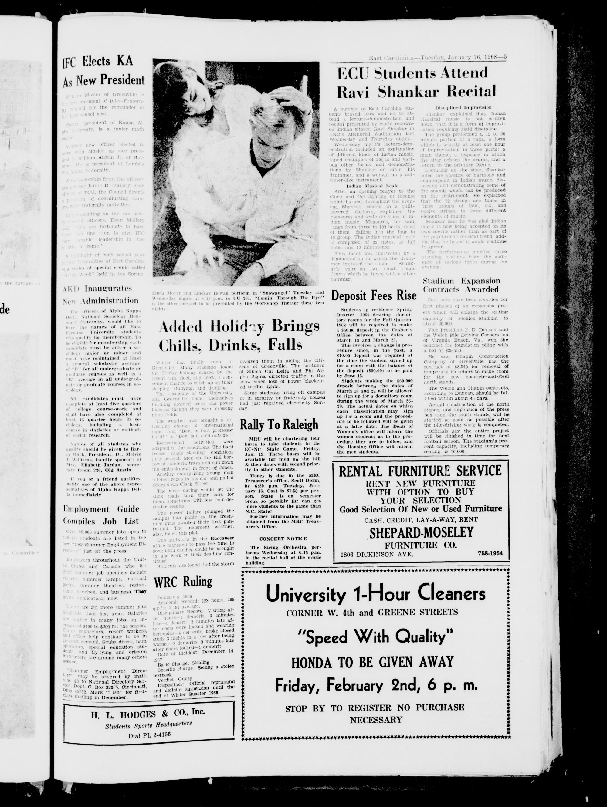 at Carolina University, Greenville, N. ? Tuesday, January 16, 1968
