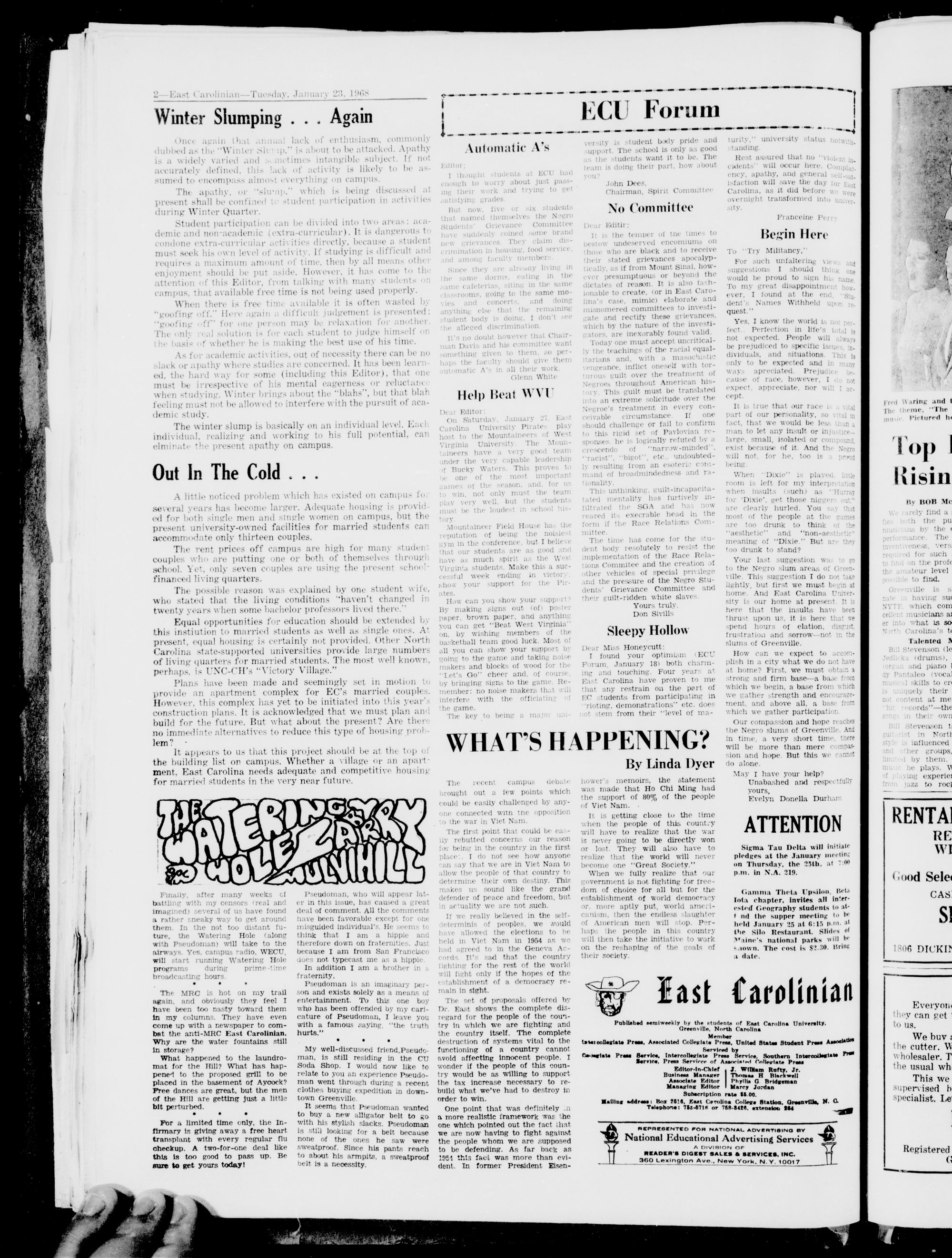 East Carolina University, Greenville, N. C, Tuesday, January 23, 1968