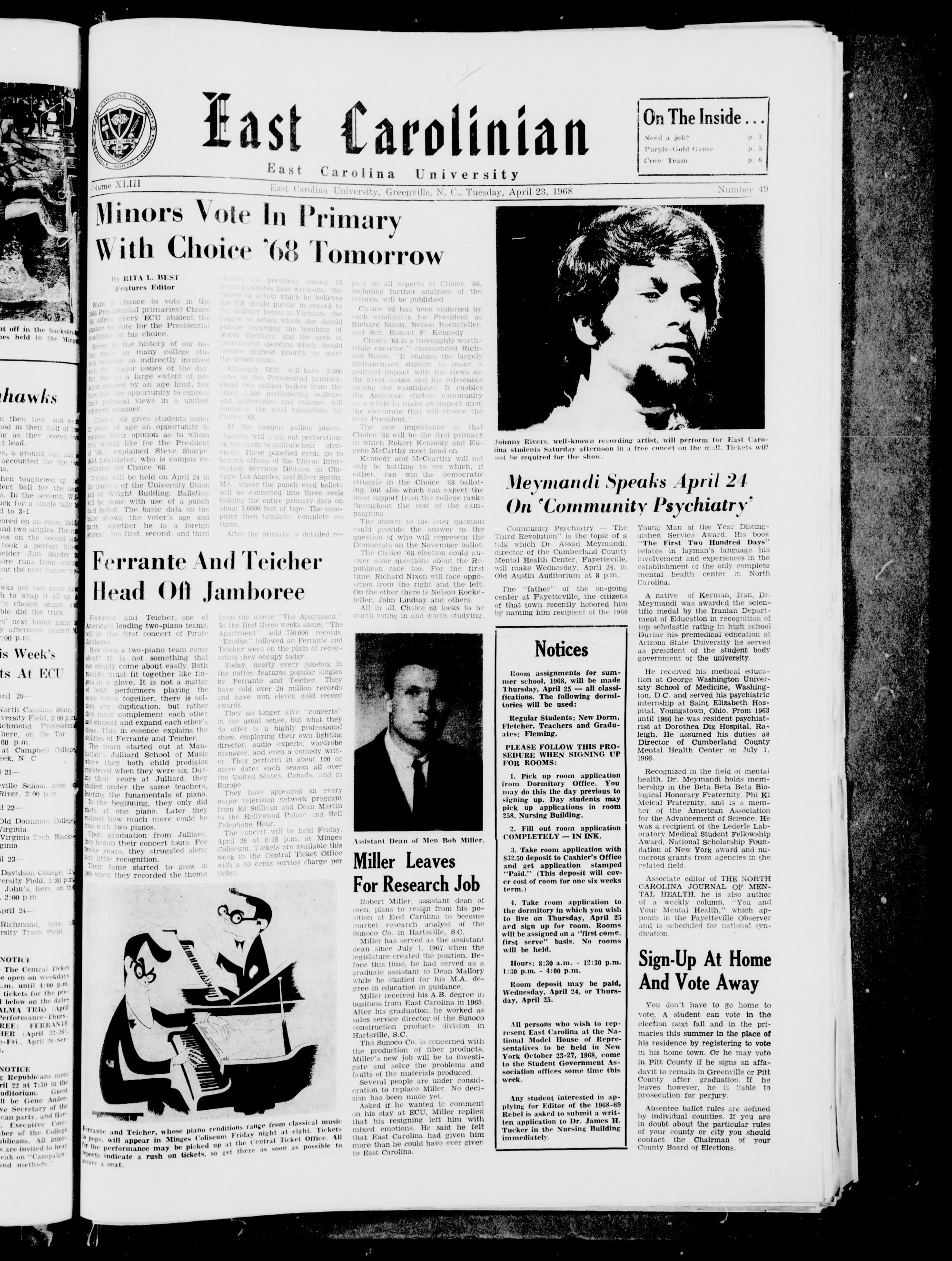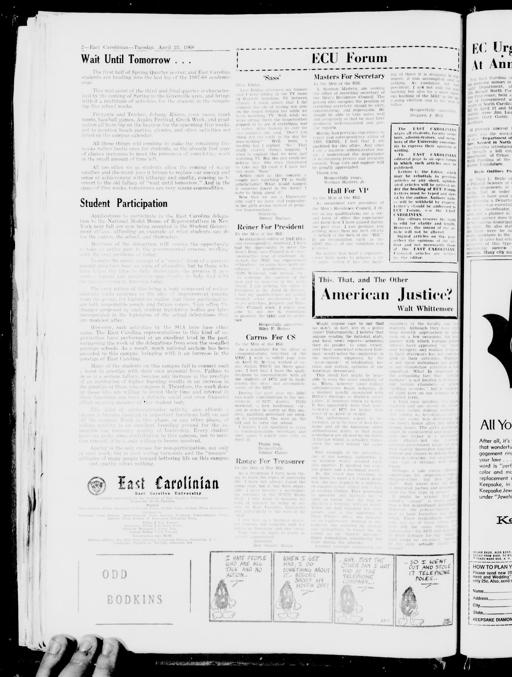 last Carolina University. Greenville, X. C, Tuesday, April 23, 1968