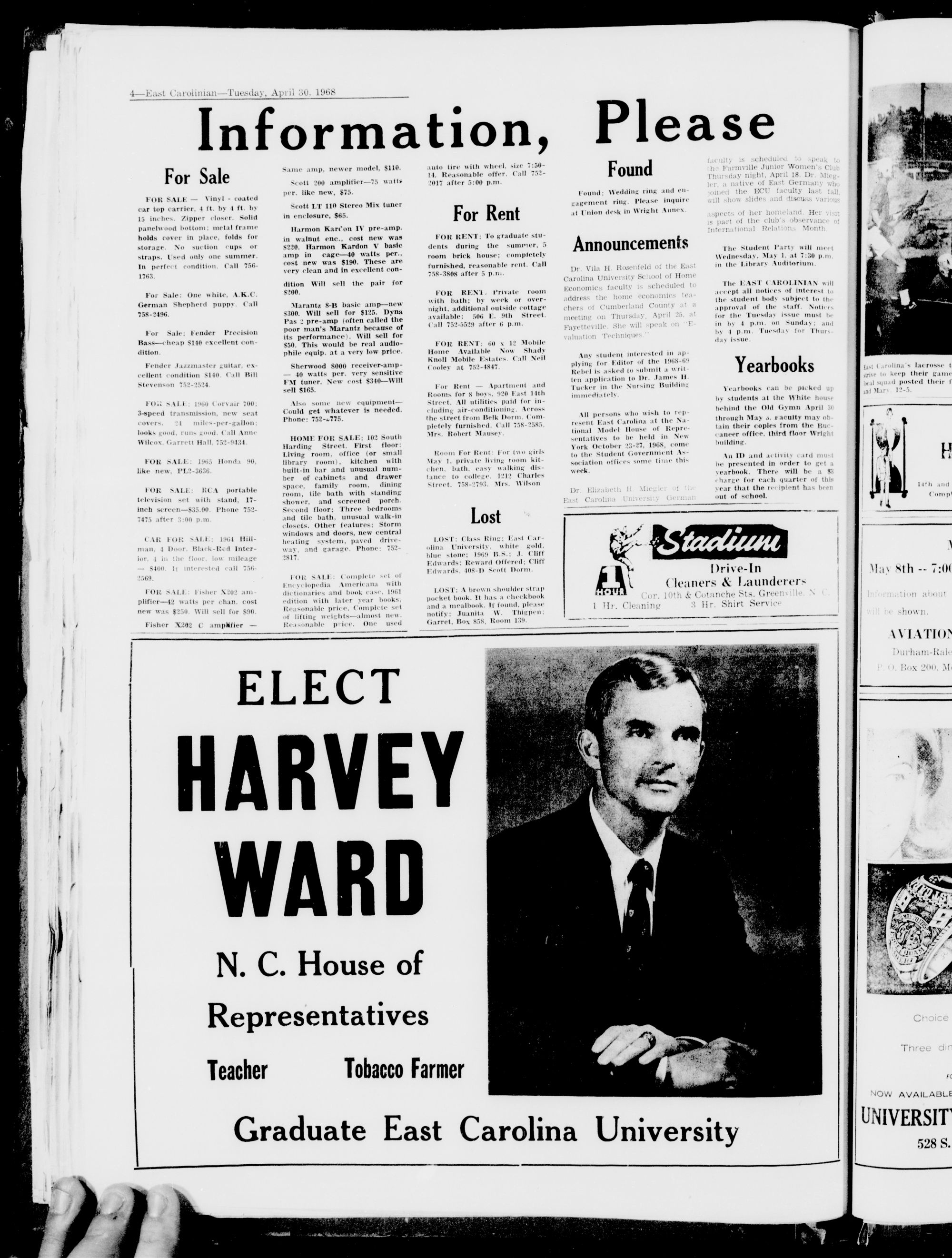 East Carolina University. Greenville, N. C, Tuesday, April 30, 1(J6X