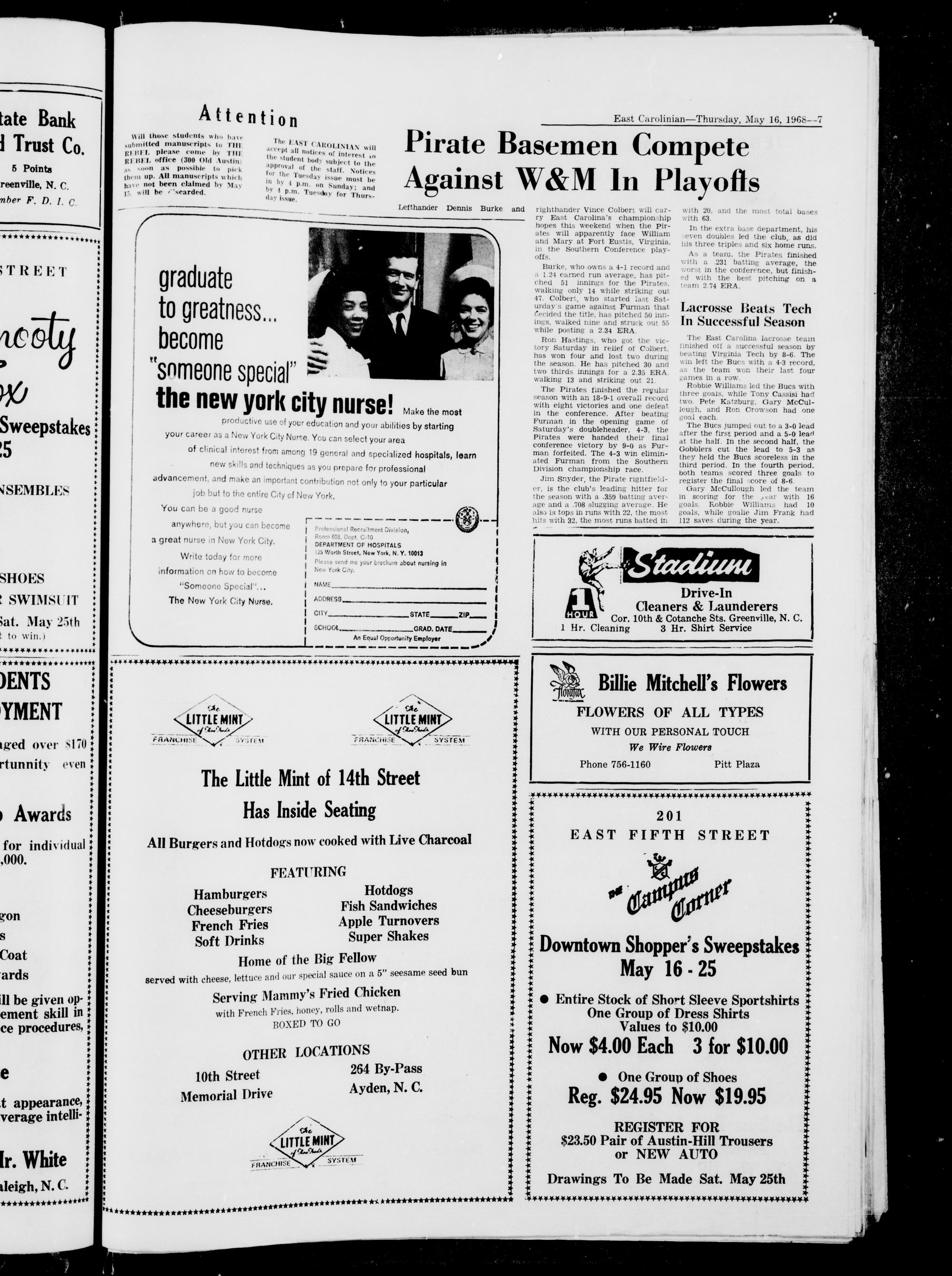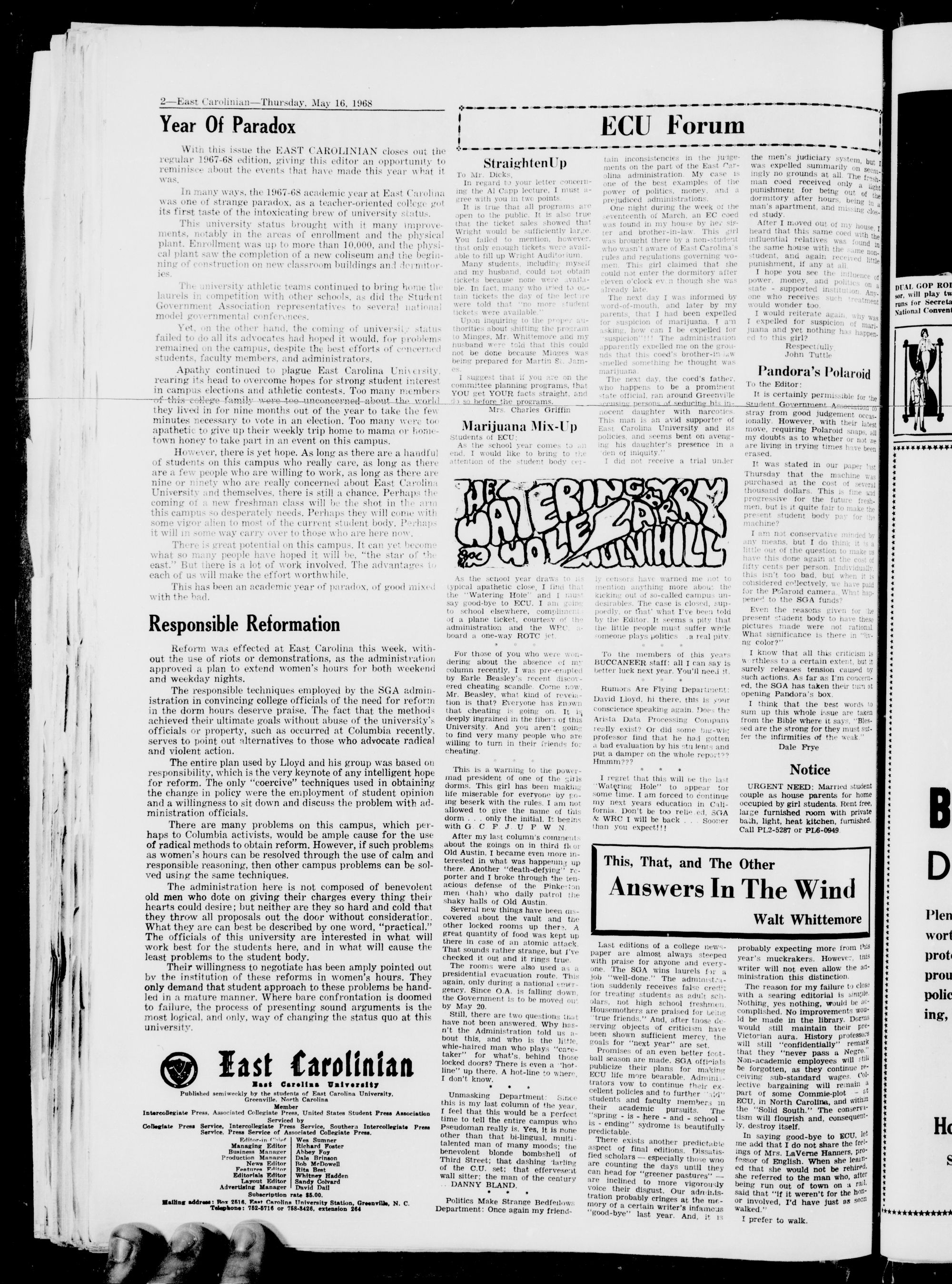 East Carolinia University, Greenville, N.C Thursday, May 16,1968