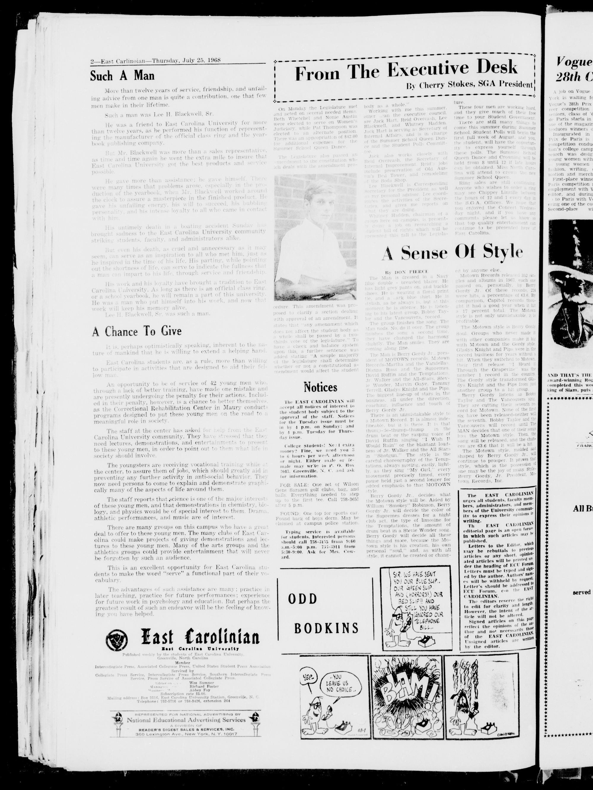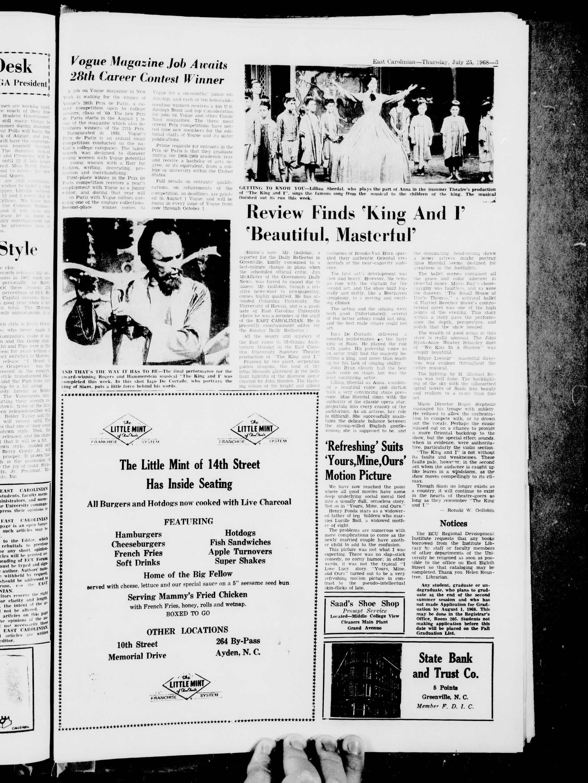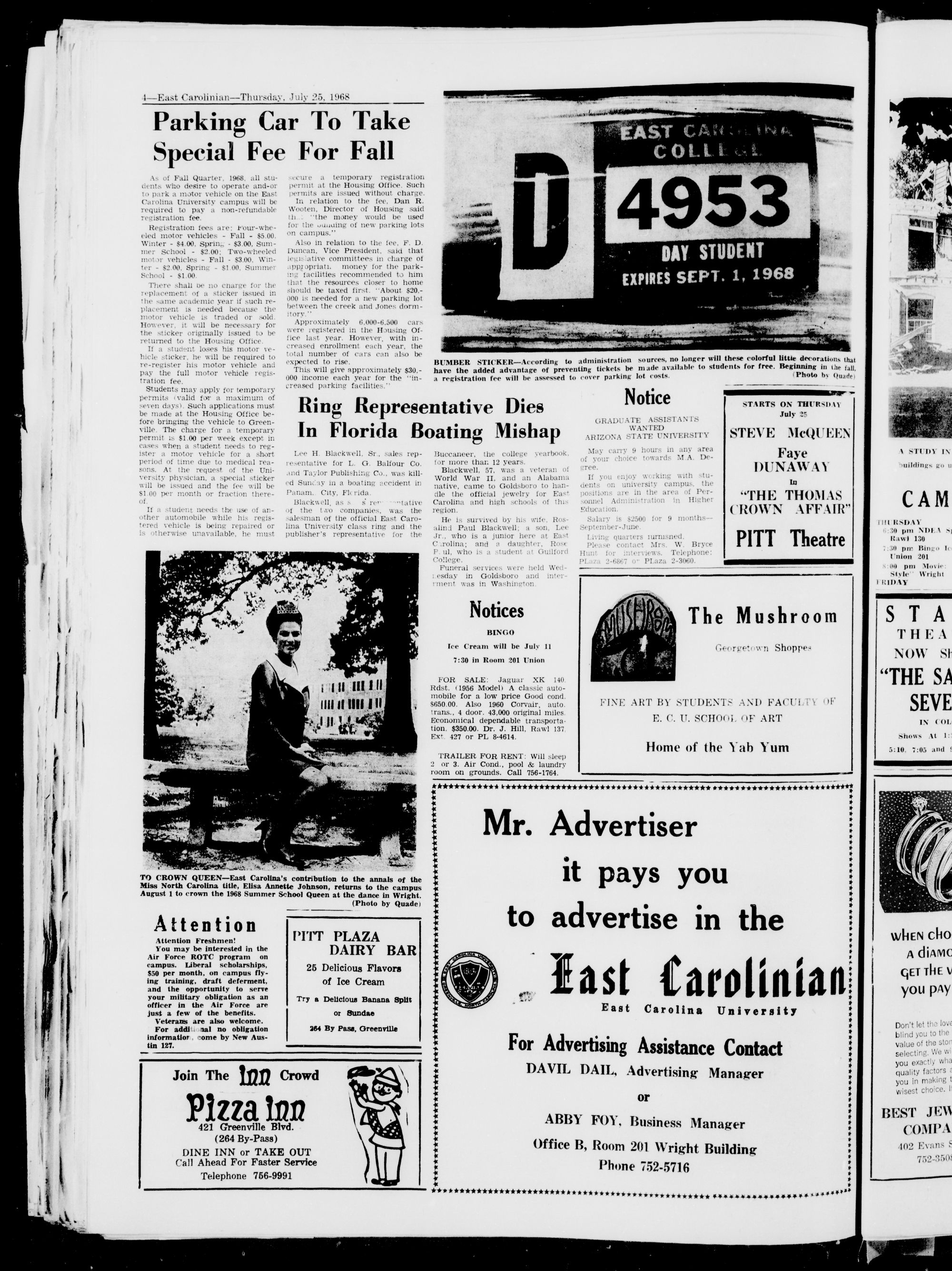 East Carolina University, Greenville, X. C, Thursday, July 25. 1968