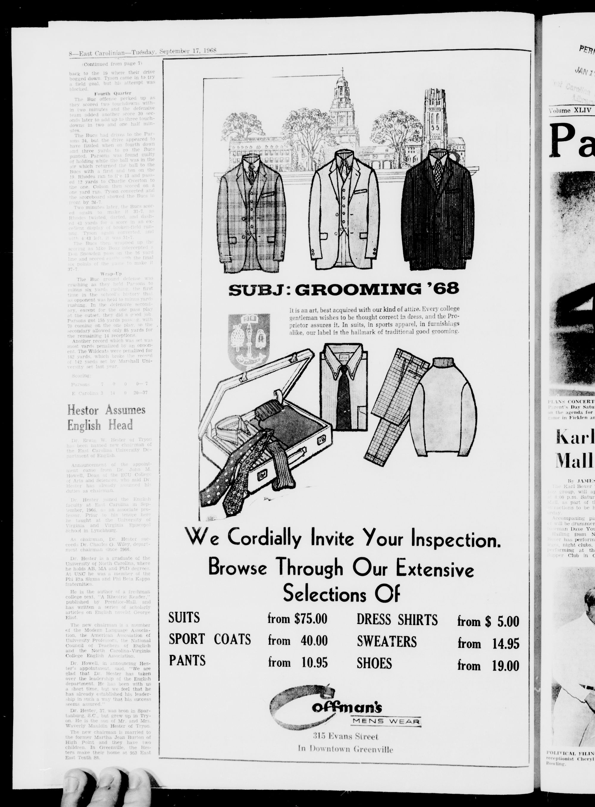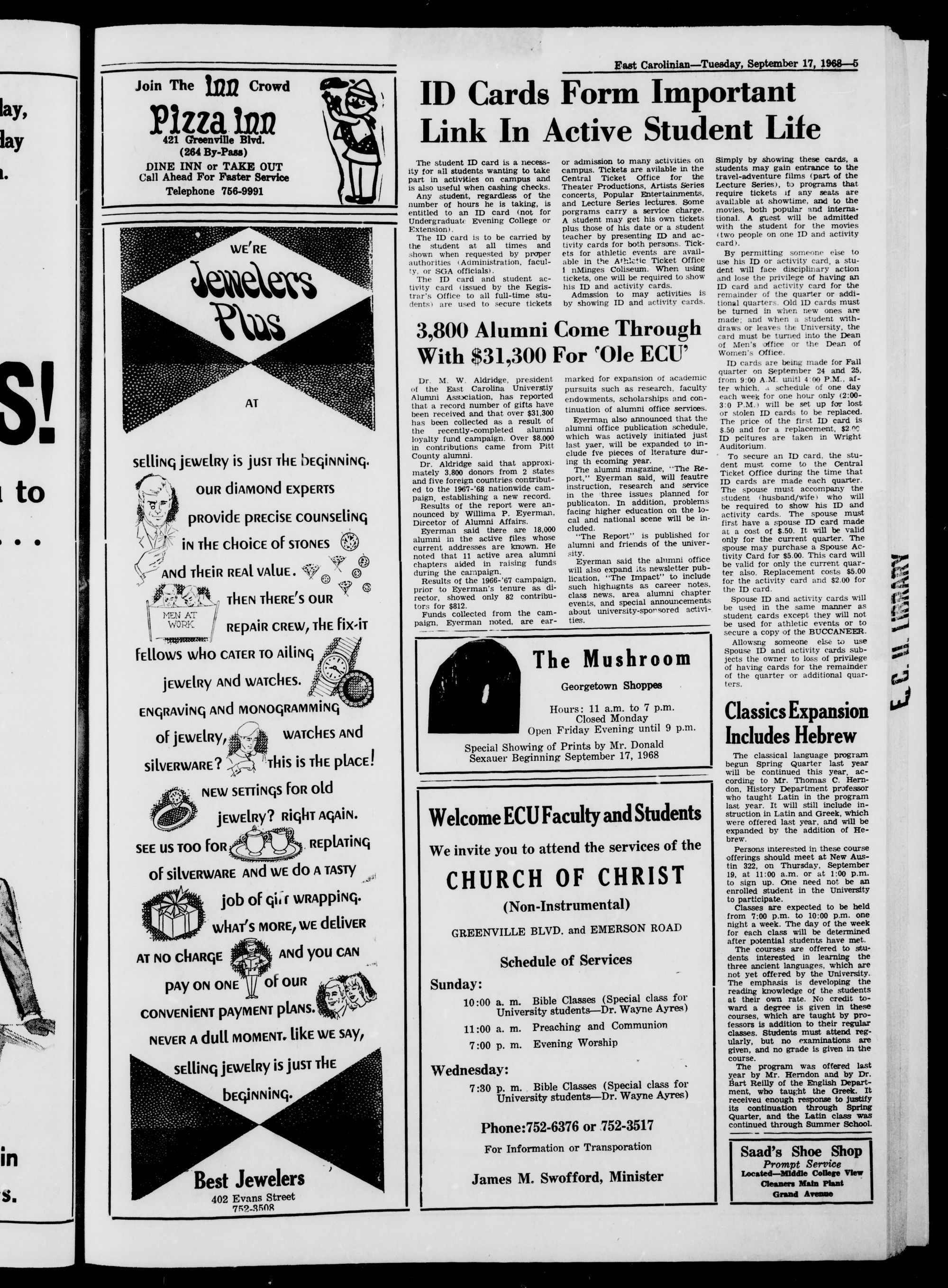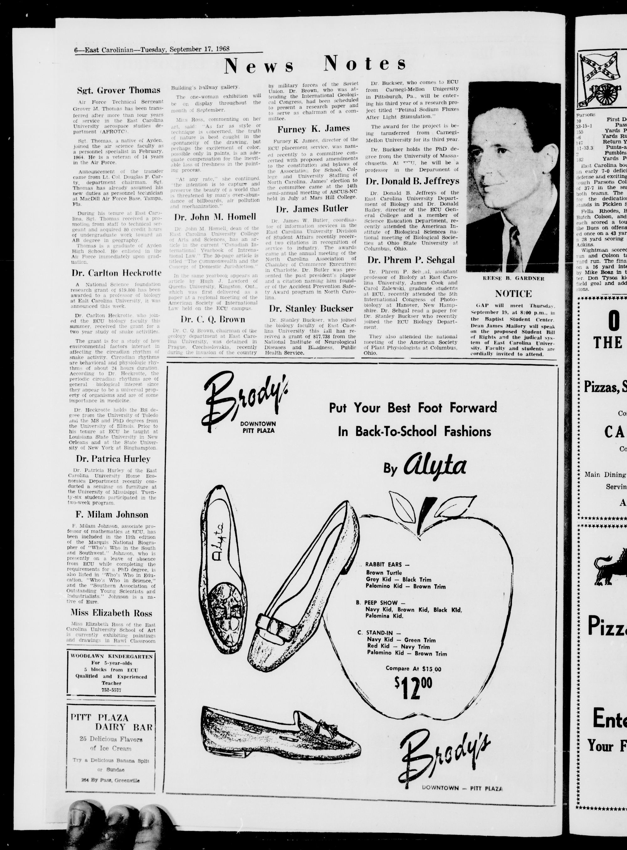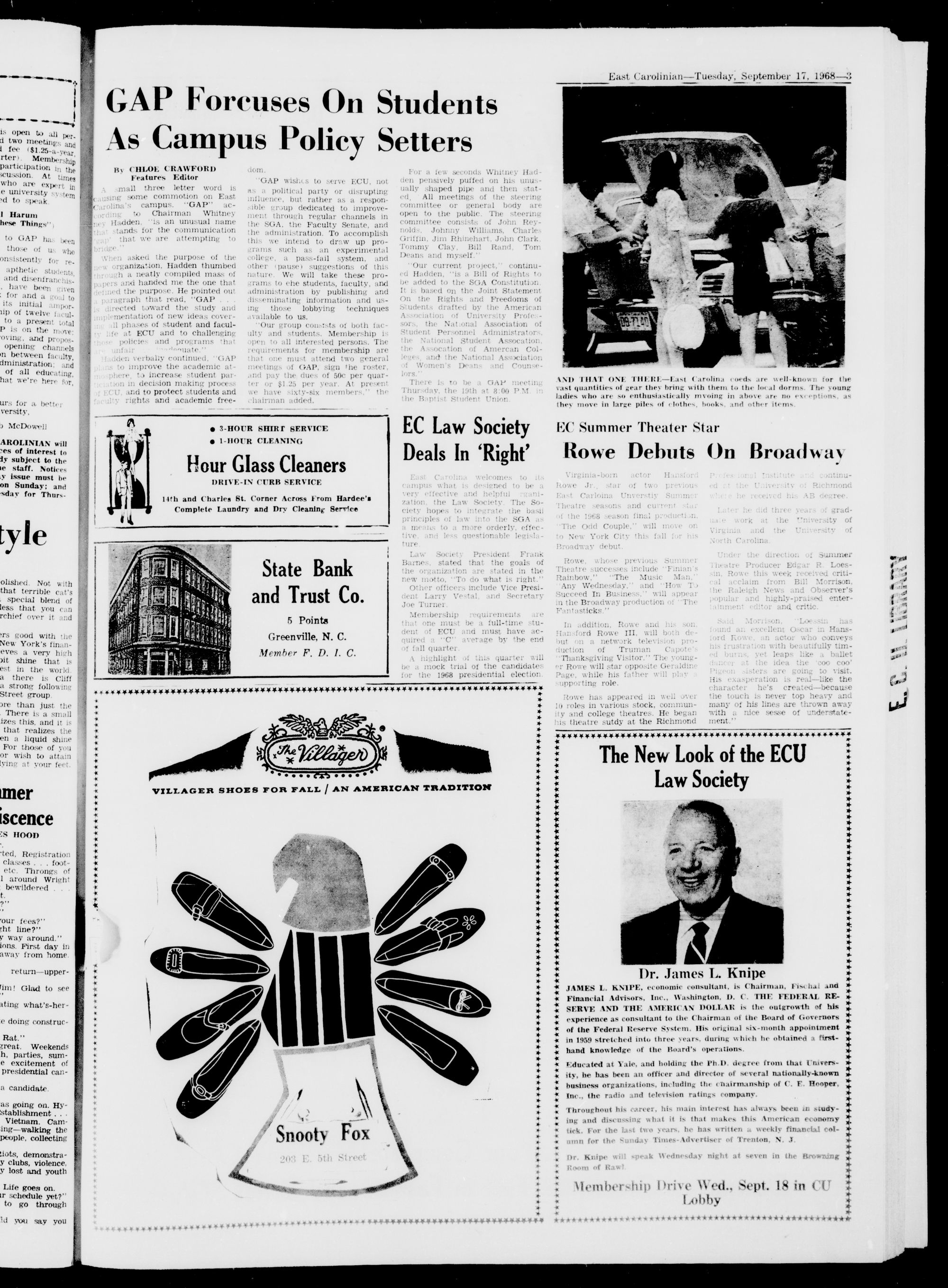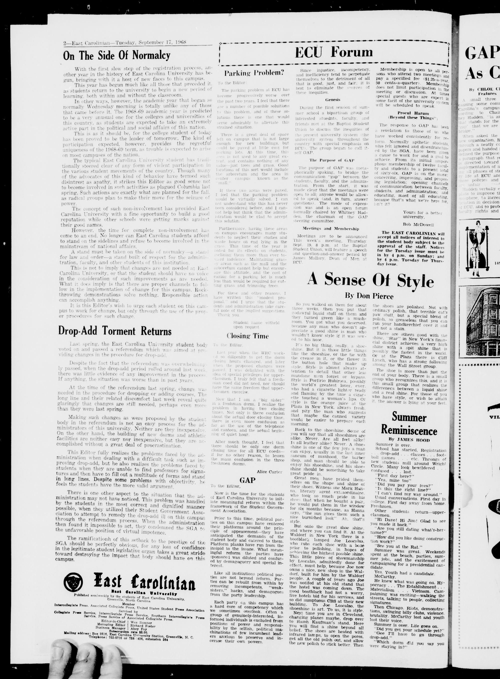 East Carolina University, Greenville, N. C, Tuesday, September 17, 1968