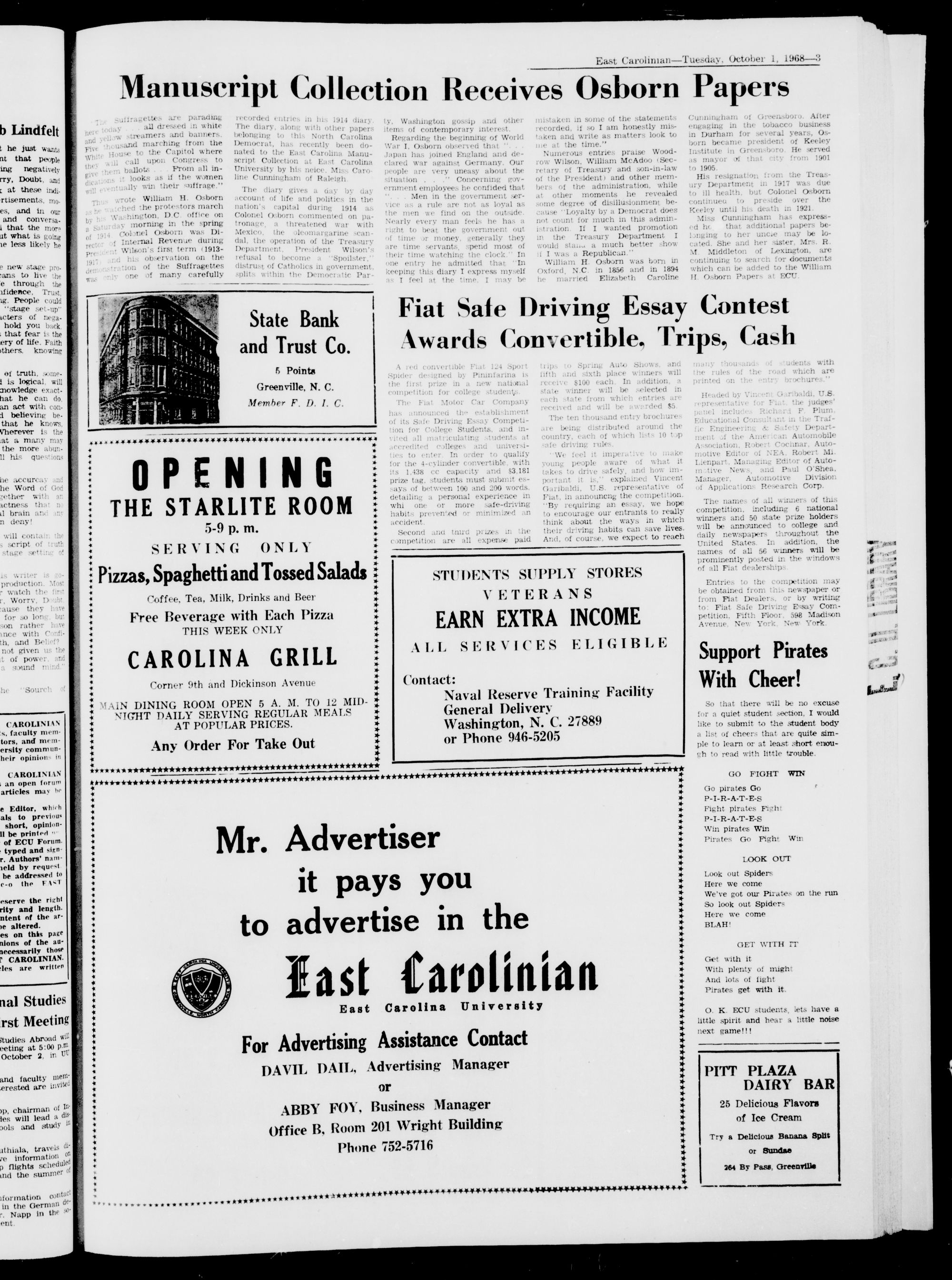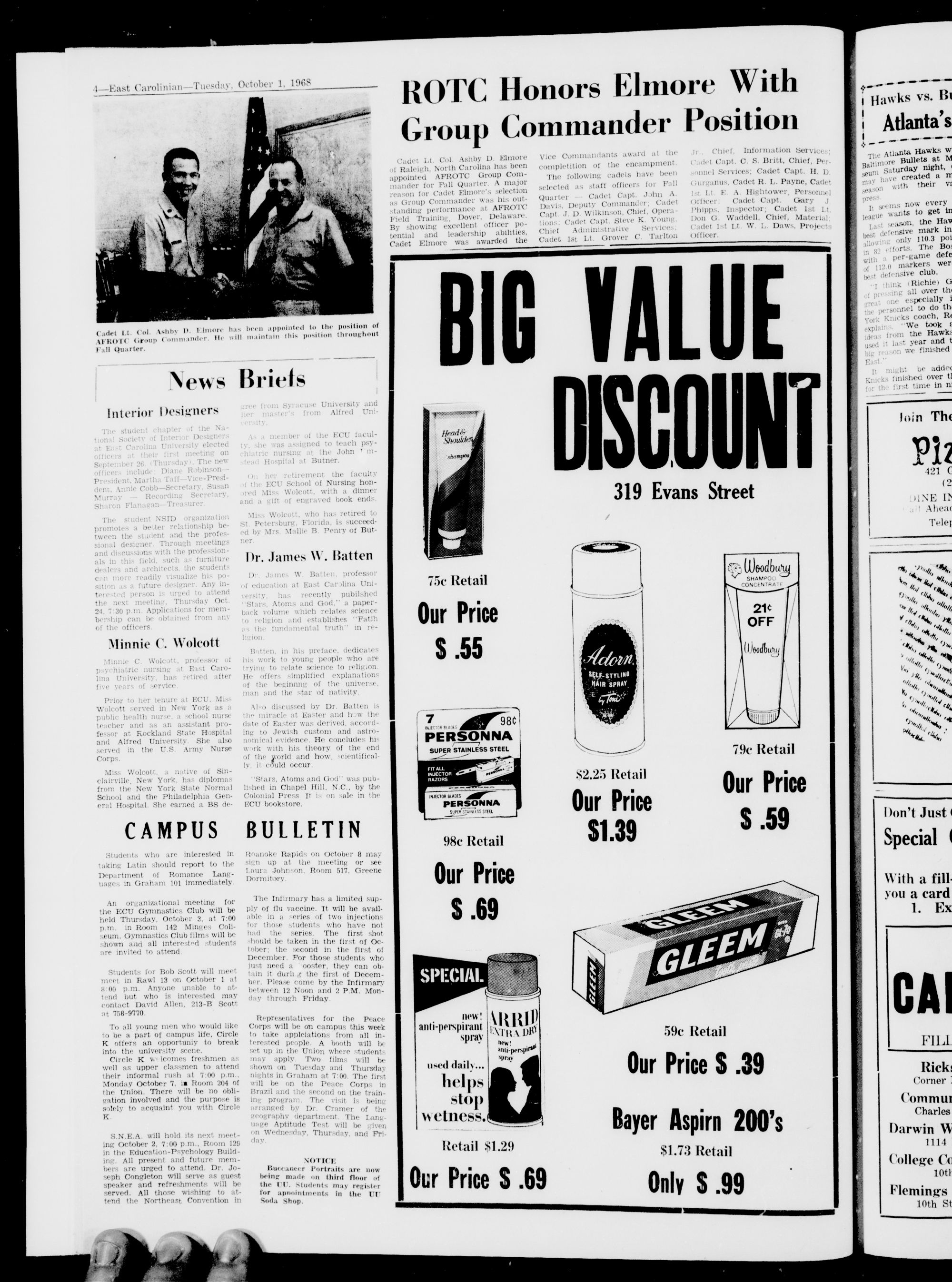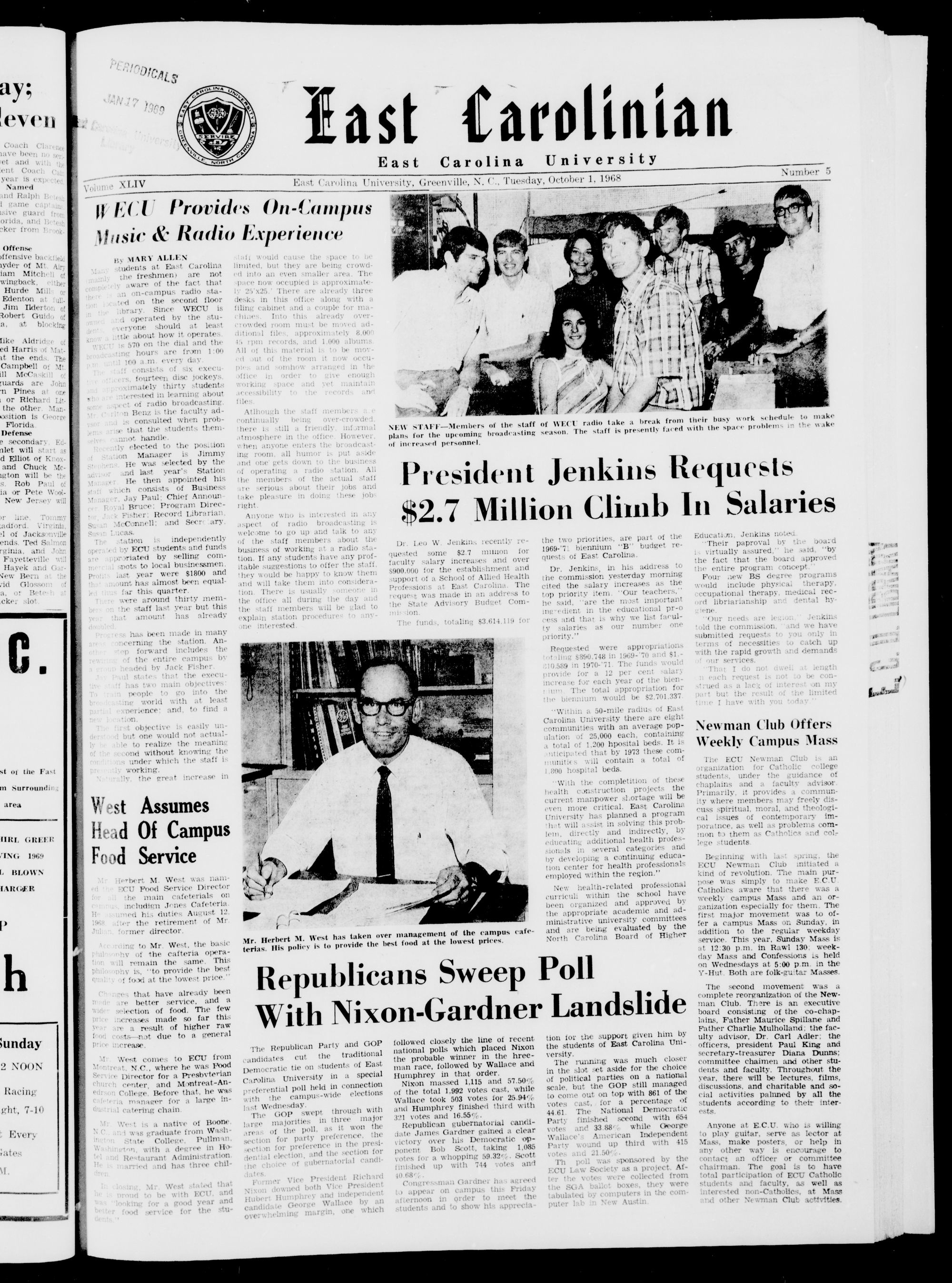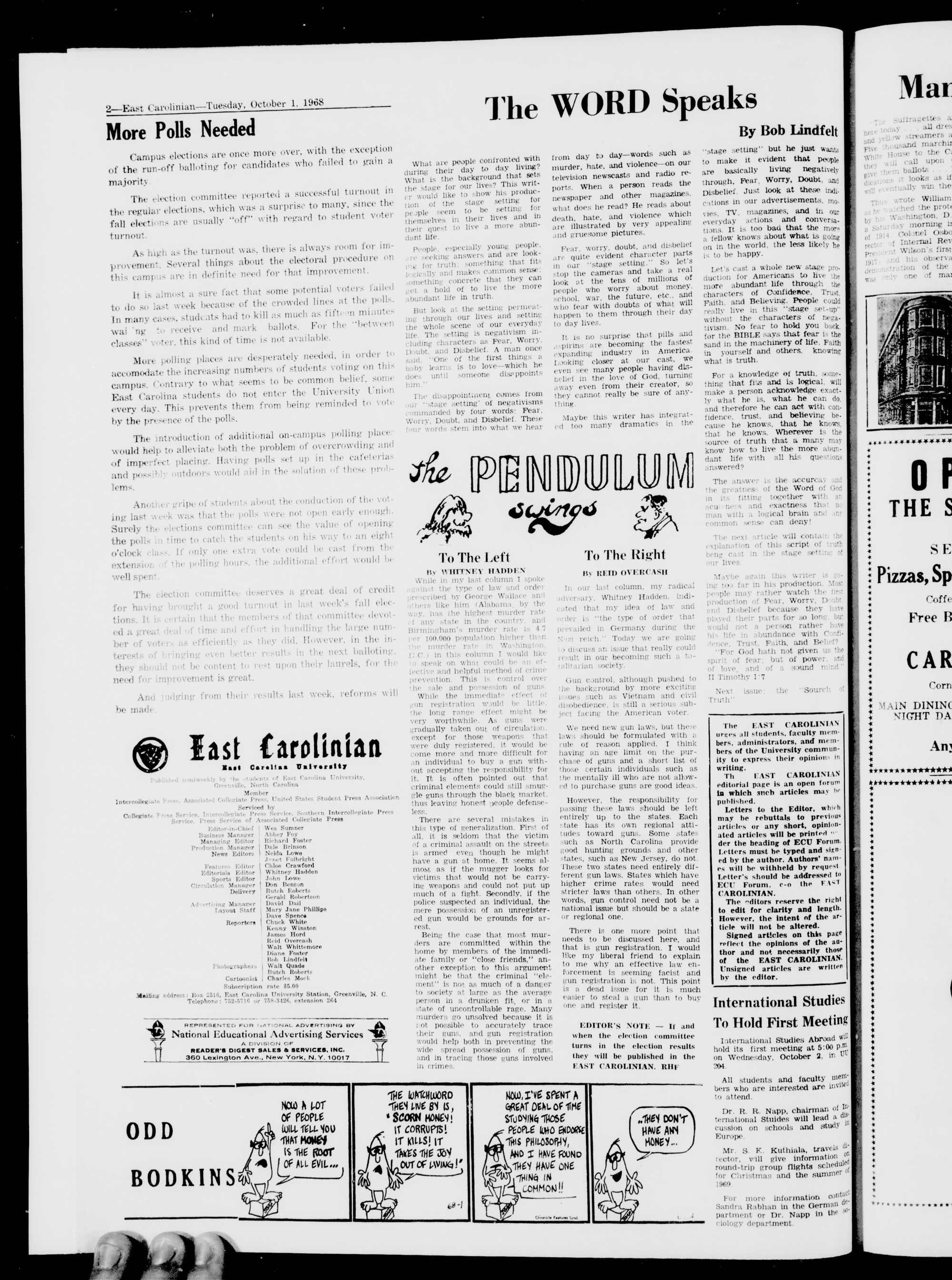East Carolina University, Greenville, X. C, Tuesday, October 1, 1968