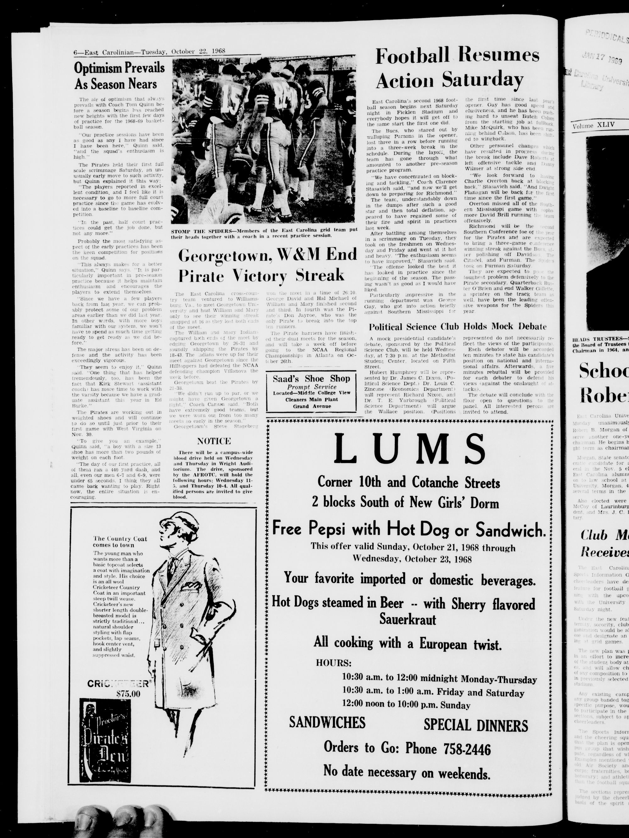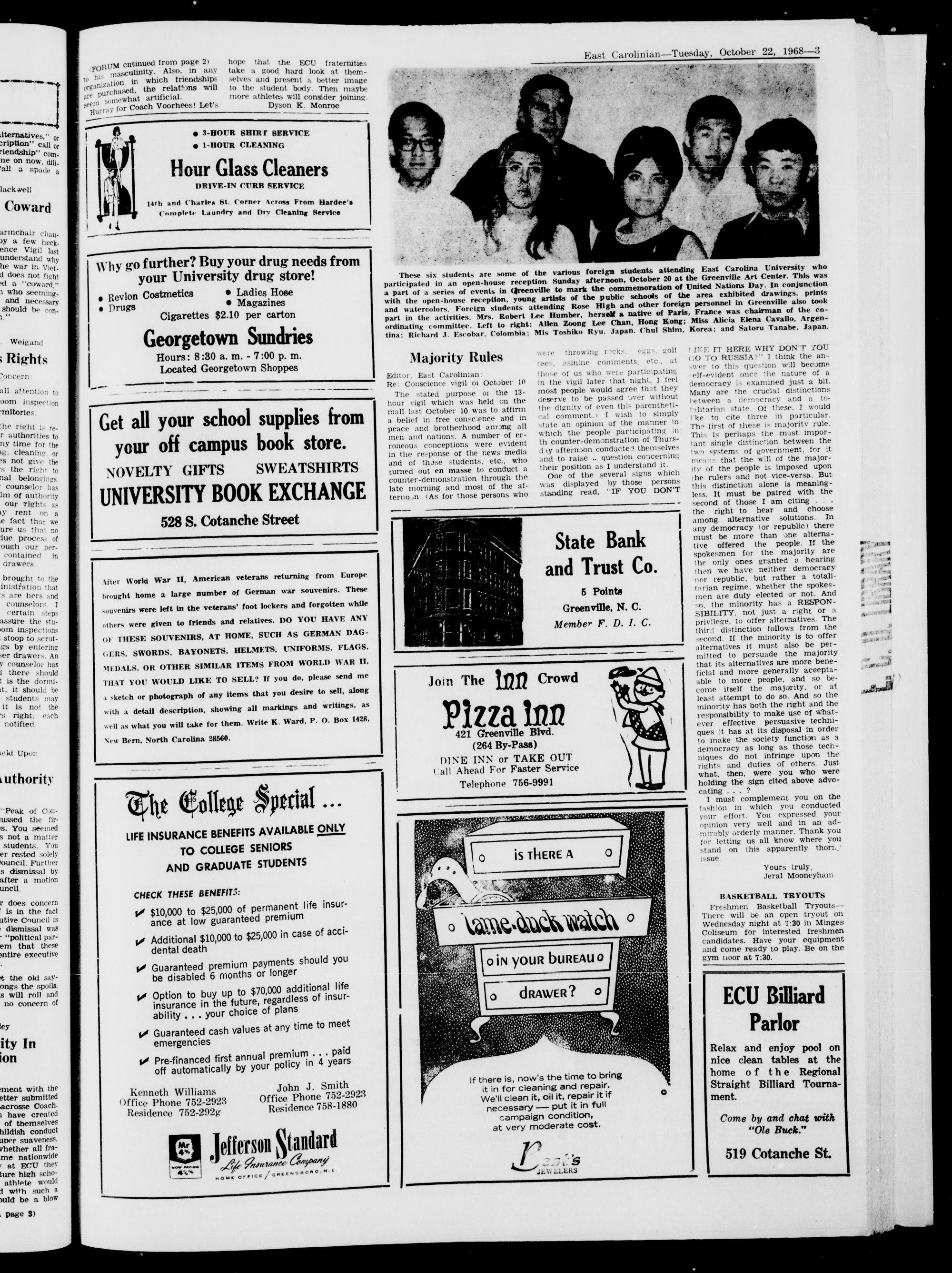 East Carolina University, Greenville, X. C, Tuesday, October 22, 1968