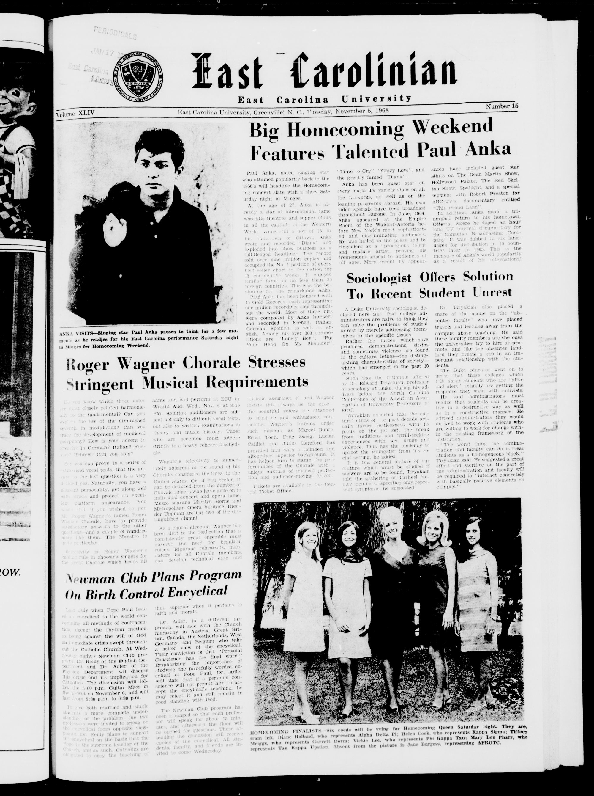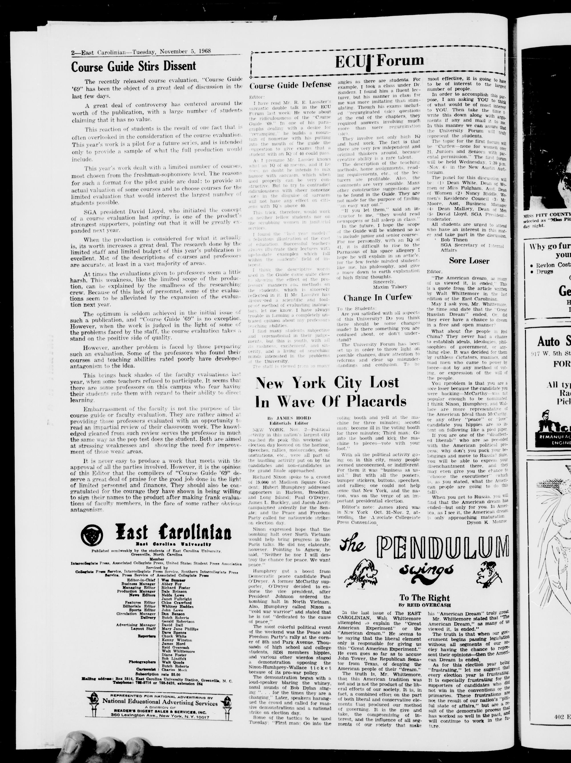 East Carolina University, Greenville N. ( Tuesday, November 5, 1968