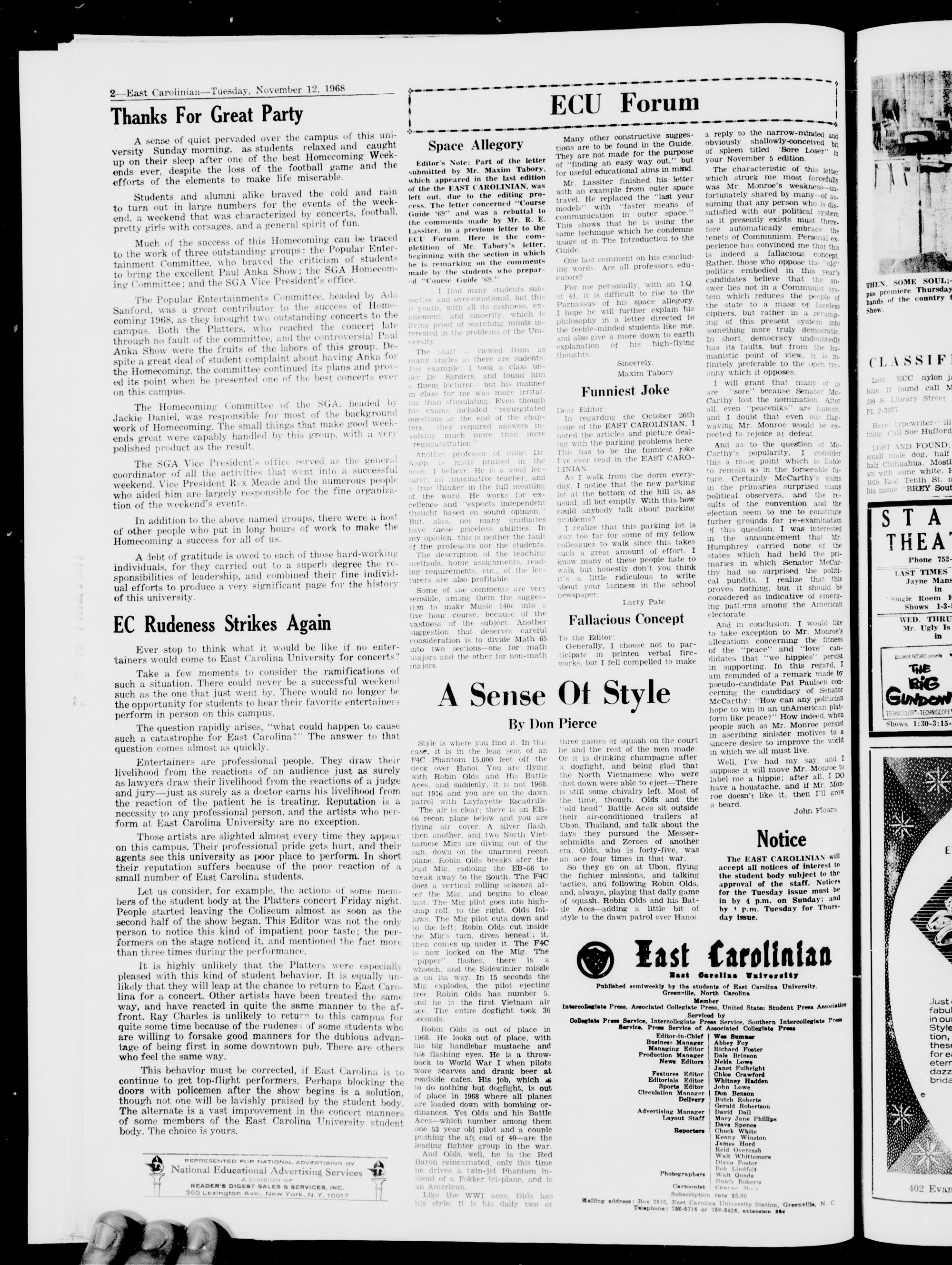 East Carolina University, Greenville, N. Tuesday, November 12. 1968