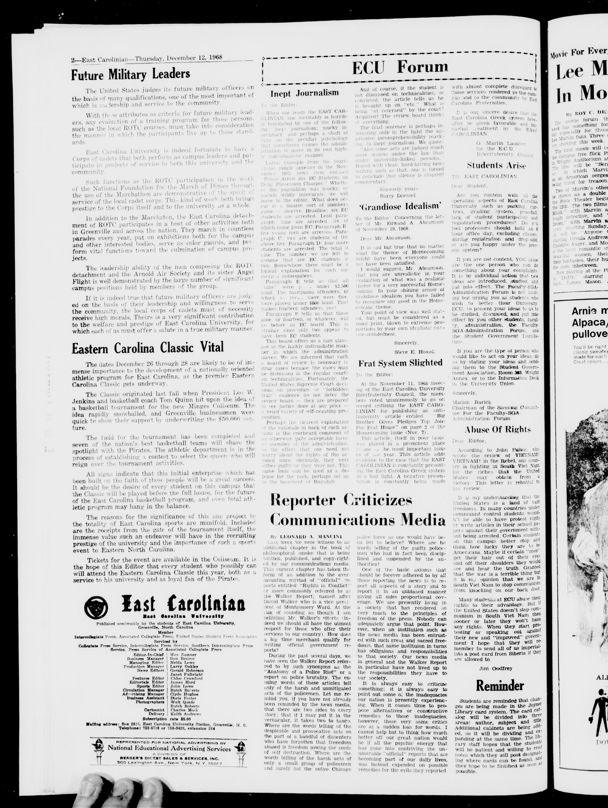 East Carolina University, GTreenville, N. C, Thursday, December 12, 1968