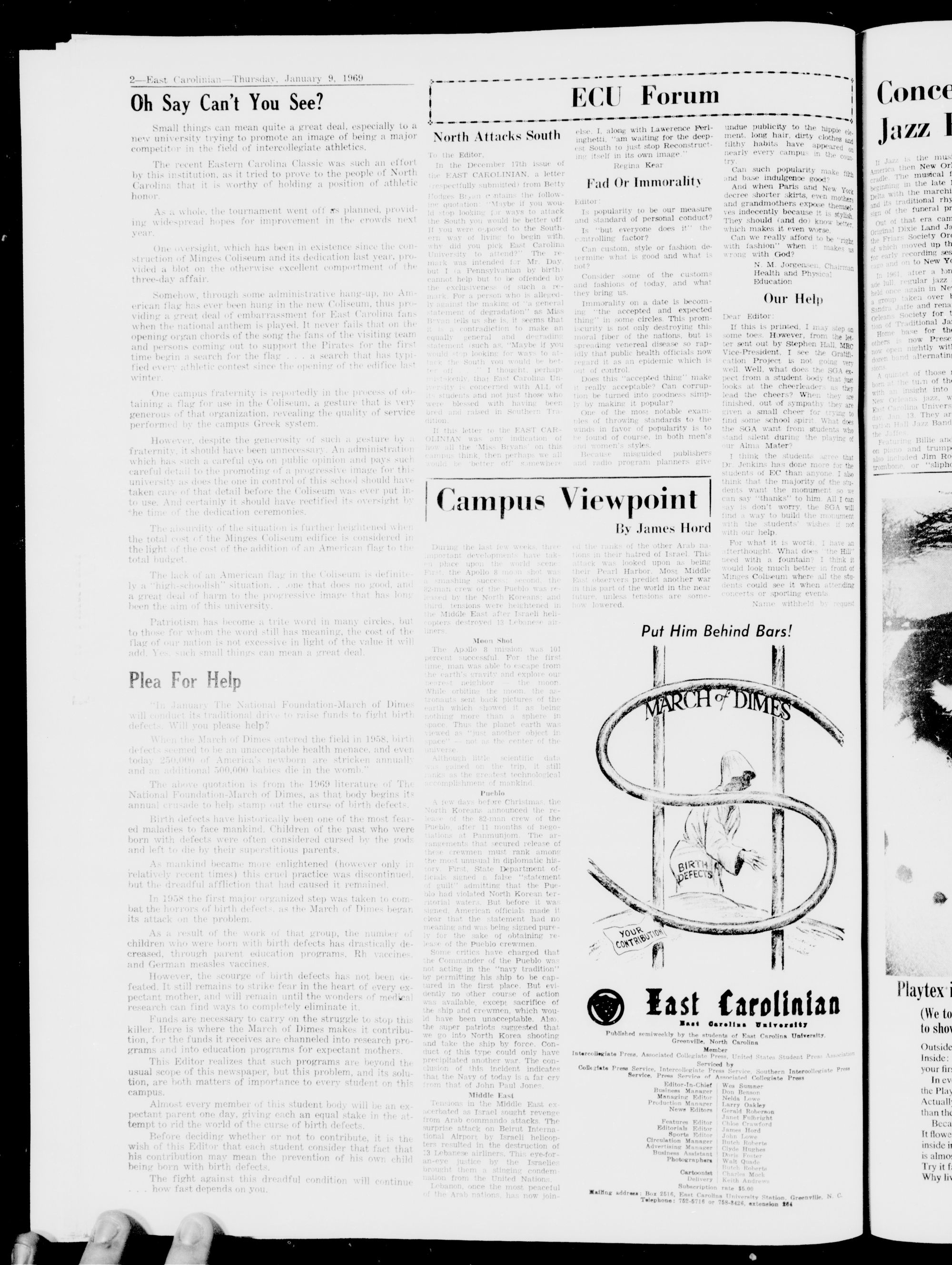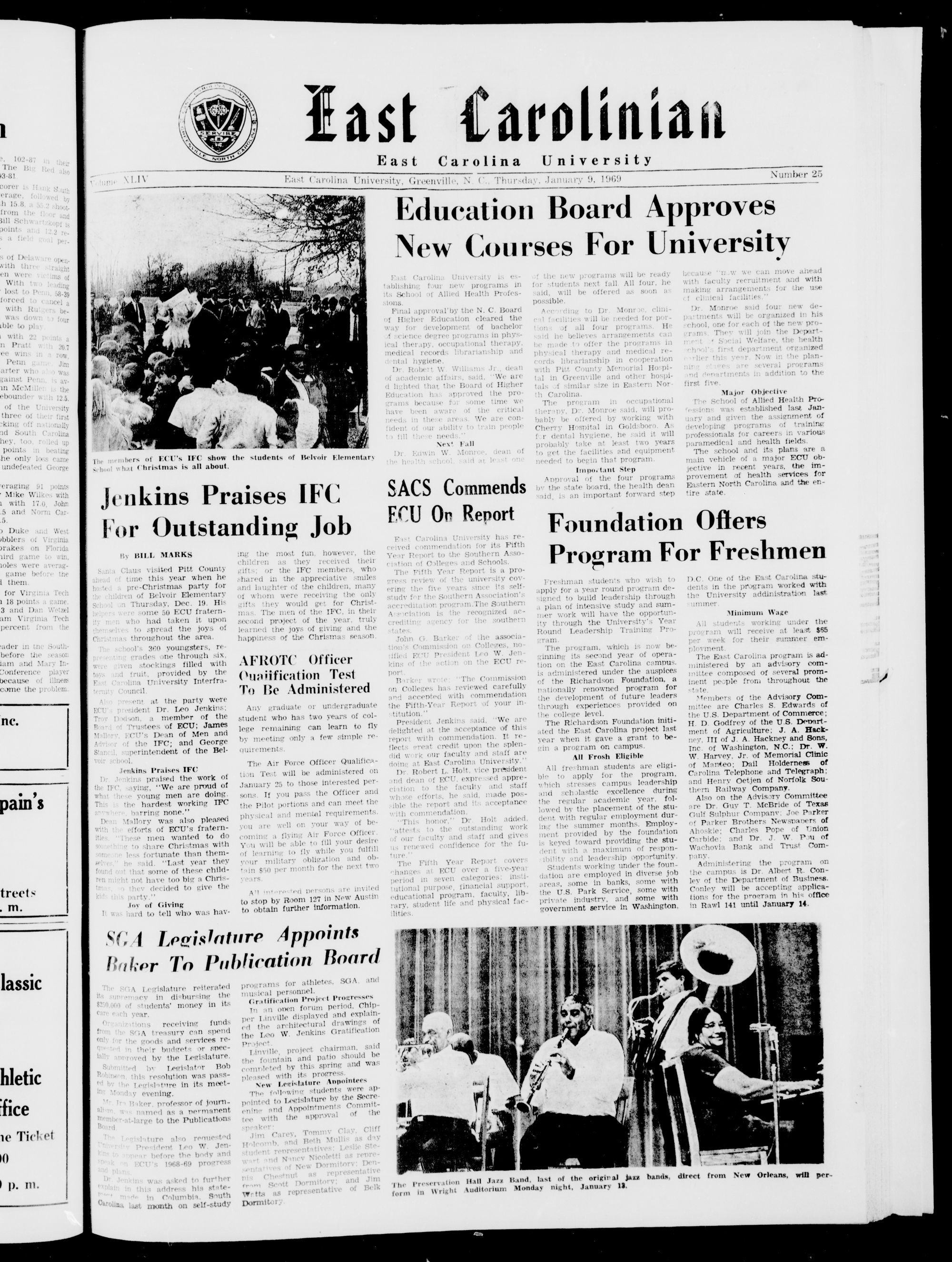 East Carolina University, Greenville, N C. Thursday, January 9, 1969