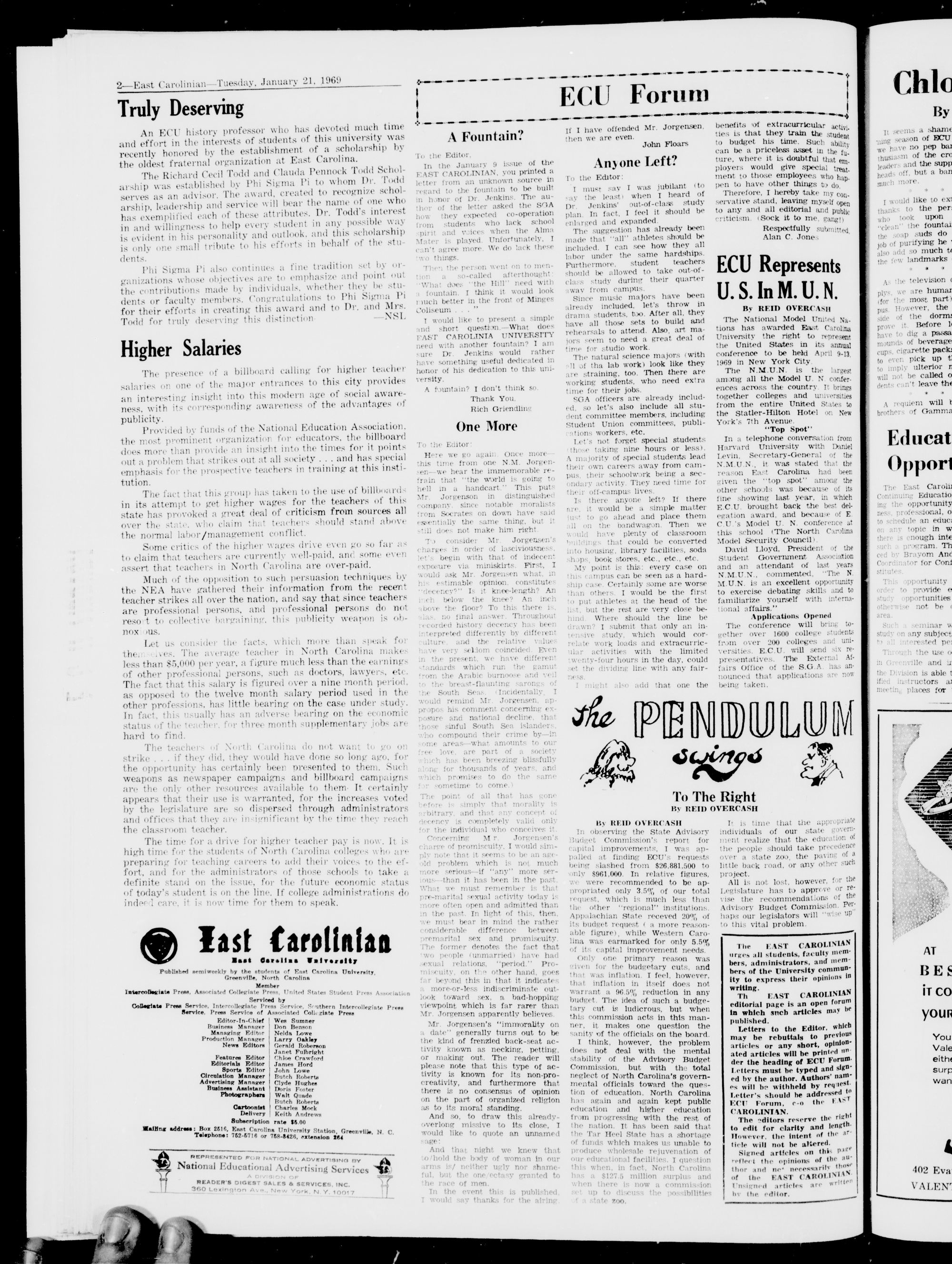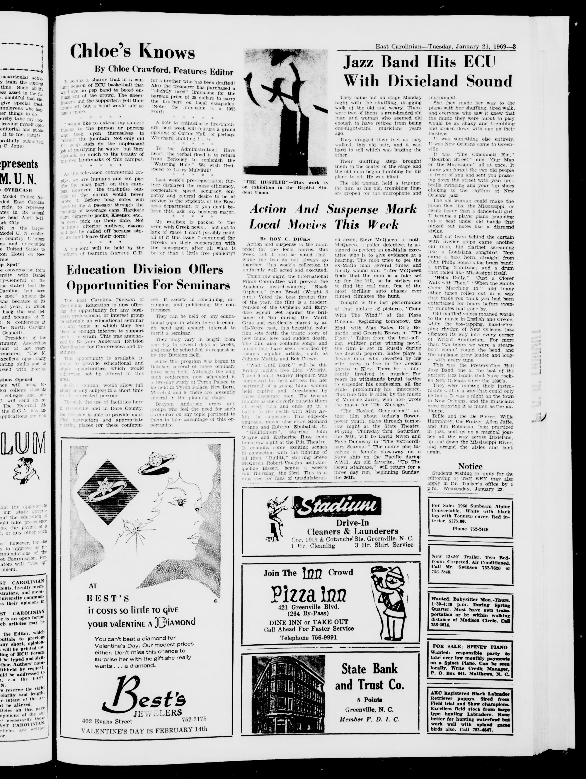 East Carolina University, Greenville, N. C, Tuesday, January 21, 1969