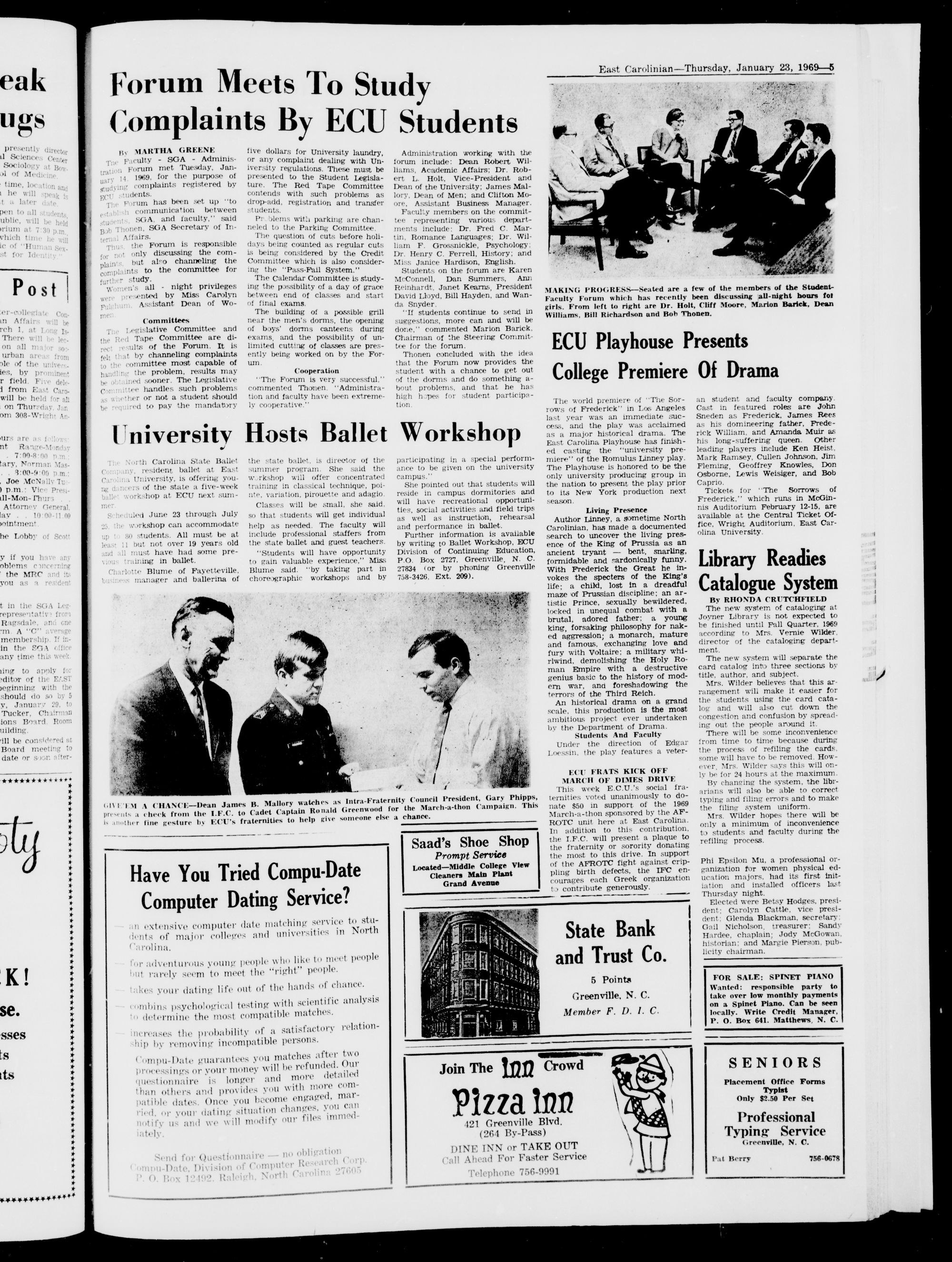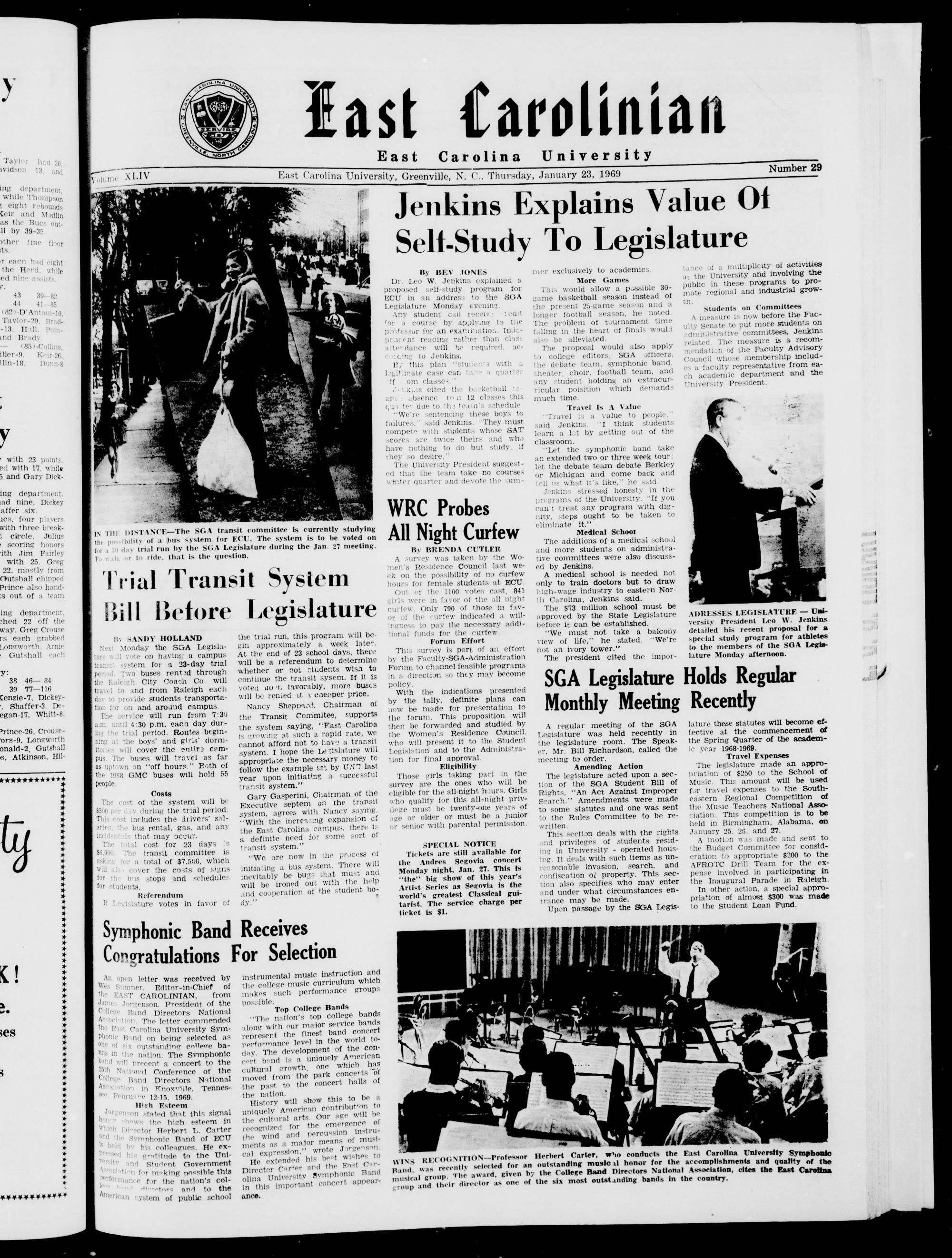 East Carolina University, Greenville, N. C. Thursday, January 23, 1969